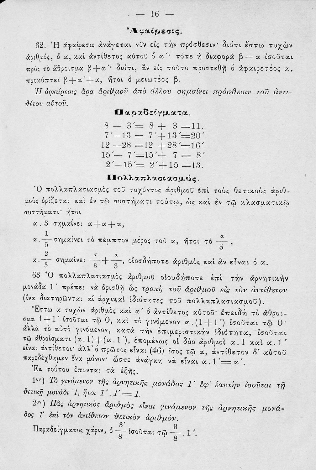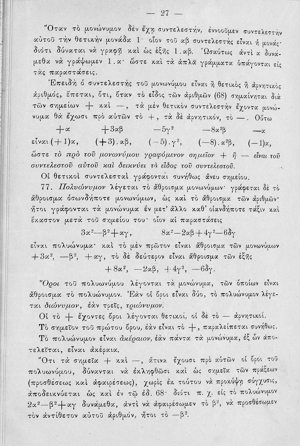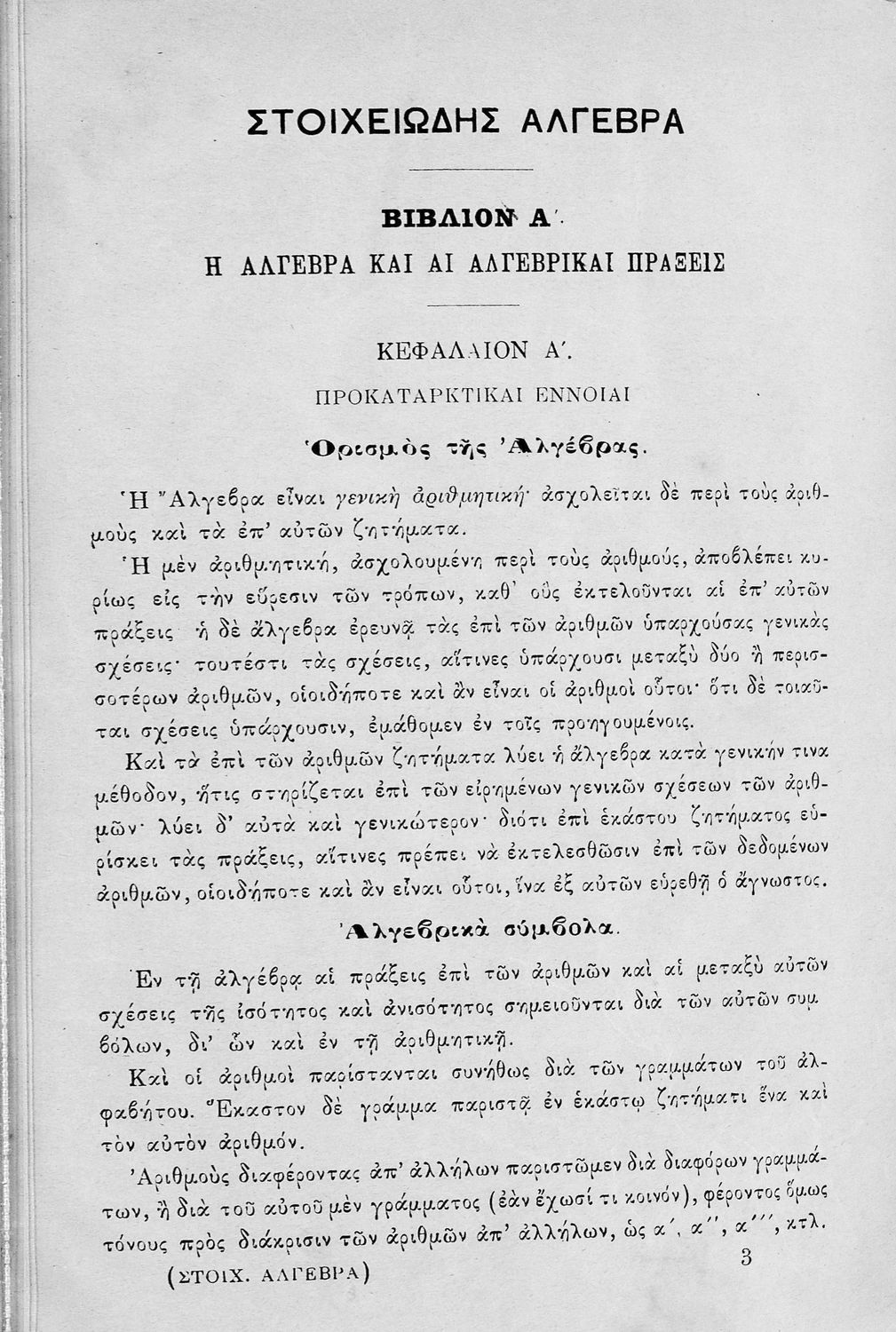Τίτλος: Στοιχειώδης άλγεβρα η μόνη εγκριθείσα εν τοις γενομένοις διαγωνισμοίς προς χρήσιν των Γυμνασίων