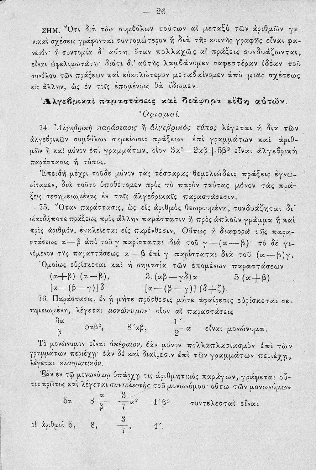Στοιχειώδης άλγεβρα η μόνη εγκριθείσα εν τοις γενομένοις διαγωνισμοίς προς χρήσιν των Γυμνασίων