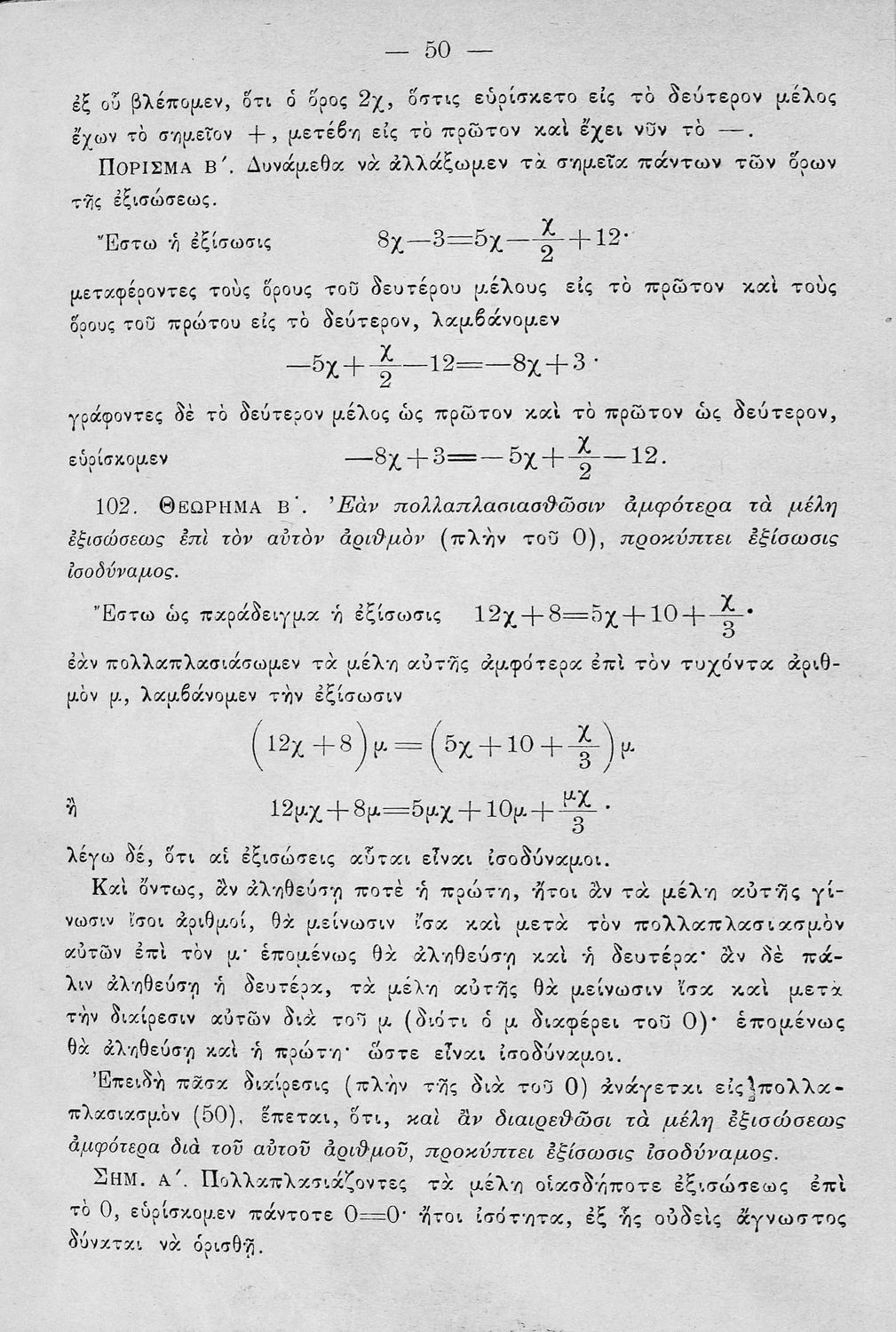 Σχολικό εγχειρίδιο Άλγεβρας Γυμνασίου χωρισμένο σε θεωρία και προβλήματα.