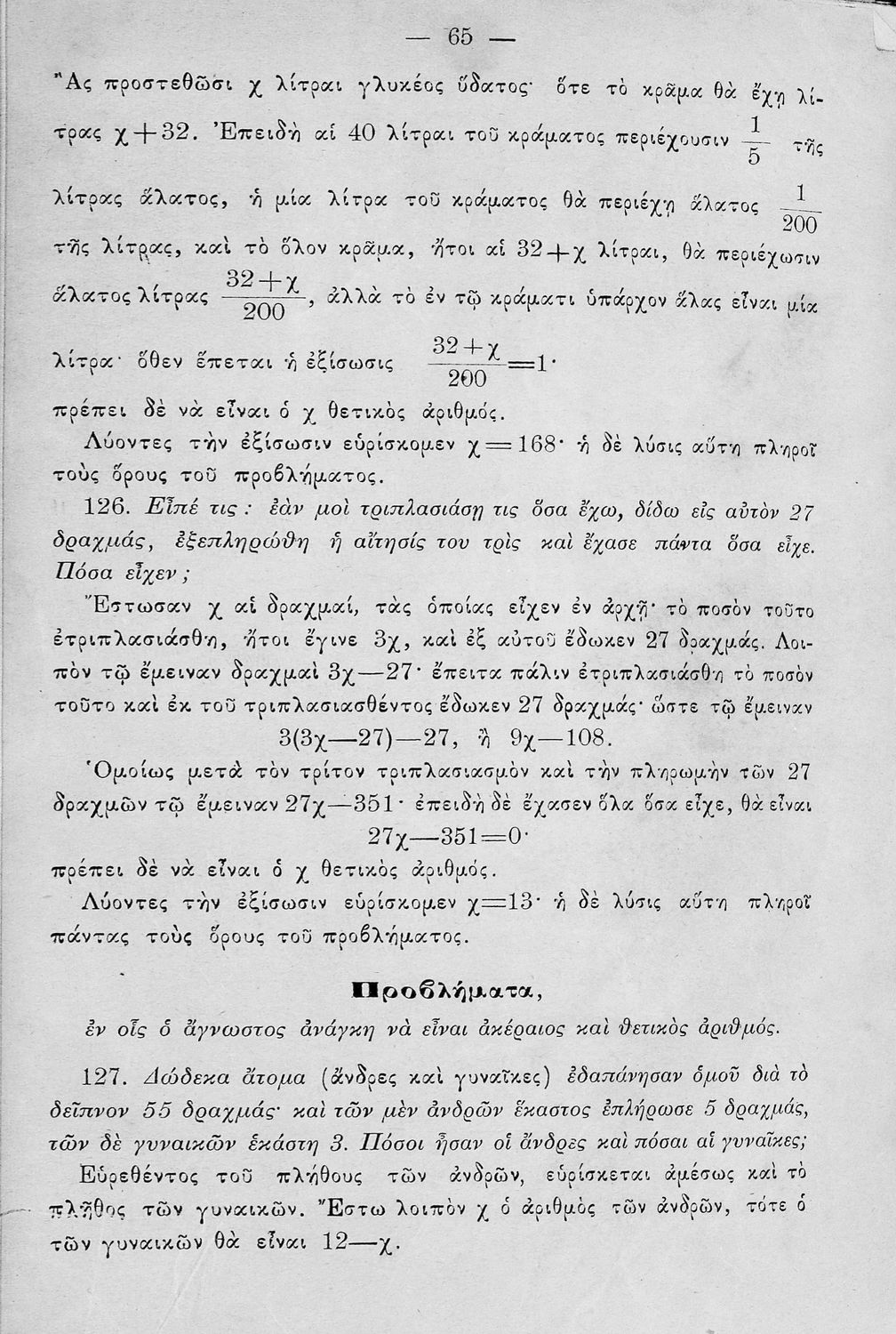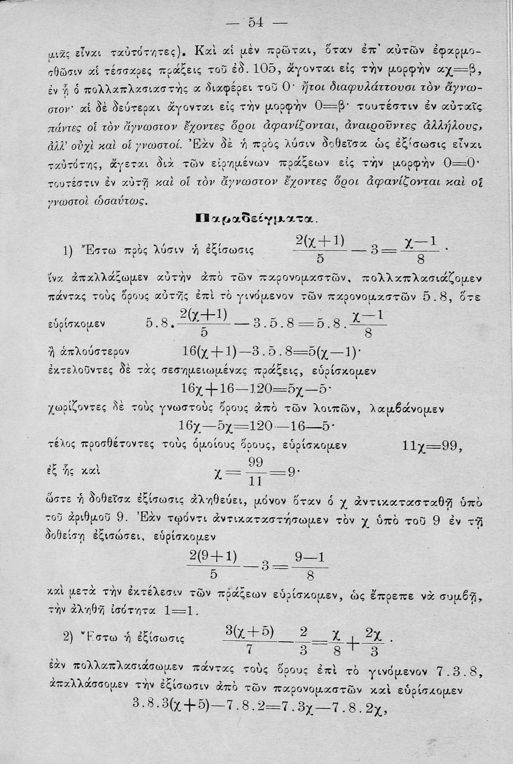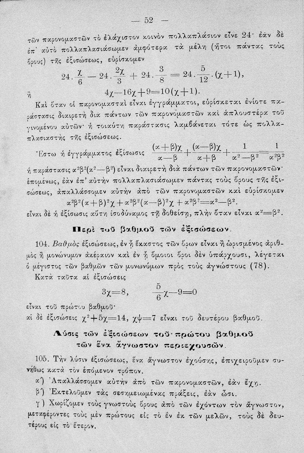 Στοιχειώδης άλγεβρα η μόνη εγκριθείσα εν τοις γενομένοις διαγωνισμοίς προς χρήσιν των Γυμνασίων