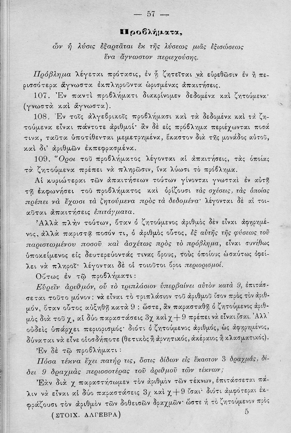 Τίτλος: Στοιχειώδης άλγεβρα η μόνη εγκριθείσα εν τοις γενομένοις διαγωνισμοίς προς χρήσιν των Γυμνασίων