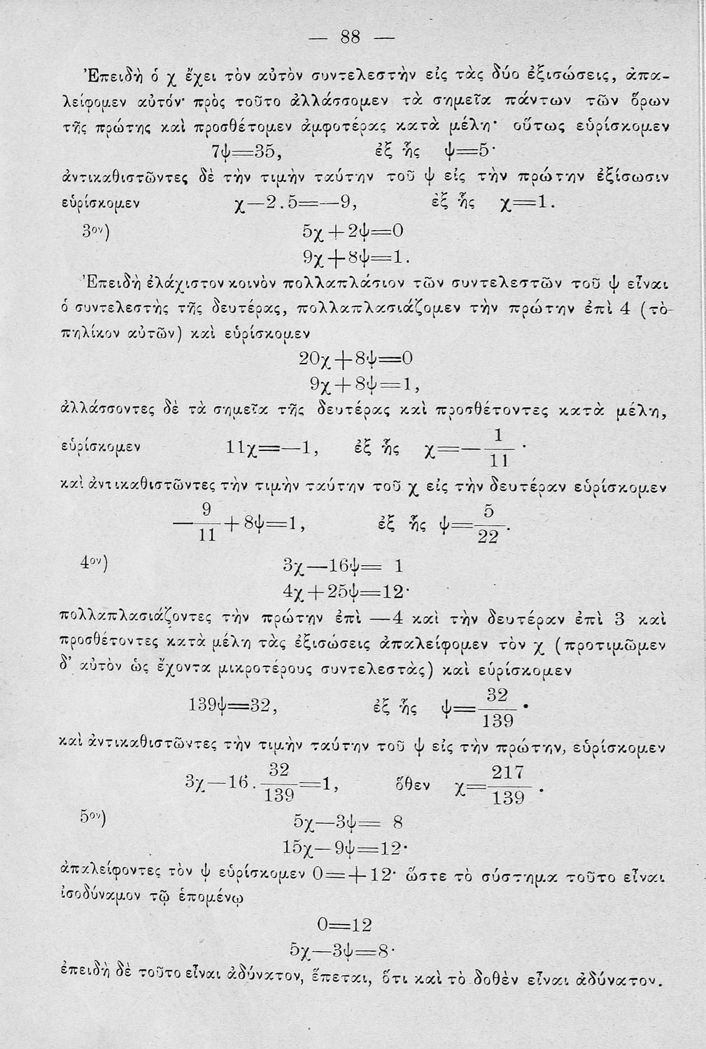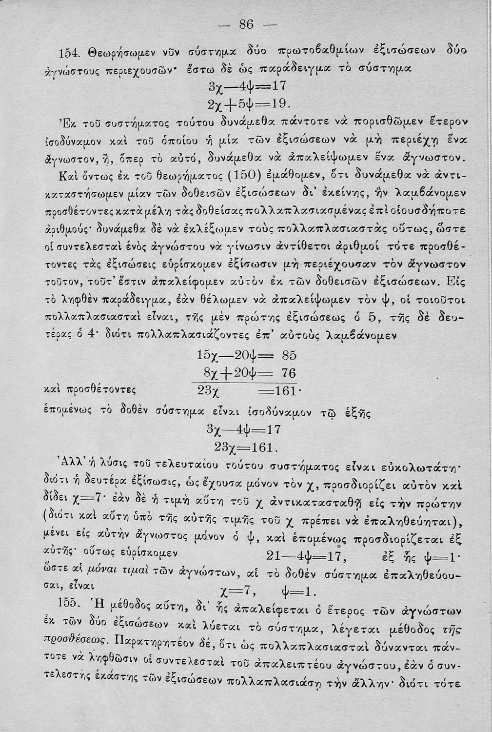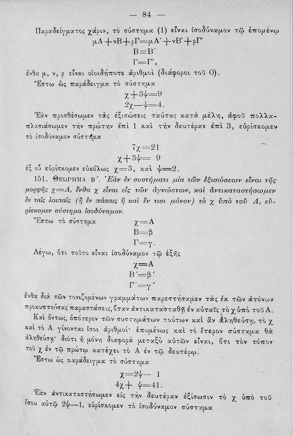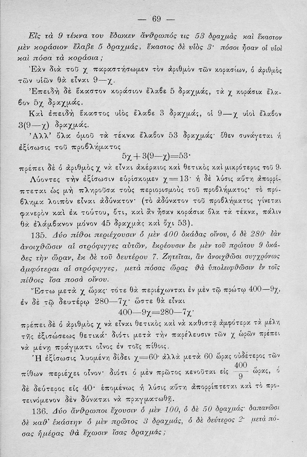 Βαθμίδα εκπαίδευσης: Δευτεροβάθμια Τάξη: Γυμνάσιο Μάθημα: Μαθηματικά Γλώσσα: Καθαρεύουσα Παρουσίαση περιεχομένου: Σχολικό εγχειρίδιο για τις τάξεις του Γυμνασίου για το μάθημα των Μαθηματικών και συγκεκριμένα της Άλγεβρας. Το εγχειρίδιο περιλαμβάνει εισαγωγικά γενικές πληροφορίες για τις 4 βασικές πράξεις συνεχίζει με τις αλγεβρικές παραστάσεις, εξισώσεις πρώτου και δευτέρου βαθμού, δυνάμεις και πολυώνυμα, πρόοδοι, λογάριθμοι, κ.α. |
