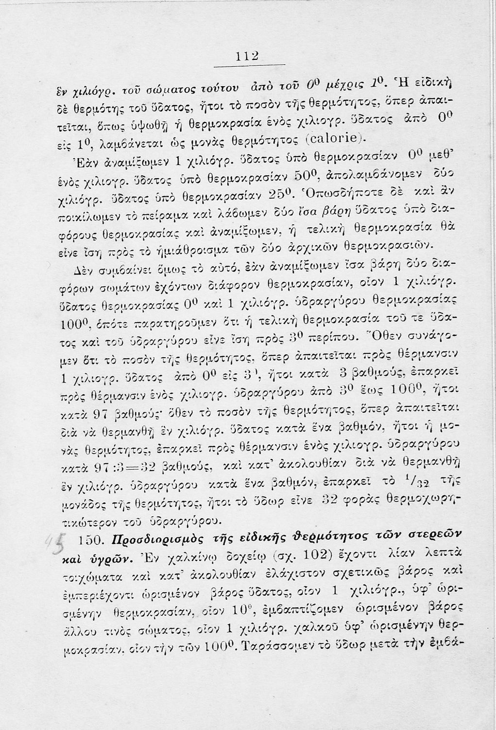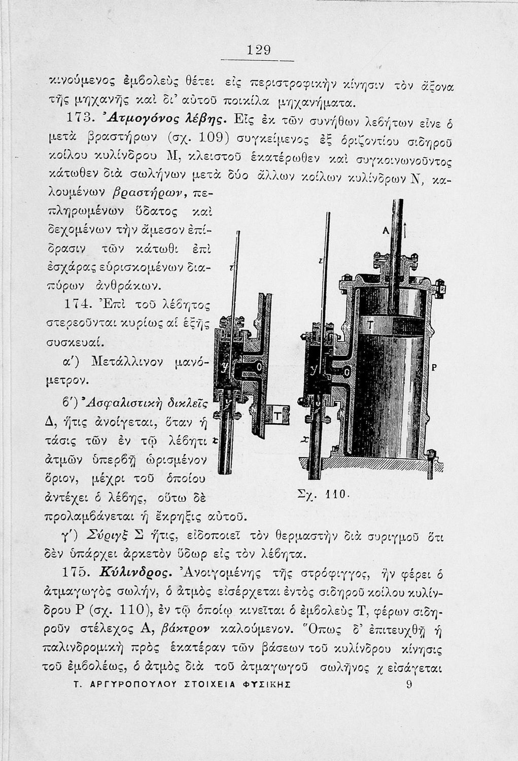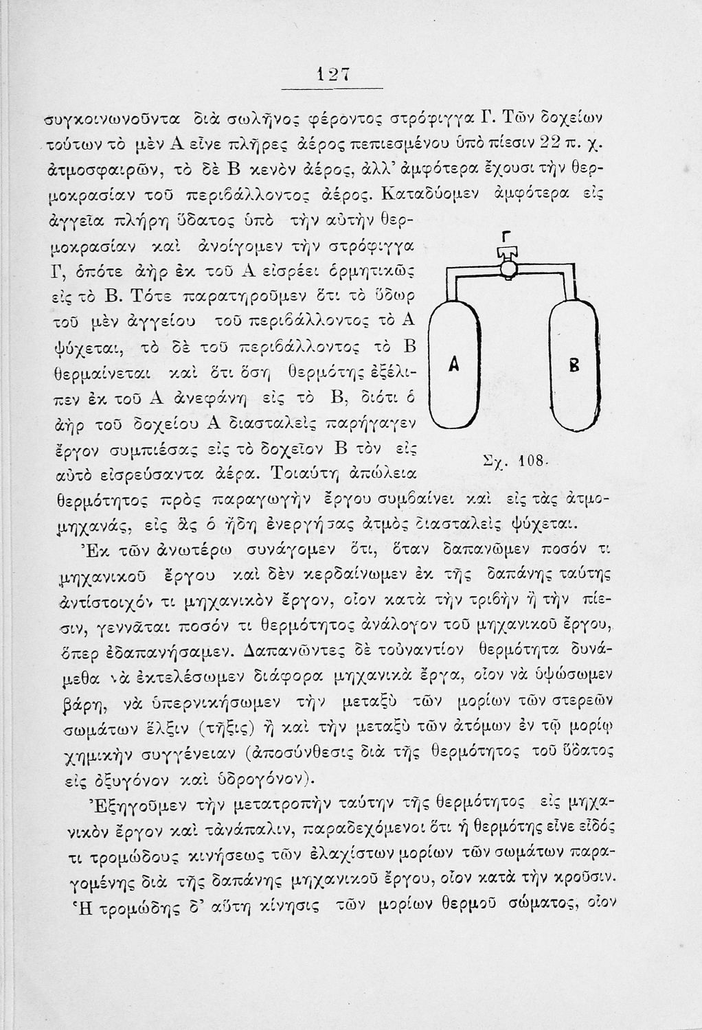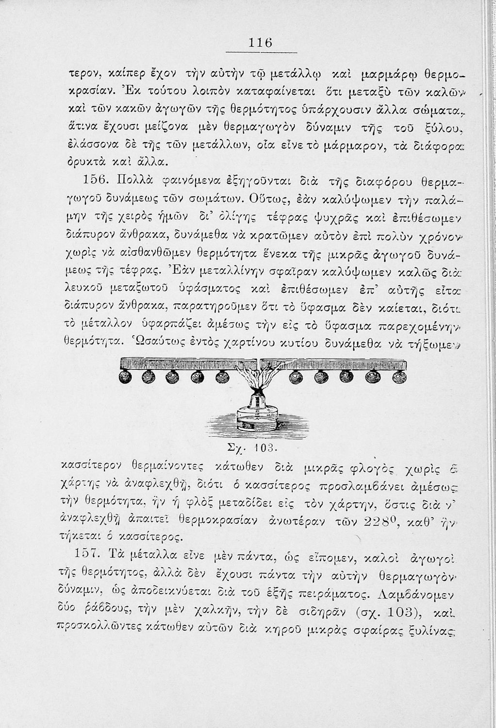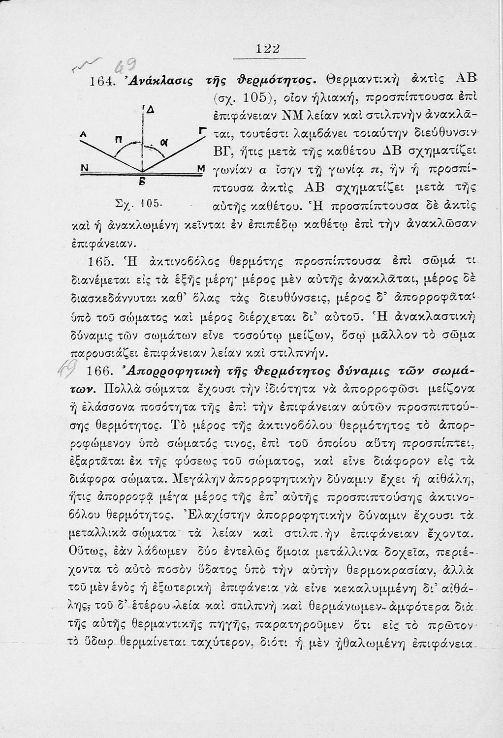 Σχολικό εγχειρίδιο για το μάθημα της Φυσικής. Το εγχειρίδιο περιλαμβάνει εισαγωγικά τις γενικές ιδιότητες των φυσικών σωμάτων και τις στοιχειώδεις γνώσεις της μηχανικής. Ο κύριος κορμός του βιβλίου αποτελείται από τις θεματικές της βαρύτητας, της υδροστατικής αρχής, της ατμοσφαιρικής πίεσης, της θερμότητας, της ακουστικής, της οπτικής, του μαγνητισμού, του ηλεκτρισμού, του στατικού και του δυναμικού ηλεκτρισμού.