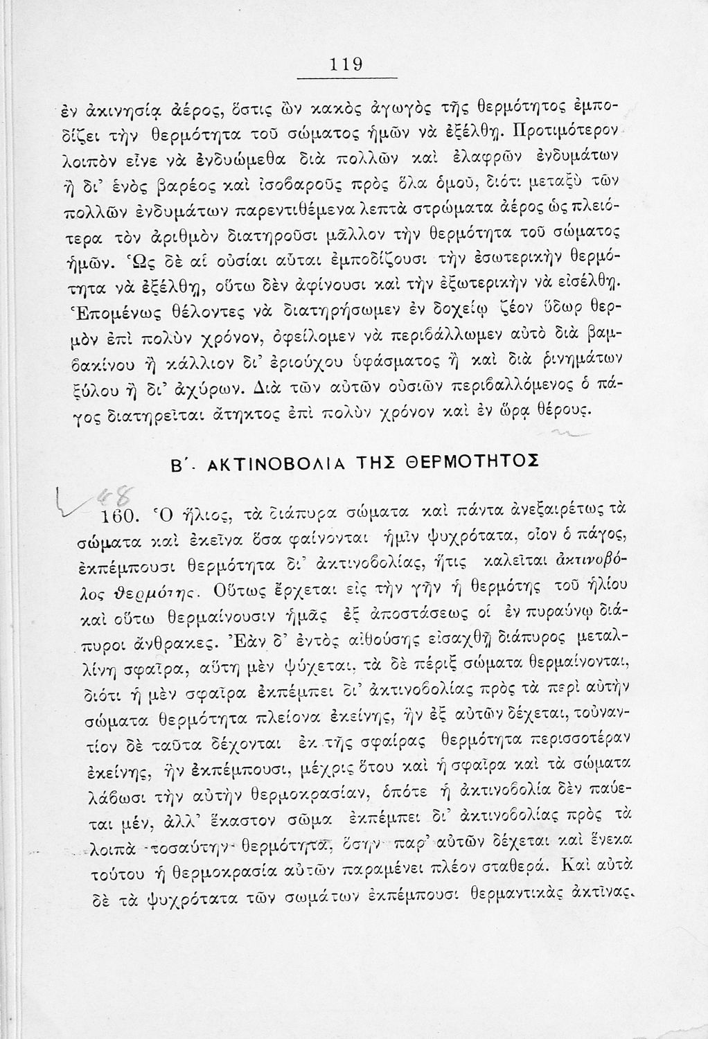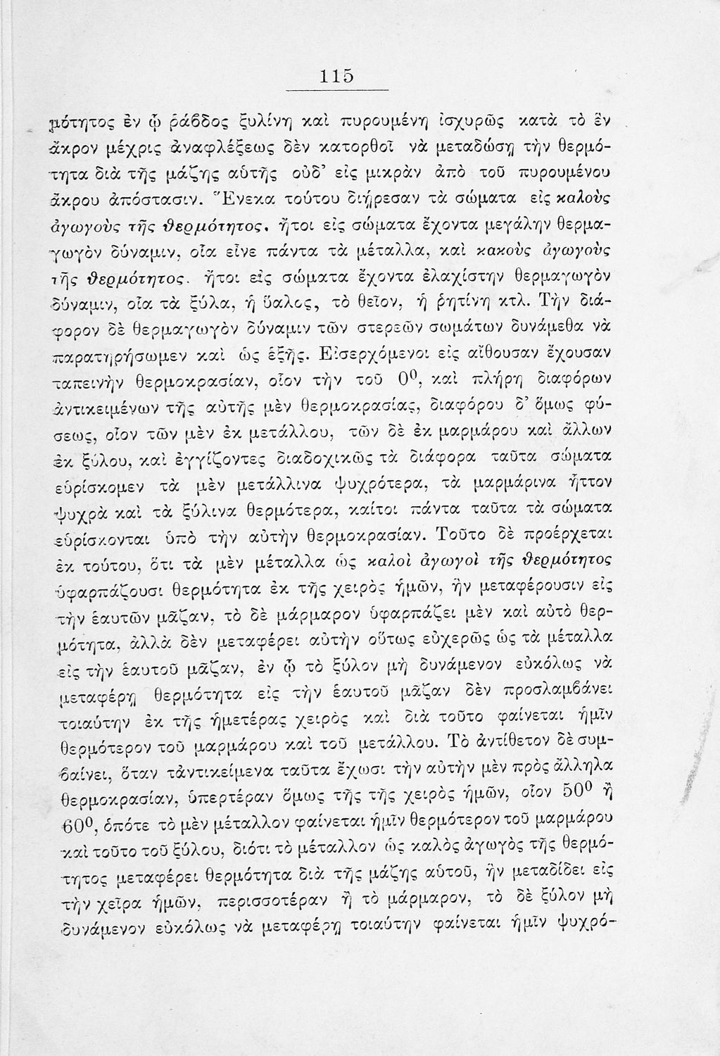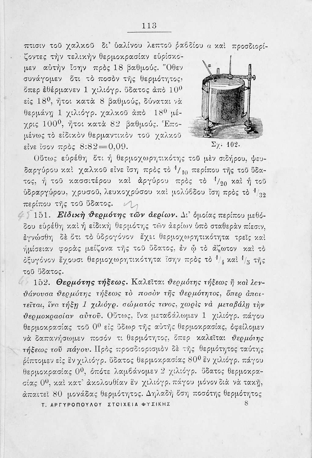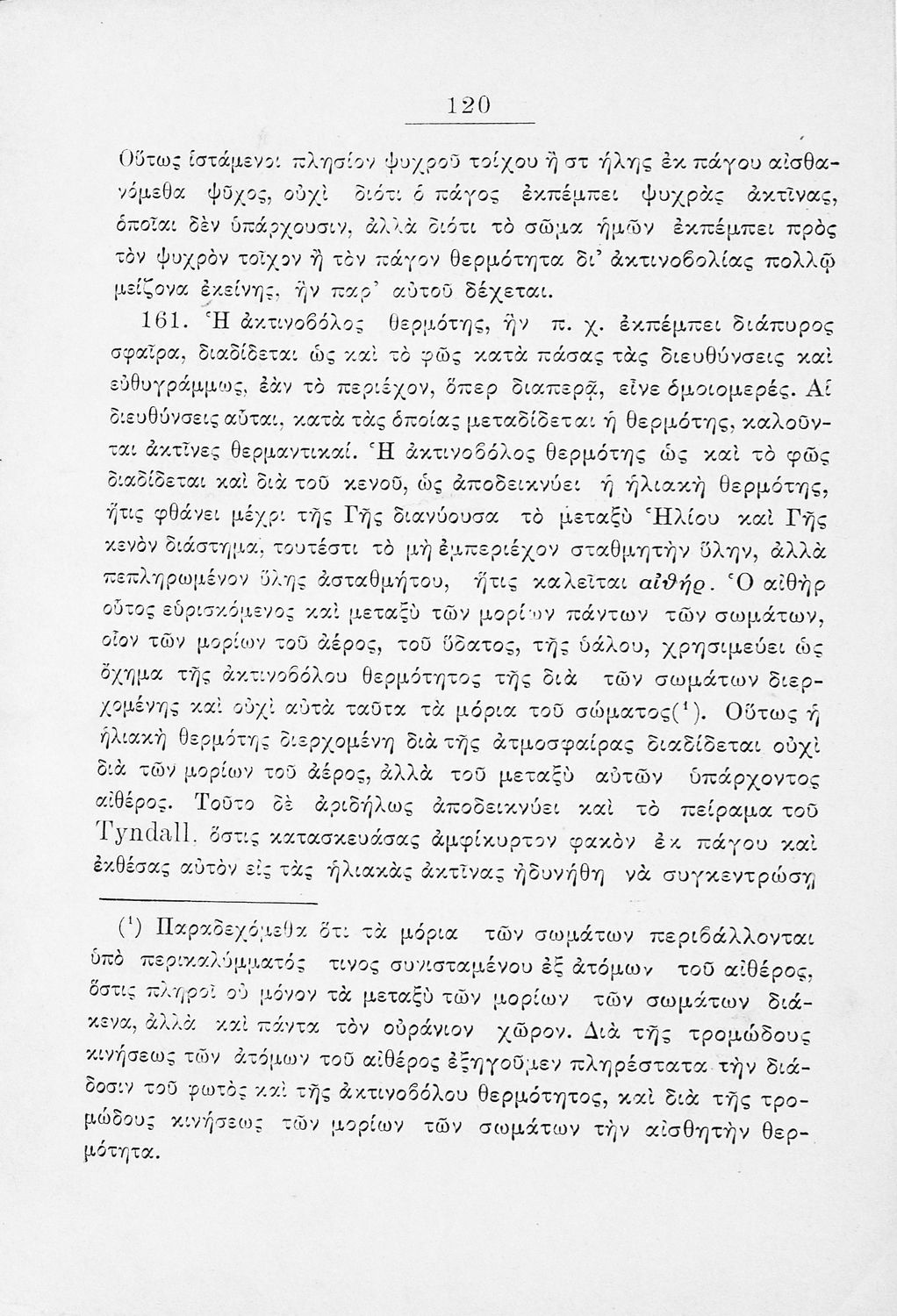 Σχολικό εγχειρίδιο για το μάθημα της Φυσικής. Το εγχειρίδιο περιλαμβάνει εισαγωγικά τις γενικές ιδιότητες των φυσικών σωμάτων και τις στοιχειώδεις γνώσεις της μηχανικής. Ο κύριος κορμός του βιβλίου αποτελείται από τις θεματικές της βαρύτητας, της υδροστατικής αρχής, της ατμοσφαιρικής πίεσης, της θερμότητας, της ακουστικής, της οπτικής, του μαγνητισμού, του ηλεκτρισμού, του στατικού και του δυναμικού ηλεκτρισμού.