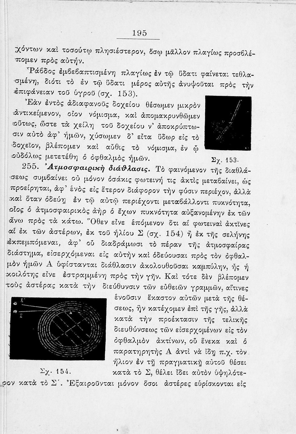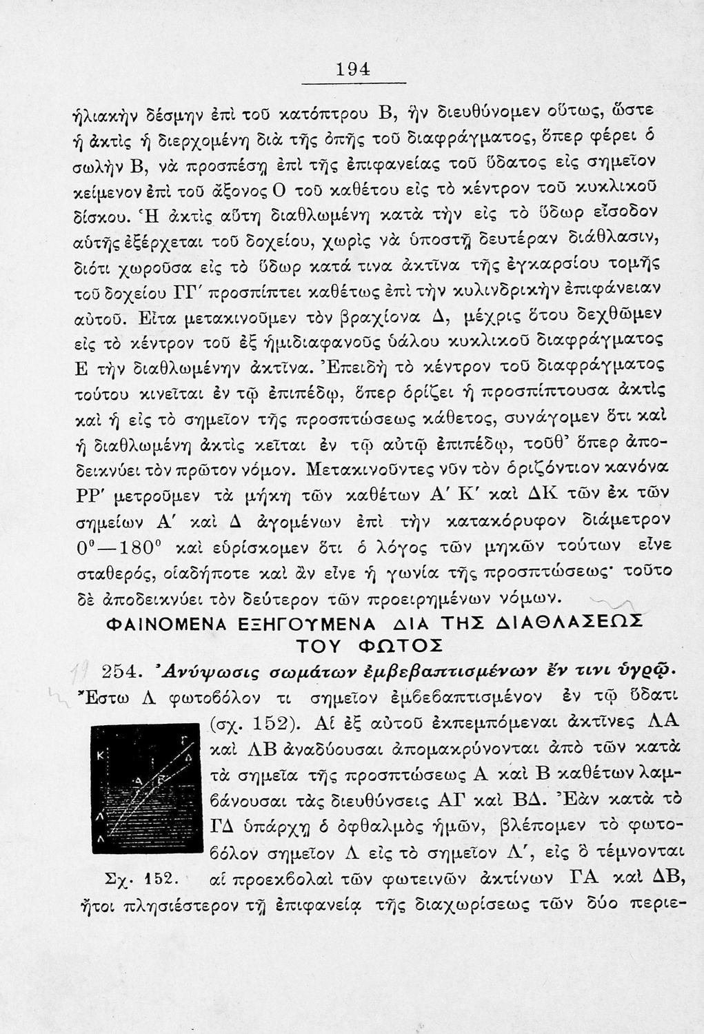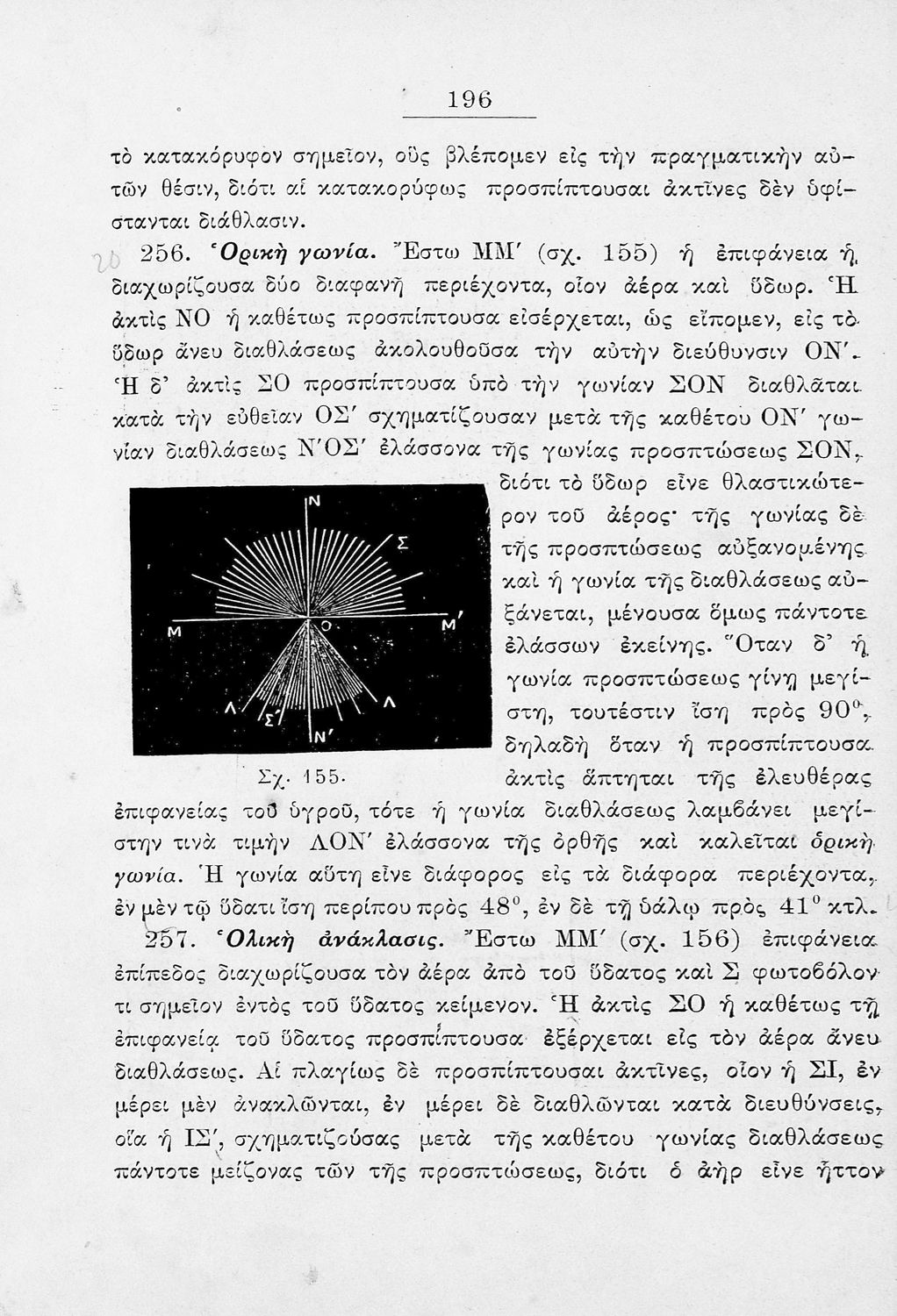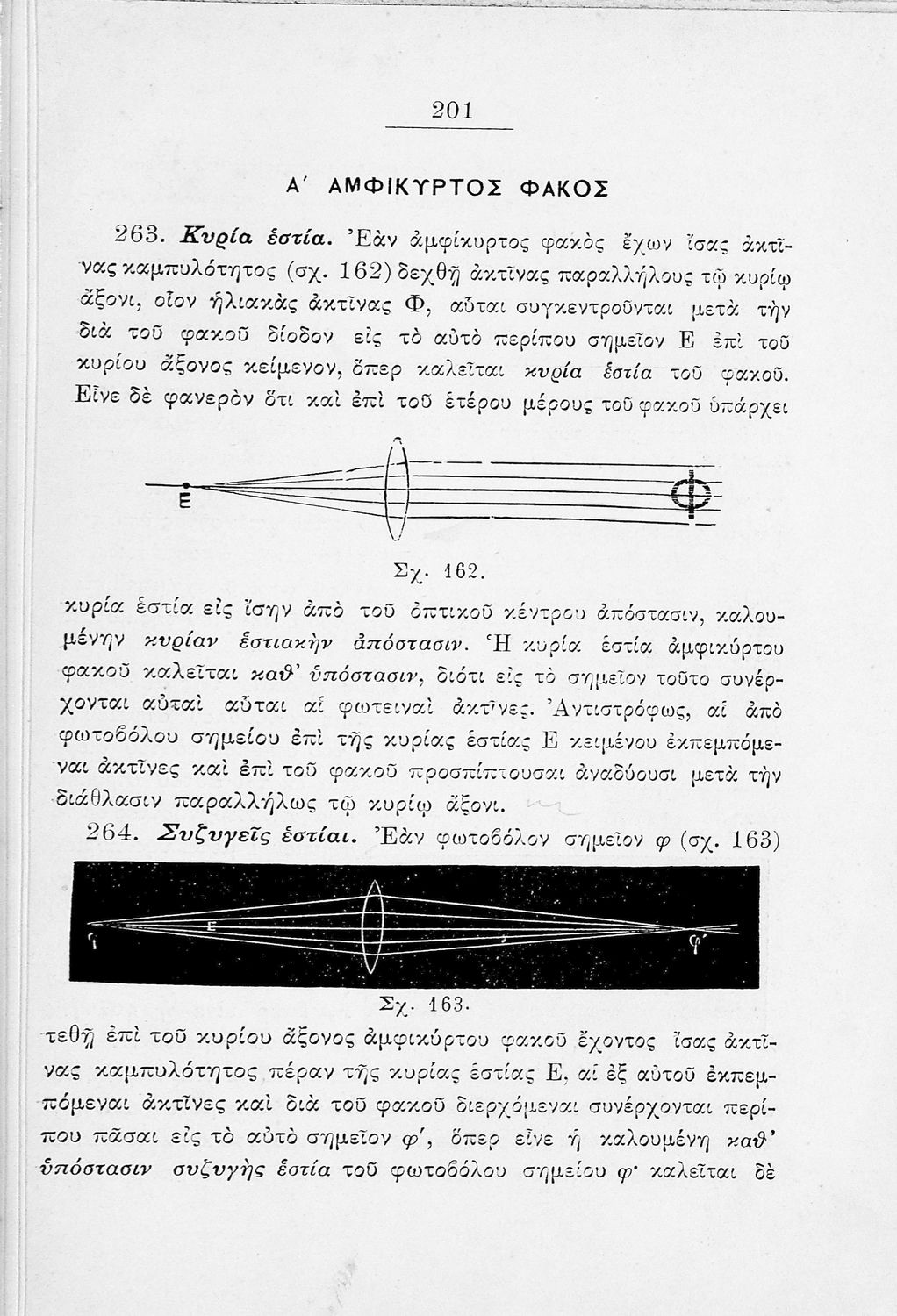 Σχολικό εγχειρίδιο για το μάθημα της Φυσικής. Το εγχειρίδιο περιλαμβάνει εισαγωγικά τις γενικές ιδιότητες των φυσικών σωμάτων και τις στοιχειώδεις γνώσεις της μηχανικής. Ο κύριος κορμός του βιβλίου αποτελείται από τις θεματικές της βαρύτητας, της υδροστατικής αρχής, της ατμοσφαιρικής πίεσης, της θερμότητας, της ακουστικής, της οπτικής, του μαγνητισμού, του ηλεκτρισμού, του στατικού και του δυναμικού ηλεκτρισμού.