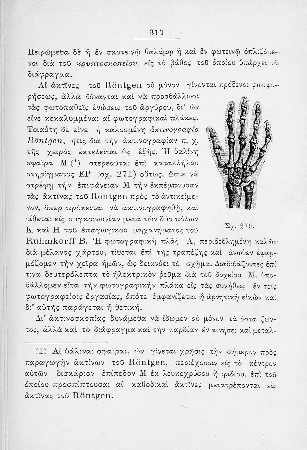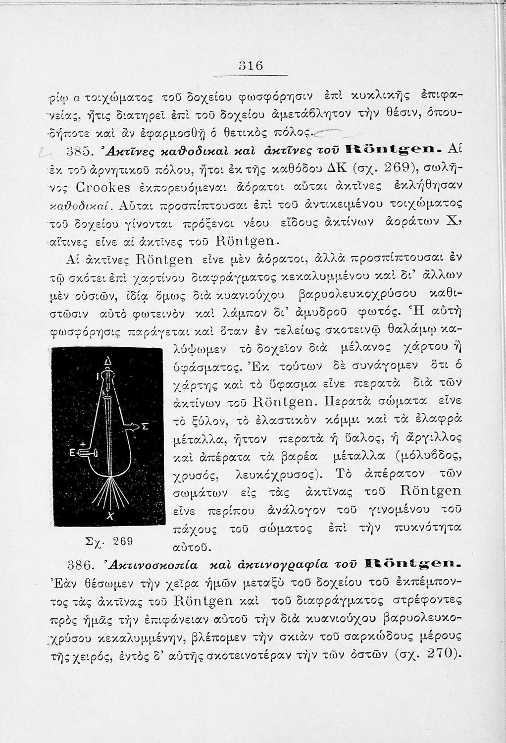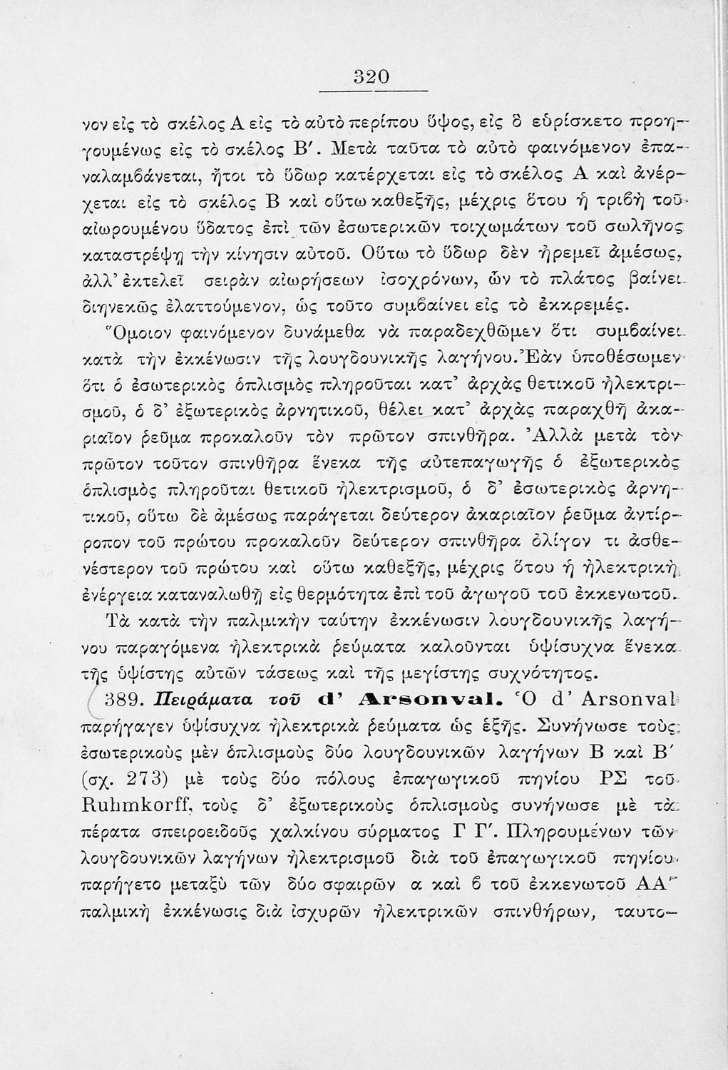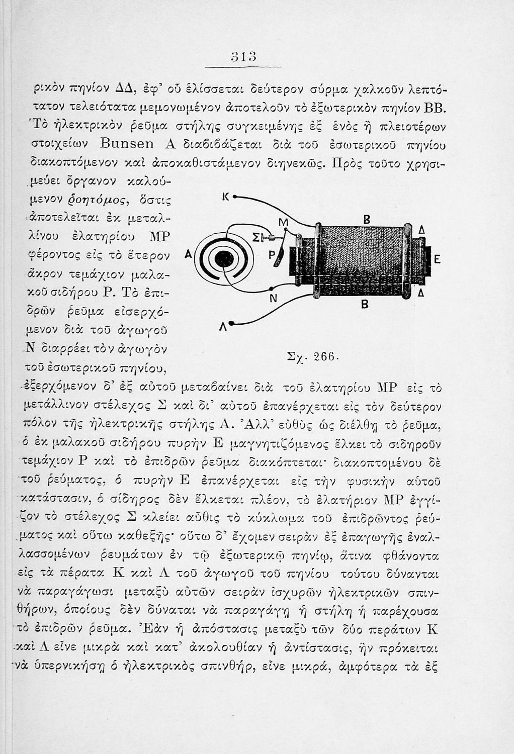 Σχολικό εγχειρίδιο για το μάθημα της Φυσικής. Το εγχειρίδιο περιλαμβάνει εισαγωγικά τις γενικές ιδιότητες των φυσικών σωμάτων και τις στοιχειώδεις γνώσεις της μηχανικής. Ο κύριος κορμός του βιβλίου αποτελείται από τις θεματικές της βαρύτητας, της υδροστατικής αρχής, της ατμοσφαιρικής πίεσης, της θερμότητας, της ακουστικής, της οπτικής, του μαγνητισμού, του ηλεκτρισμού, του στατικού και του δυναμικού ηλεκτρισμού.