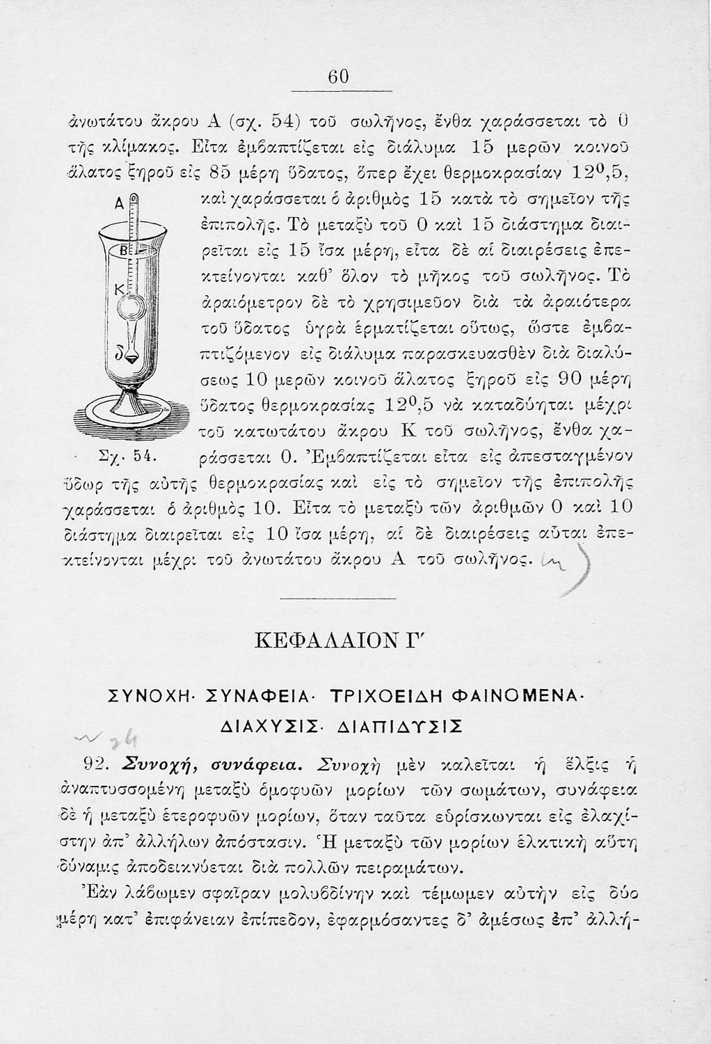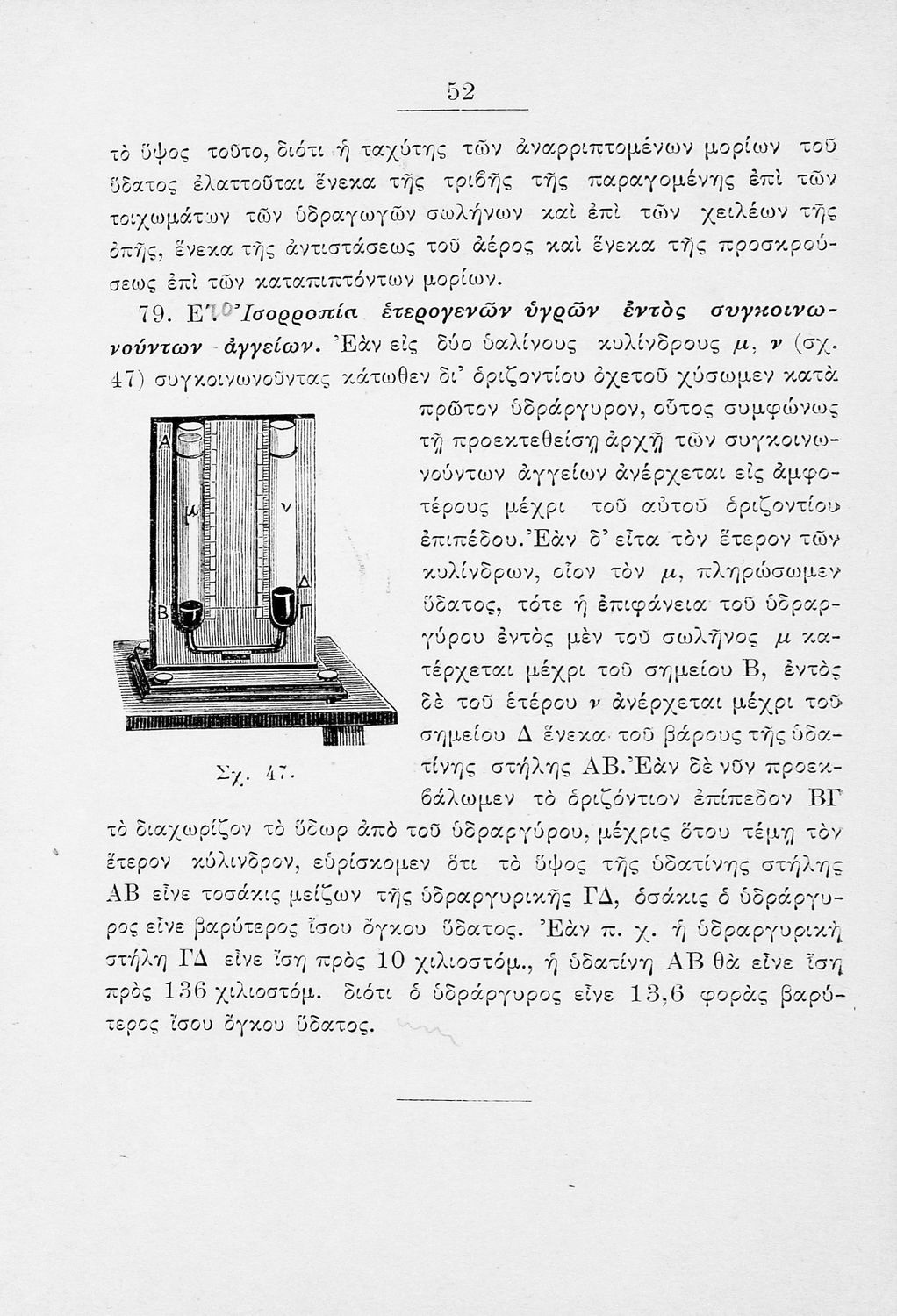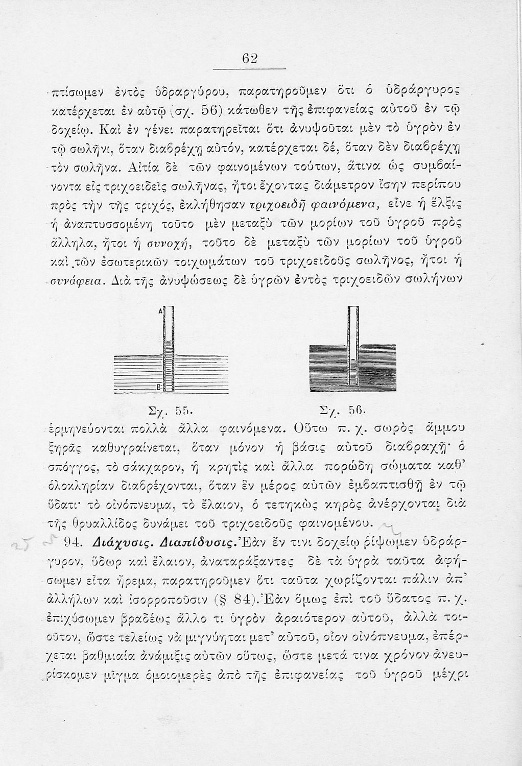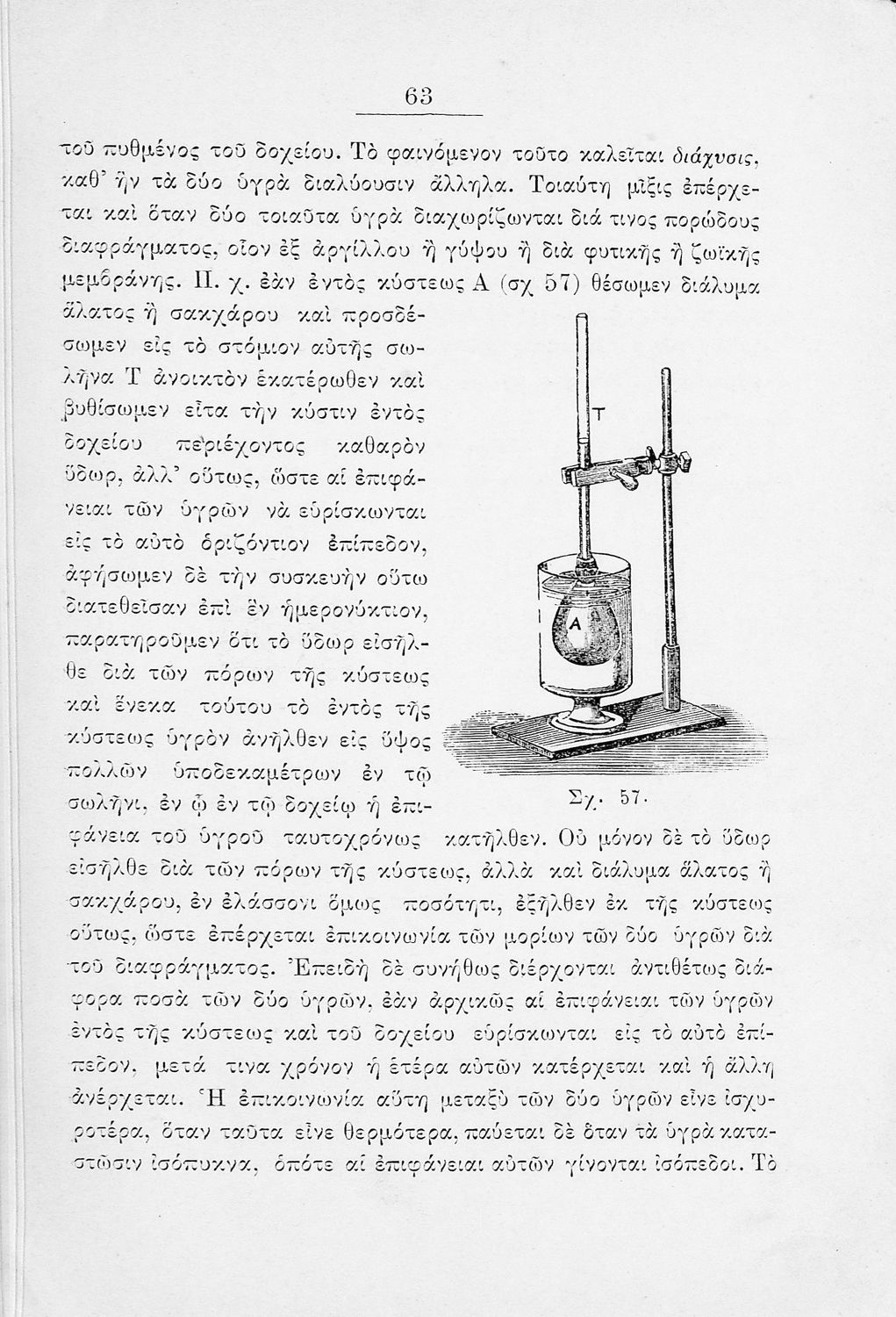 Σχολικό εγχειρίδιο για το μάθημα της Φυσικής. Το εγχειρίδιο περιλαμβάνει εισαγωγικά τις γενικές ιδιότητες των φυσικών σωμάτων και τις στοιχειώδεις γνώσεις της μηχανικής. Ο κύριος κορμός του βιβλίου αποτελείται από τις θεματικές της βαρύτητας, της υδροστατικής αρχής, της ατμοσφαιρικής πίεσης, της θερμότητας, της ακουστικής, της οπτικής, του μαγνητισμού, του ηλεκτρισμού, του στατικού και του δυναμικού ηλεκτρισμού.