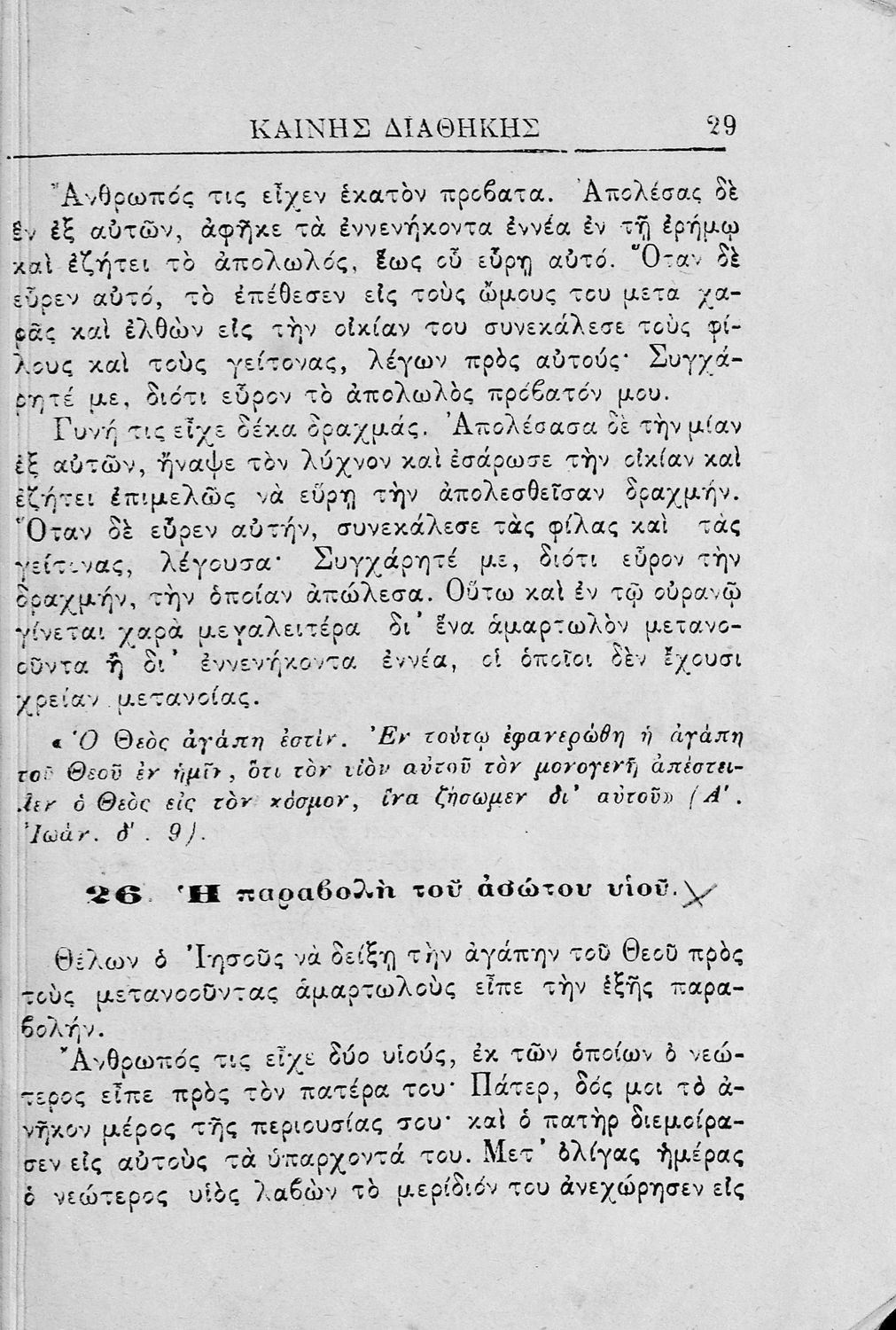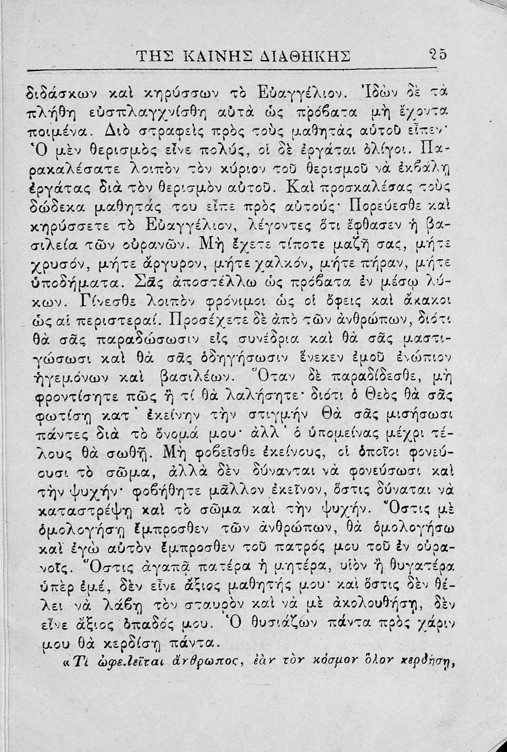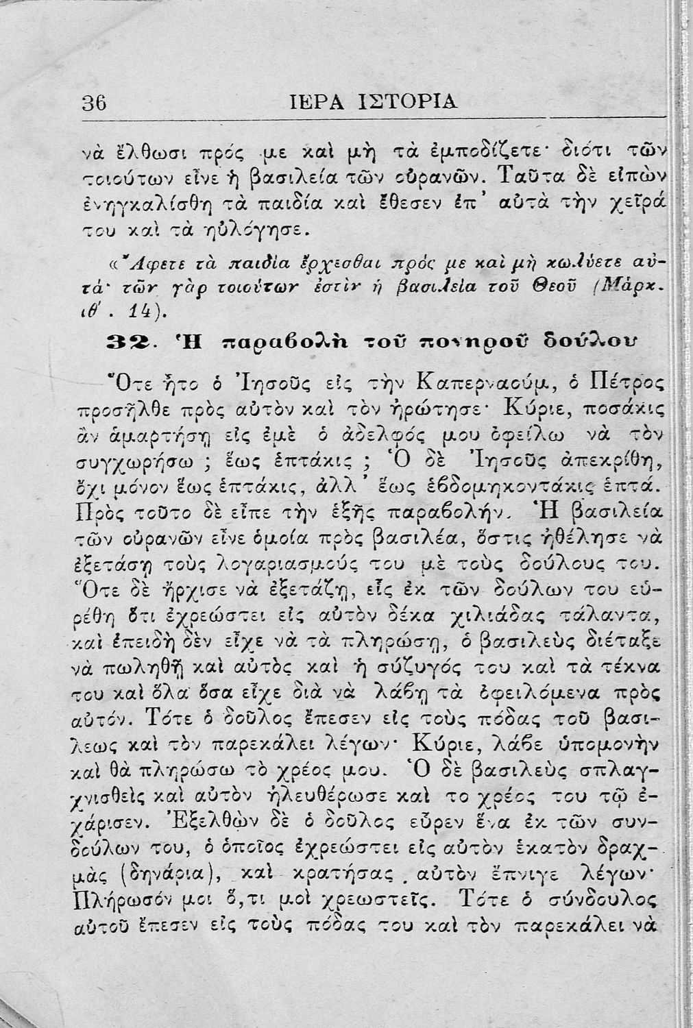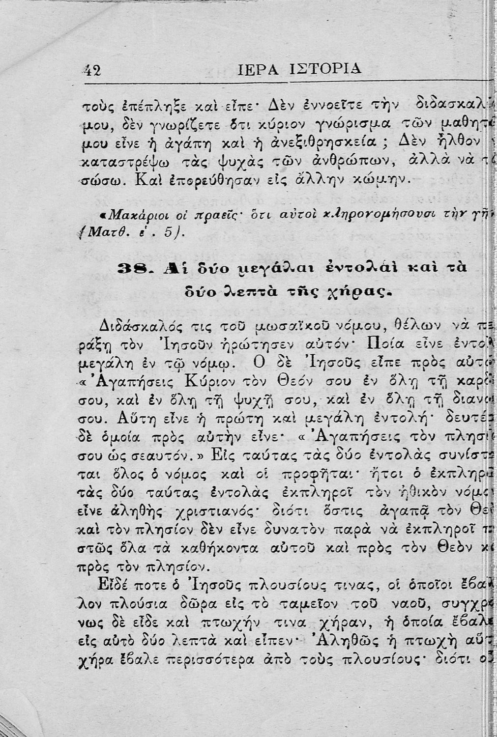 Σχολικό εγχειρίδιο Θρησκευτικών για τα Ελληνικά σχολεία και Παρθεναγωγεία που συνιστά μία εξιστόρηση της Καινής Διαθήκης από τη γέννηση της Θεοτόκου ως την ανάληψη του Χριστού και τη δράση των Αποστόλων.
