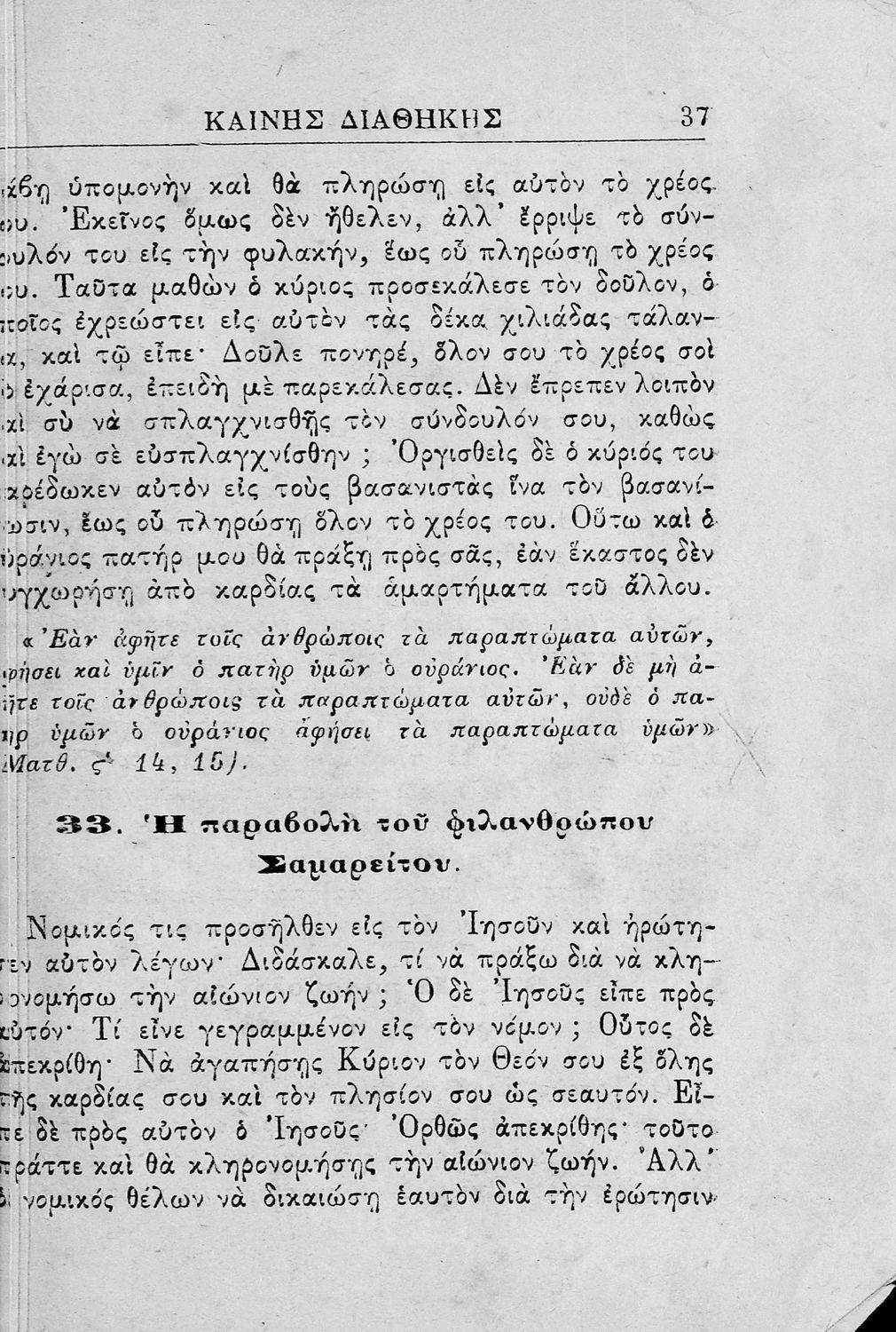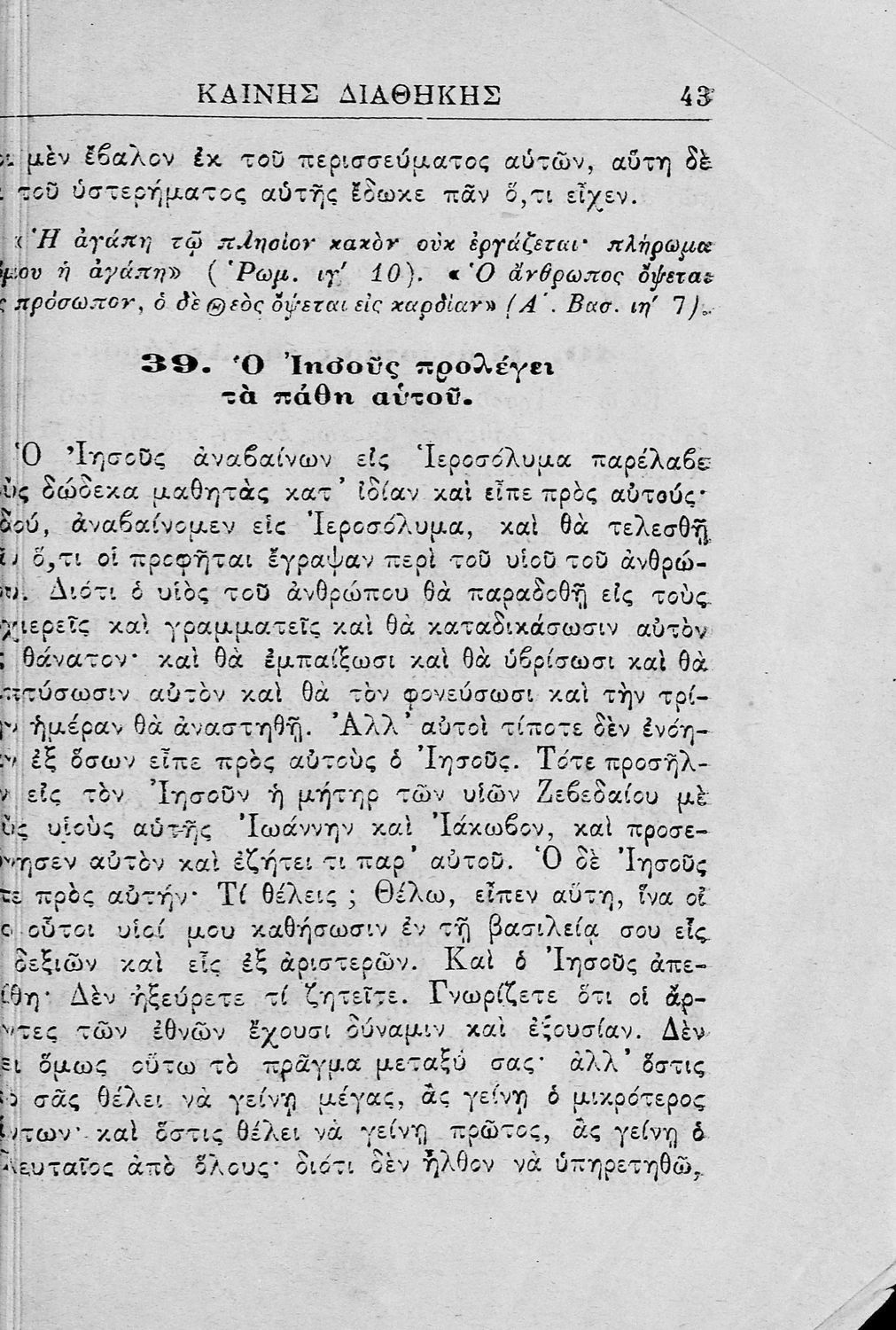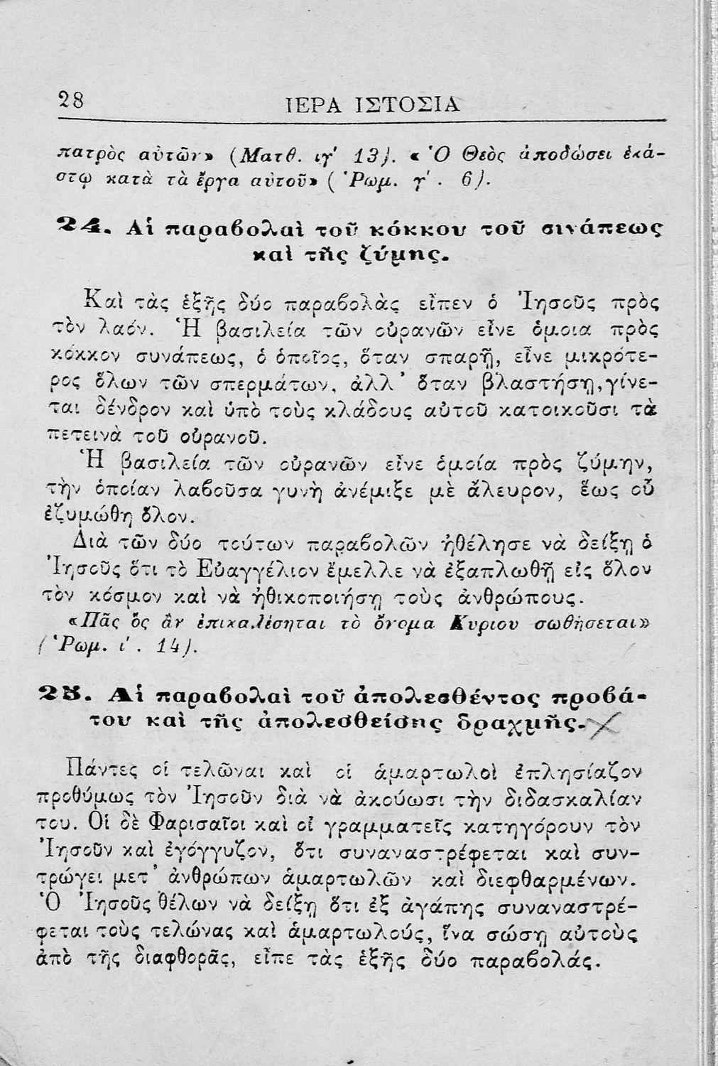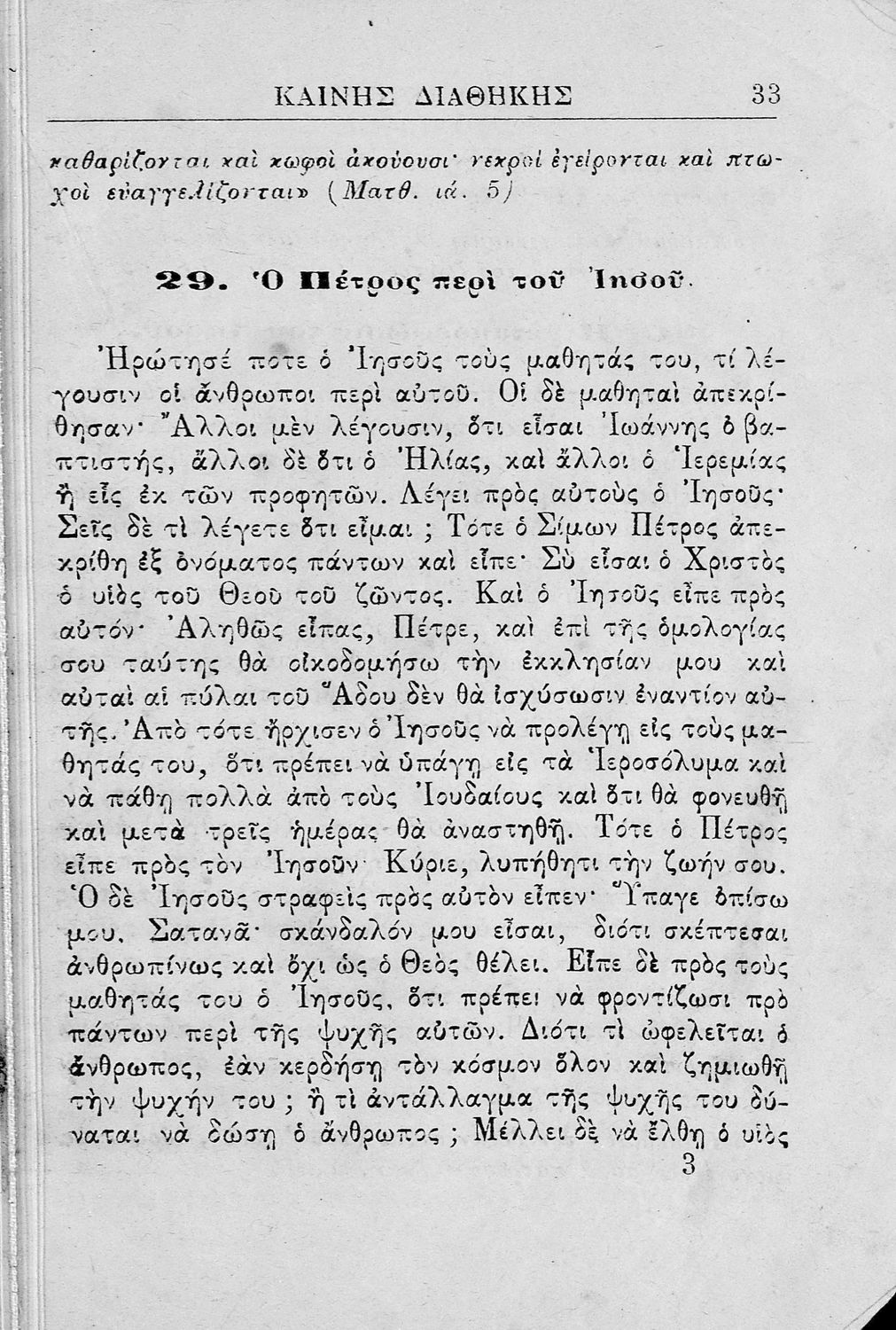 Σχολικό εγχειρίδιο Θρησκευτικών για τα Ελληνικά σχολεία και Παρθεναγωγεία που συνιστά μία εξιστόρηση της Καινής Διαθήκης από τη γέννηση της Θεοτόκου ως την ανάληψη του Χριστού και τη δράση των Αποστόλων.