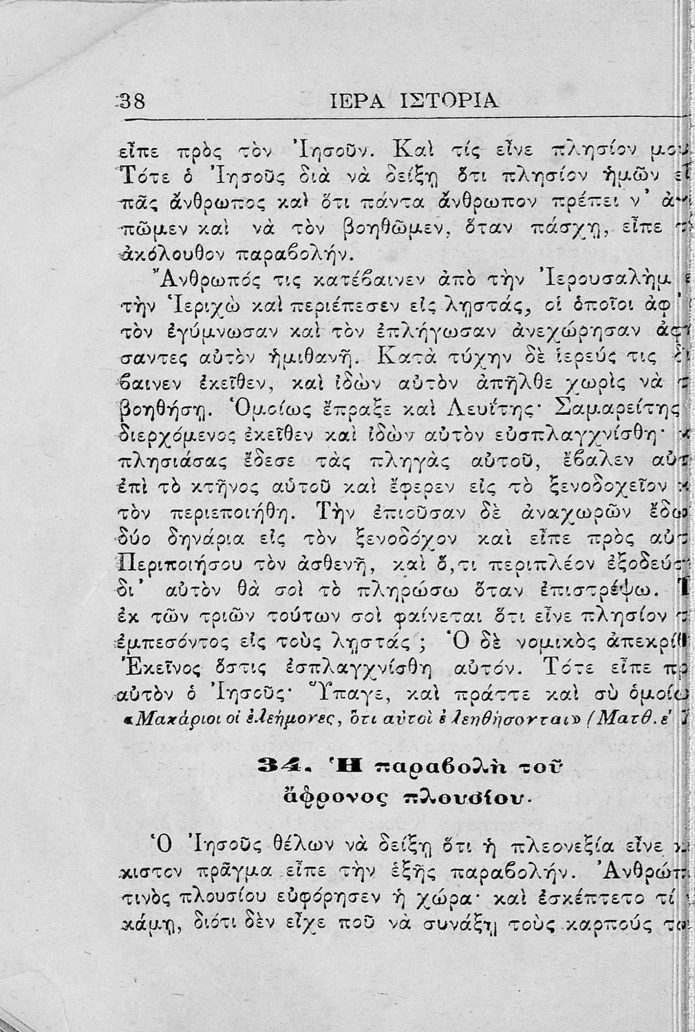 Σχολικό εγχειρίδιο Θρησκευτικών για τα Δημοτικά και Ελληνικά Σχολεία που περιλαμβάνει την ιστορία της Παλαιάς και της Καινής Διαθήκης από την δημιουργία του κόσμου μέχρι και την ανάληψη του Ιησού Χριστού.