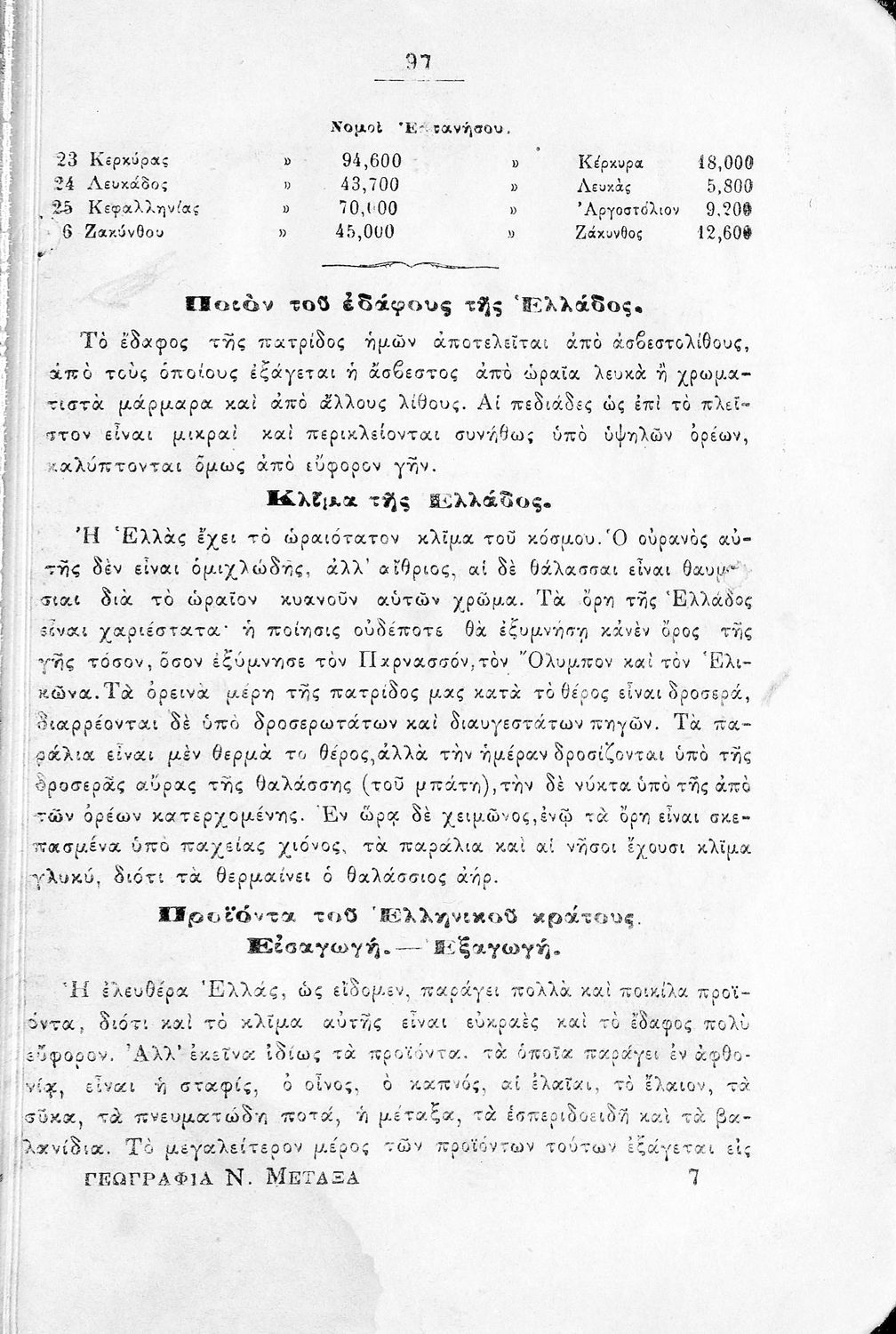 LDR 01580 2200193 4500 035 ## _a09-160700 040 ## _aΑκαδημία Αθηνών 041 ## _ael 100 ## _aΝικόλαος Μεταξάς 110 ## _a160700 245 0# _aΓεωγραφία πολιτική και φυσική συνταχθείσα κατά την νέαν διοικητικήν διαίρεσιν του κράτους εγκεκριμένη επί πενταετίαν 1899 - 1903 υπό του υπουργείου των εκκλησιαστικών και της δημόσιας εκπαιδεύσεως προς χρήσιν των Δημοτικών Σχολείων αμφοτέρων των φύλων 260 ## _aΑθήνα _bΜιχαήλ Ι. Σαλίβερος _c1899 300 ## _a152 520 ## _aΣχολικό εγχειρίδιο Γεωγραφίας Δημοτικού που περιλαμβάνει εισαγωγή στη φυσική και μαθηματική γεωγραφία και αναλύει την πολιτική και φυσική γεωγραφία της Ελλάδας, των Βαλκανίων, της Ευρώπης γενικότερα, και περιληπτικά της Ασίας, Αμερικής, Αυστραλίας και Αφρικής. 522 ## _aΕλλάδα 546 ## _aΚαθαρεύουσα 563 ## _aΣκληρό Εξώφυλλο 583 ## _a9157/ 21-7-1899 _c1899 650 #4 _aΑμερική _aΑσία _aΑυστραλία _aΑφρική _aΕλλάδα _aΕυρώπη _aΜαθηματική _aΠολιτική γεωγραφία _aΦυσική