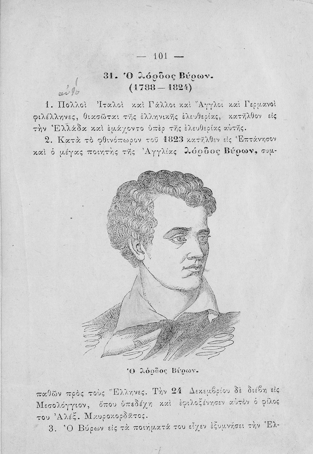 Σχολικό εγχειρίδιο για την Α' Ελληνικού Σχολείου και Παρθεναγωγείου που περιλαμβάνει βιογραφίες επιφανών ανδρών της αρχαίας και της νεώτερης Ελλάδας.