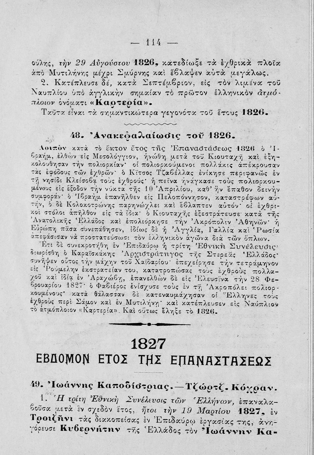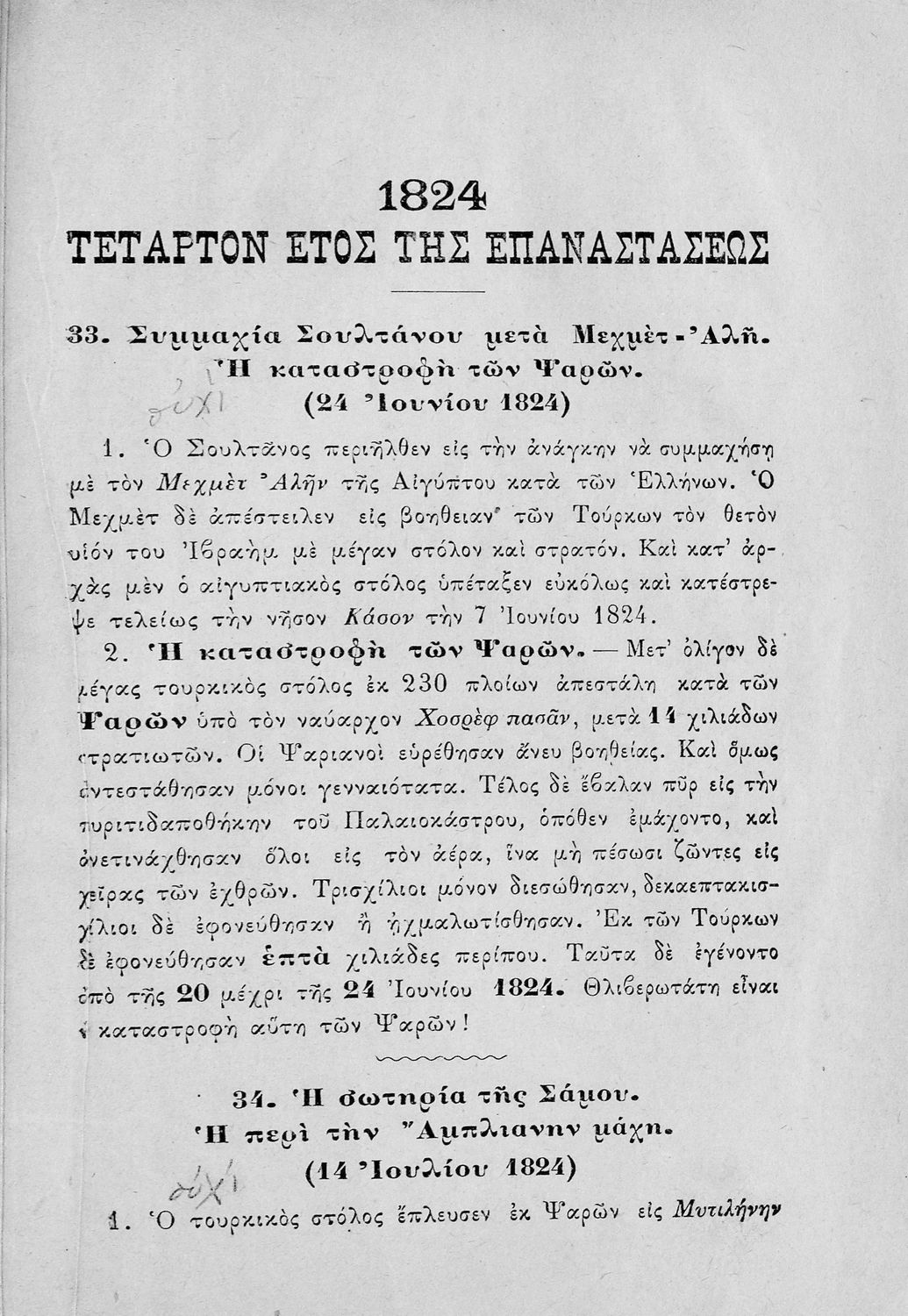 Σχολικό εγχειρίδιο για την Δ΄ Δημοτικού για το μάθημα της Ιστορίας. Το εγχειρίδιο περιλαμβάνει εισαγωγικά γενικές γνώσεις για την ιστορία της Ελλάδας από τους αρχαίους χρόνους, την διάδοση του χριστιανισμού, τον Μ. Κωνσταντίνο και τους βυζαντινούς αυτοκράτορες. Το πρώτο μέρος ασχολείται με την Τουρκοκρατία και τις τακτικές των Τούρκων κατά την περίοδο αυτή. Το δεύτερο μέρος περιγράφει τα γεγονότα της Ελληνικής Επανάστασης και την ανεξαρτησία του ελληνικού κράτους, την συμβολή του Ι. Καποδίστρια, του Όθωνα και του Γεωργίου.