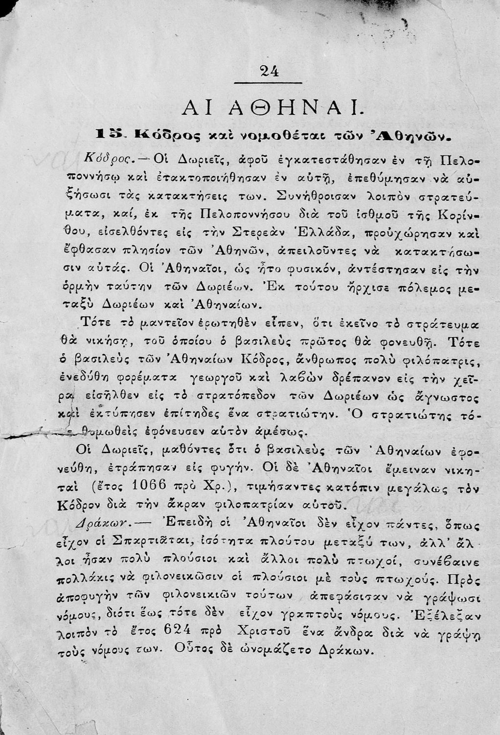 Σχολικό εγχειρίδιο Ιστορίας Δημοτικού που καλύπτει το διάστημα από τους προϊστορικούς χρόνους ως την κατάληψη της Ελλάδας από τους Ρωμαίους. Περιέχει και σύντομα βιογραφικά σημειώματα επιφανών προσωπικοτήτων της αρχαίας ελληνικής μυθολογίας και ιστορίας.