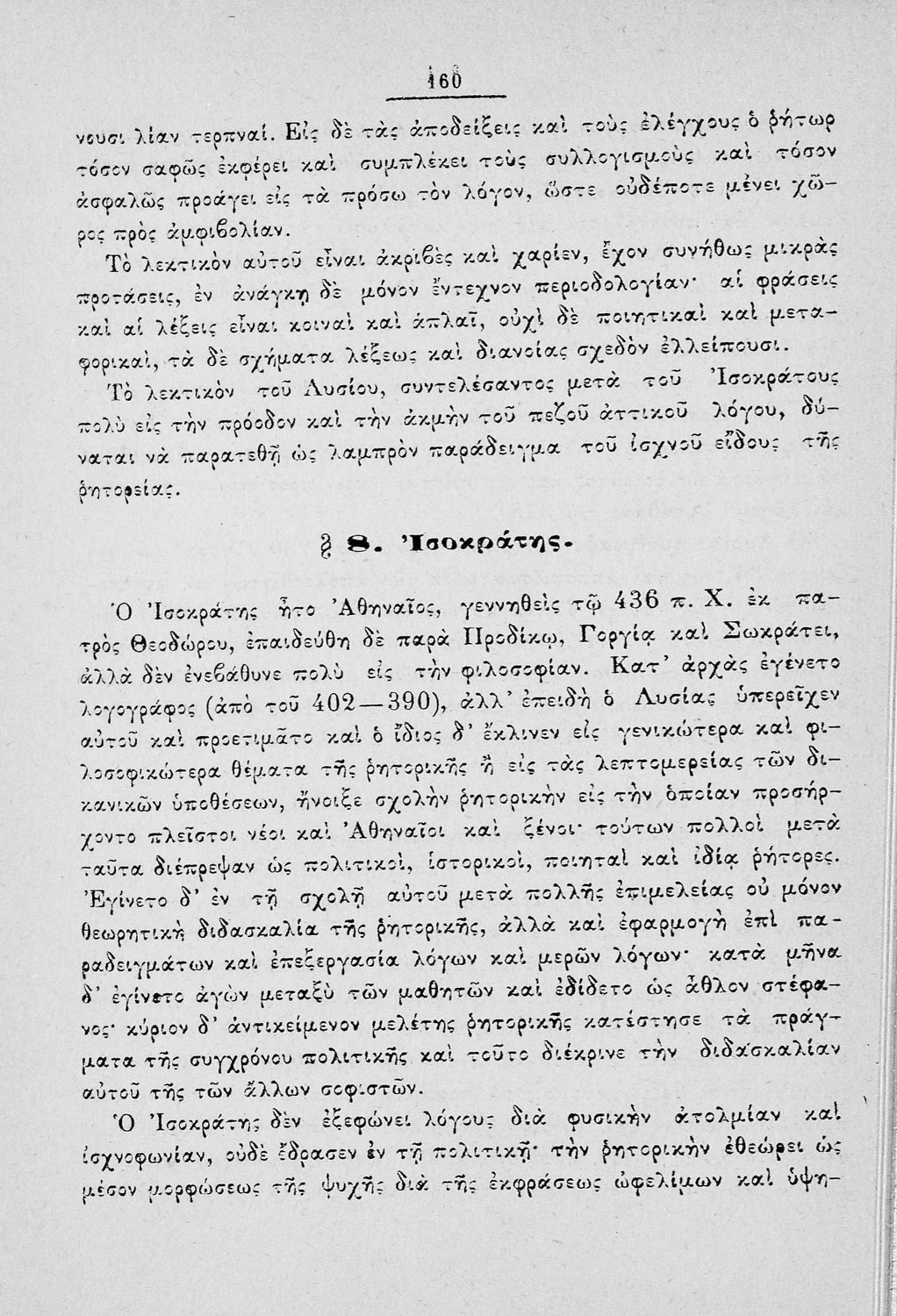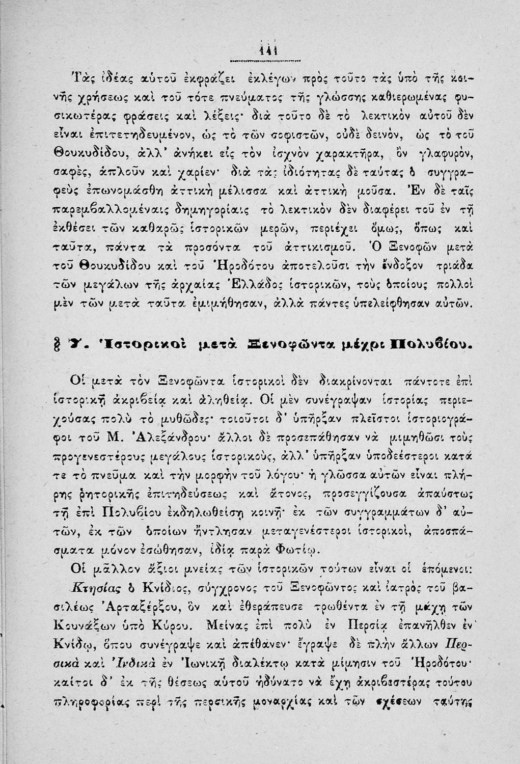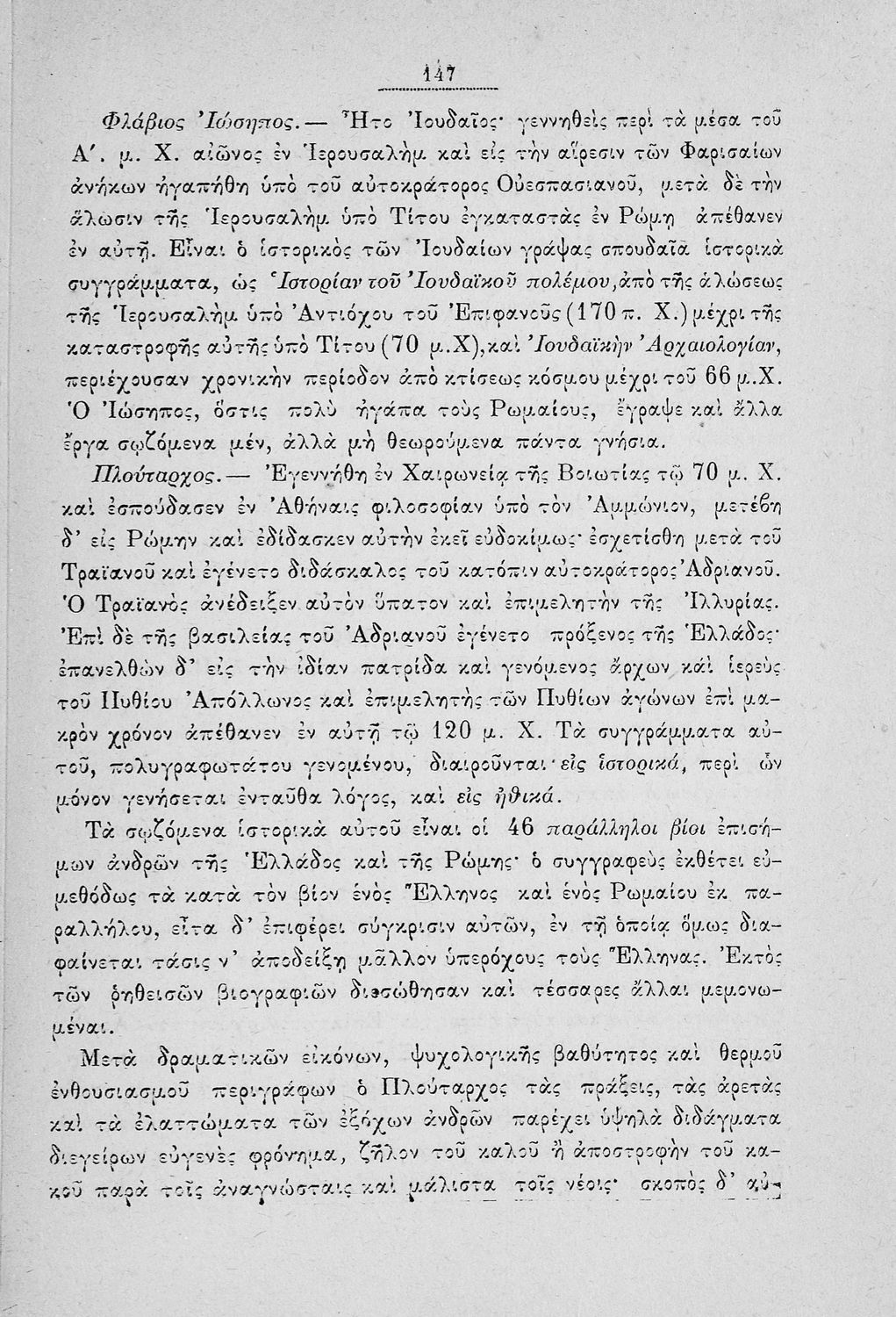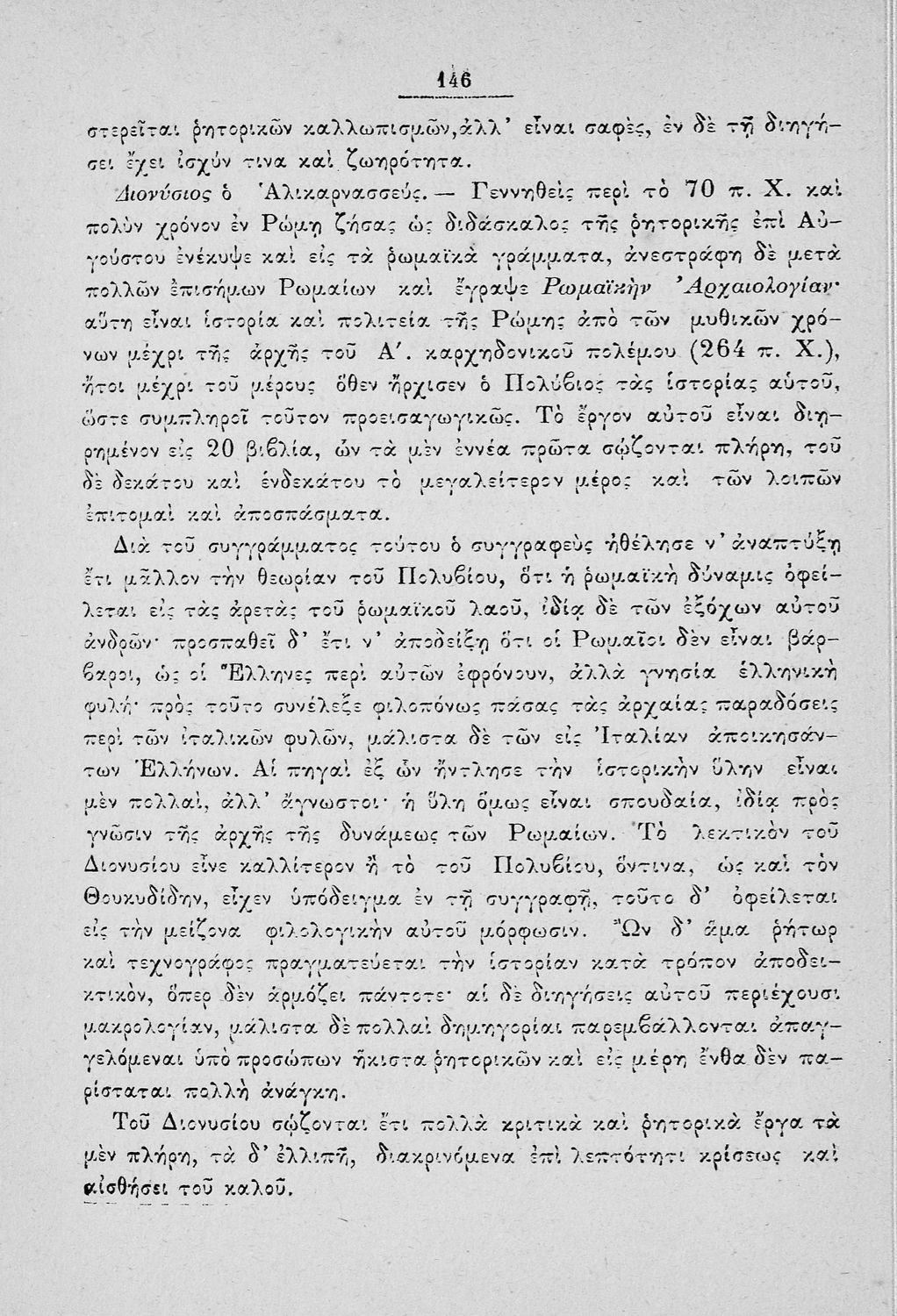 520 ## _aΣχολικό εγχειρίδιο για τις τάξεις του Γυμνασίου, του Διδασκαλείου και του Παρθεναγωγείου για το μάθημα των Αρχαίων Ελληνικών. Το εγχειρίδιο περιλαμβάνει εισαγωγικά γενικές πληροφορίες για την ελληνική γραμματολογία, για τα είδη, την γλώσσα και τις διαλέκτους της. Ο κύριος κορμός του βιβλίου χωρίζεται σε δύο μέρη. Το πρώτο μέρος περιλαμβάνει την επική, την λυρική και δραματική ποίηση . Το δεύτερο μέρος ασχολείται με την ιστοριογραφία, την ρητορεία και την φιλοσοφία.