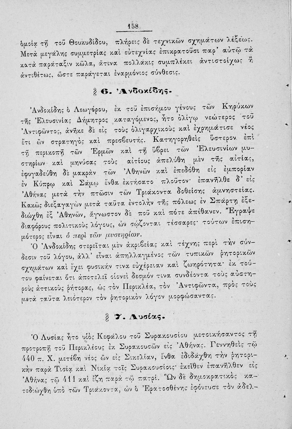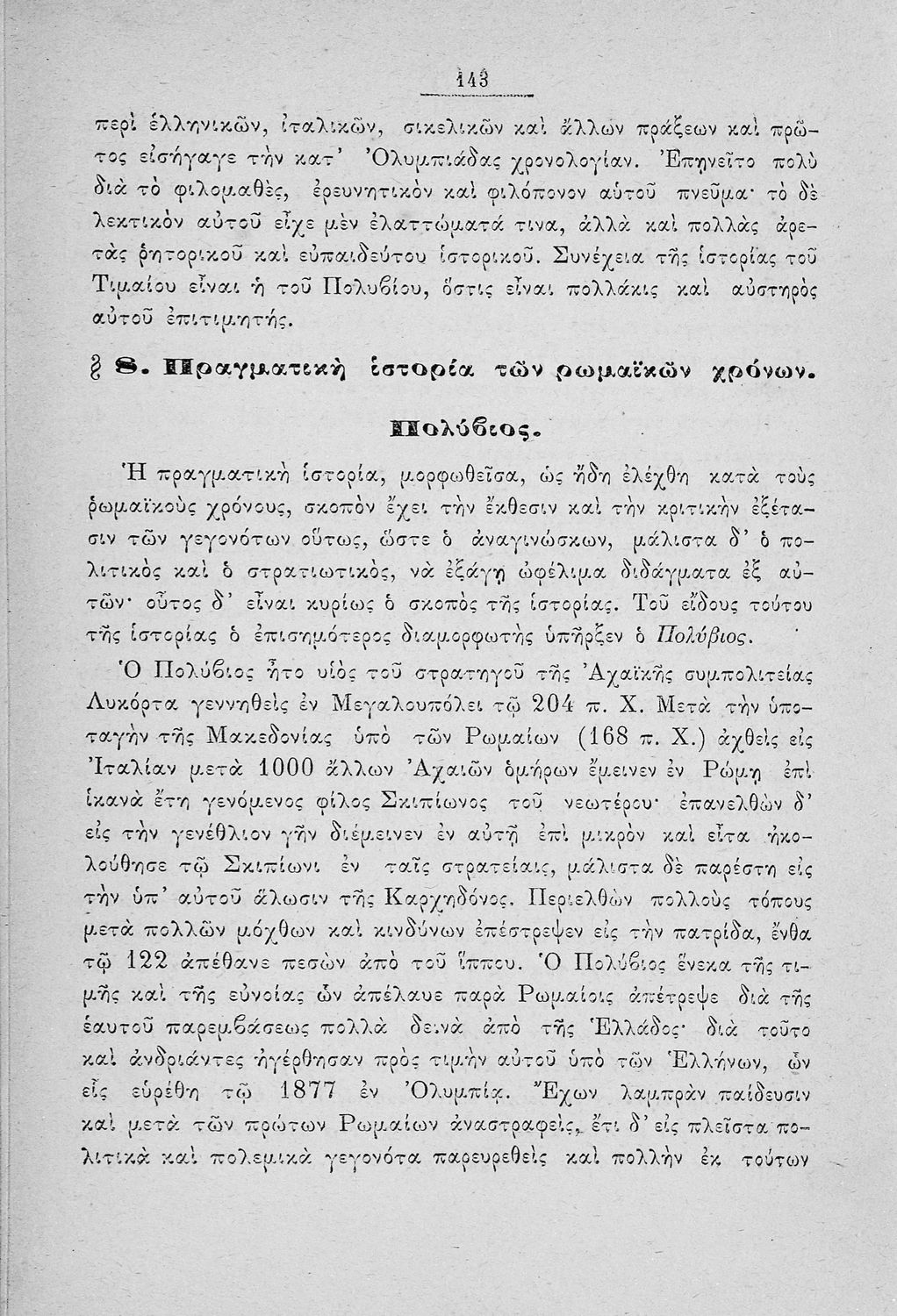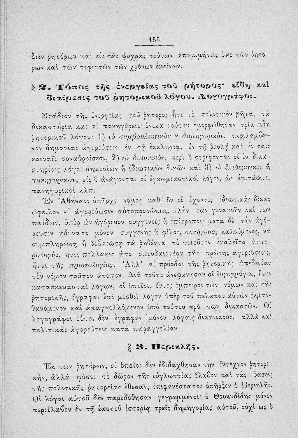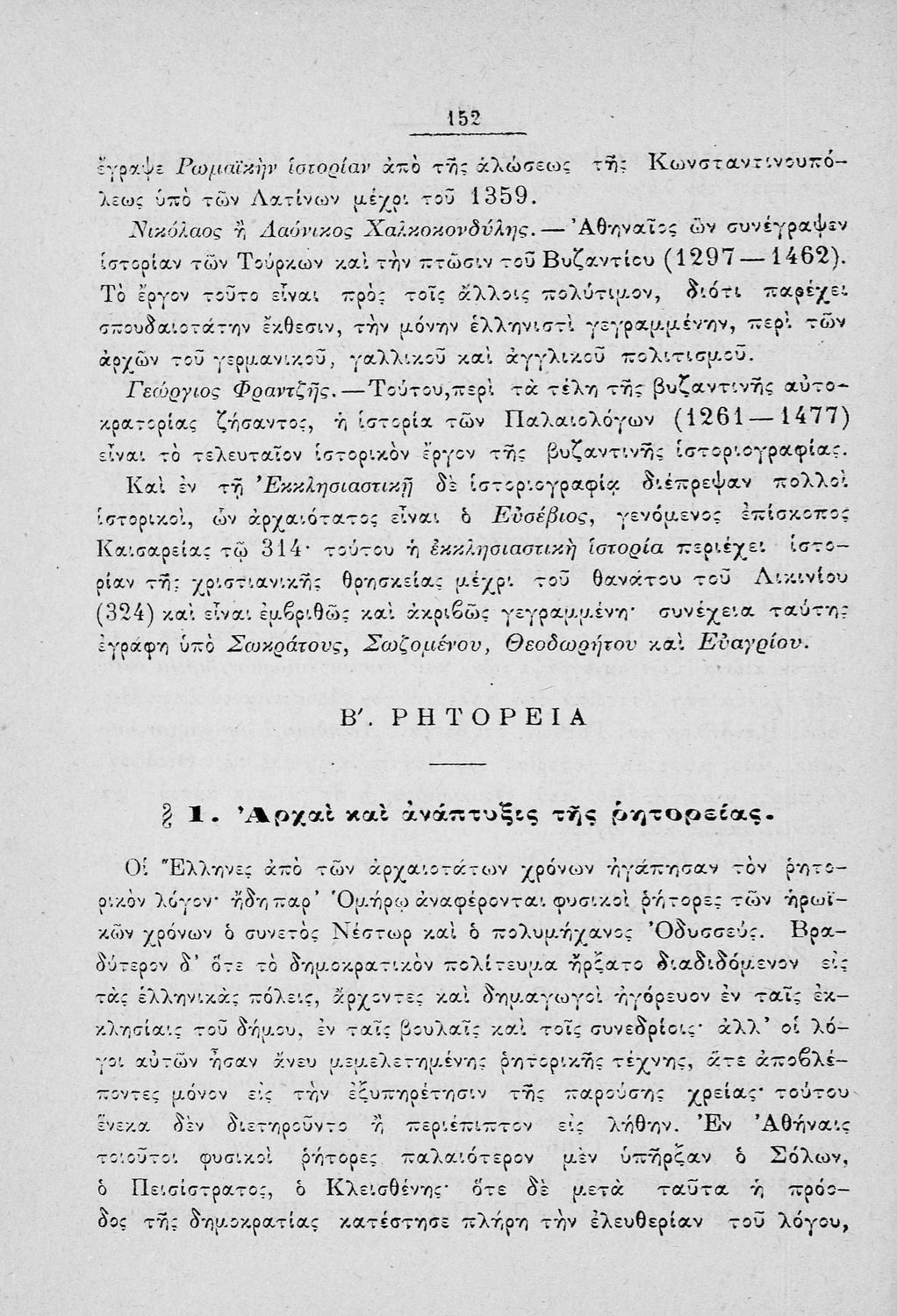 520 ## _aΣχολικό εγχειρίδιο για τις τάξεις του Γυμνασίου, του Διδασκαλείου και του Παρθεναγωγείου για το μάθημα των Αρχαίων Ελληνικών. Το εγχειρίδιο περιλαμβάνει εισαγωγικά γενικές πληροφορίες για την ελληνική γραμματολογία, για τα είδη, την γλώσσα και τις διαλέκτους της. Ο κύριος κορμός του βιβλίου χωρίζεται σε δύο μέρη. Το πρώτο μέρος περιλαμβάνει την επική, την λυρική και δραματική ποίηση . Το δεύτερο μέρος ασχολείται με την ιστοριογραφία, την ρητορεία και την φιλοσοφία.
