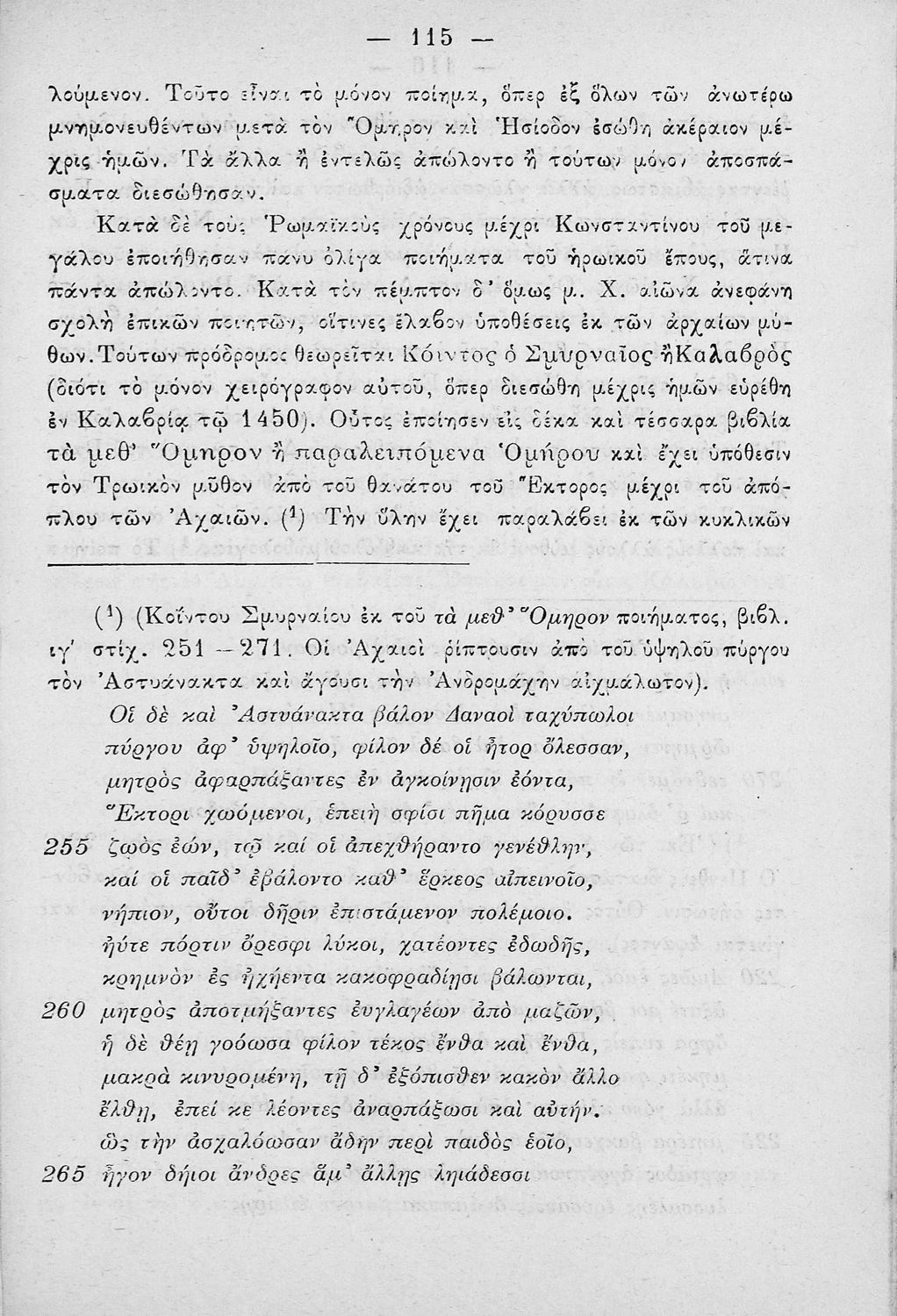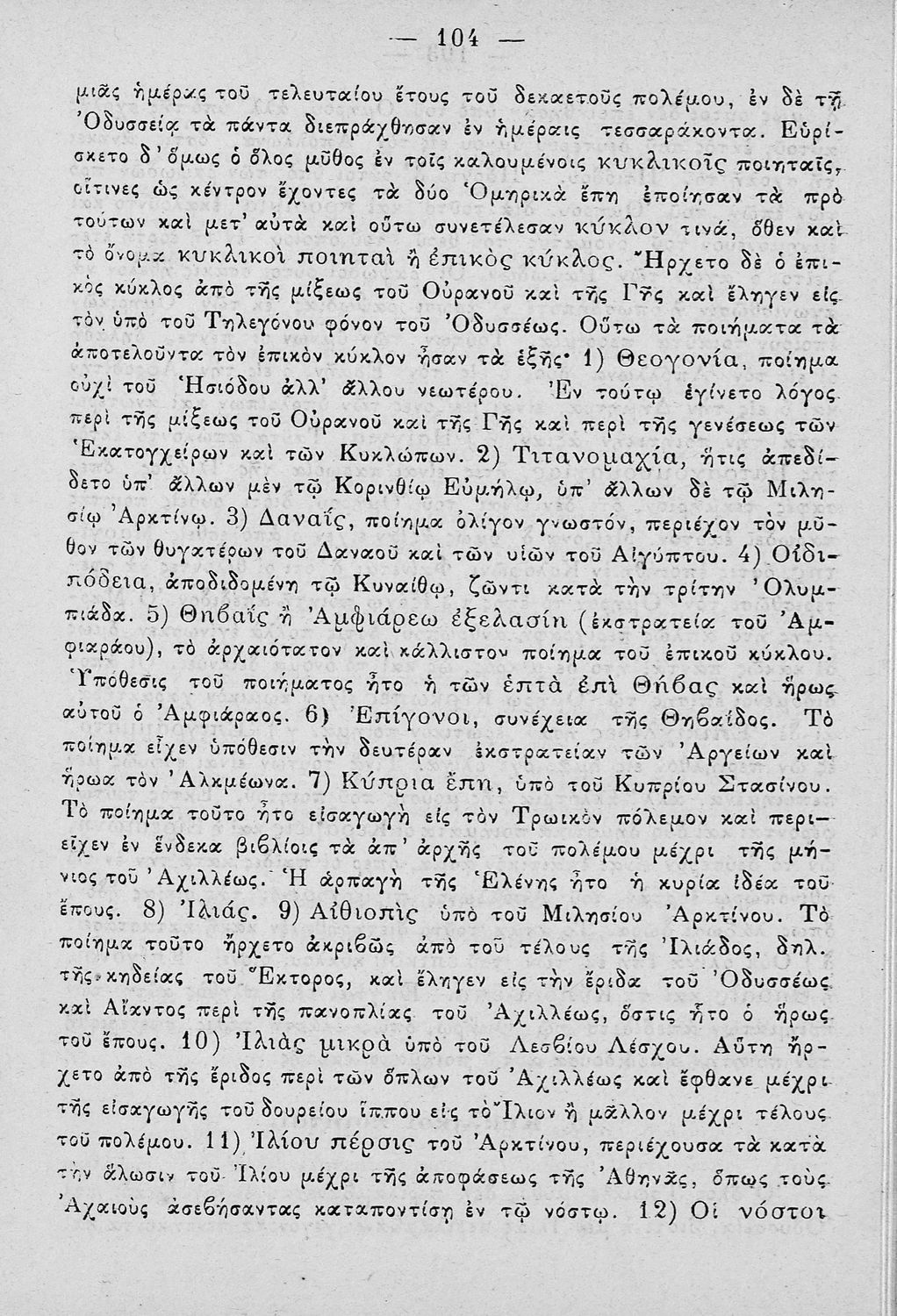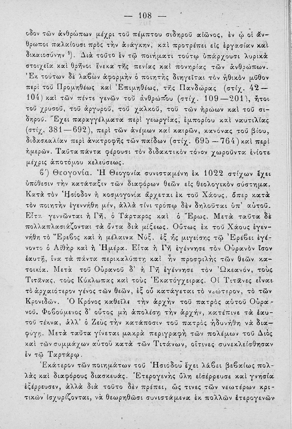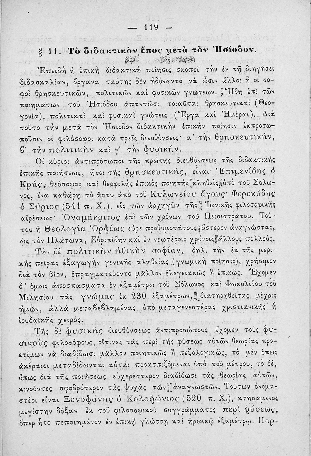 Σχολικό εγχειρίδιο για τις τάξεις του Παρθεναγωγείου και του Γυμνασίου για το μάθημα των Αρχαίων Ελληνικών. Το εγχειρίδιο περιλαμβάνει συνοπτικά την ελληνική γραμματολογία και την εργογραφία του Ηρόδοτου, του Θουκυδίδη, των λογογράφων της Ιωνίας, του Ξενοφώντα, των Αττικών ρητόρων, του Ησίοδου, του Ομήρου, του Σοφοκλή, της Αριστοτελικής, της Ελεατικής φιλοσοφίας κ.α.