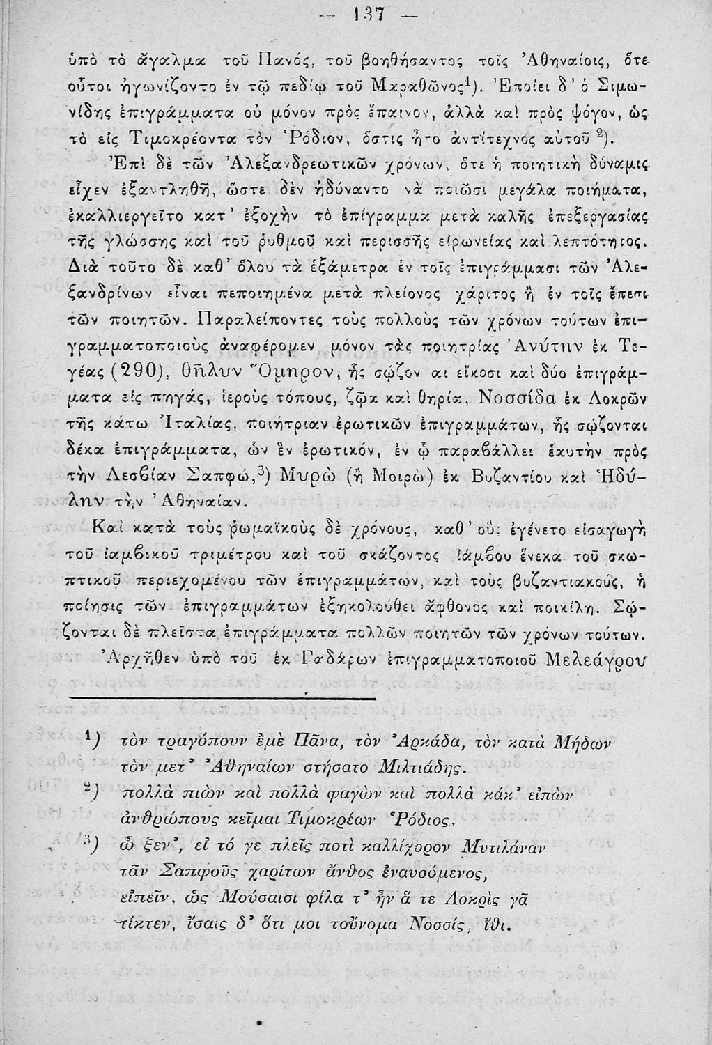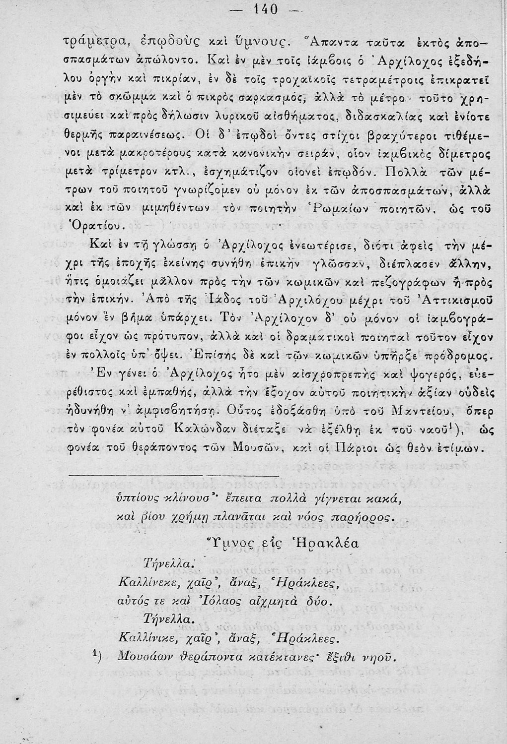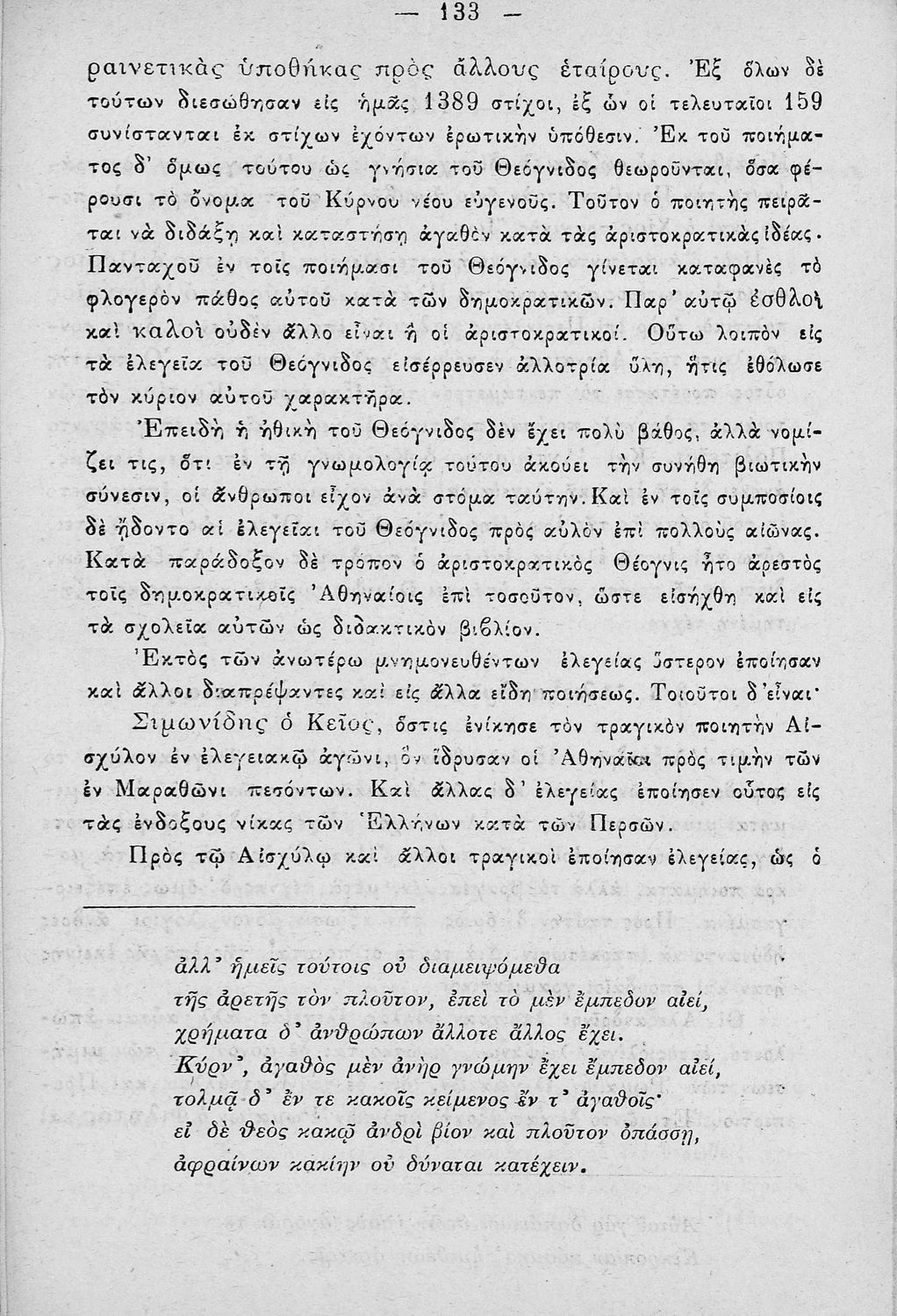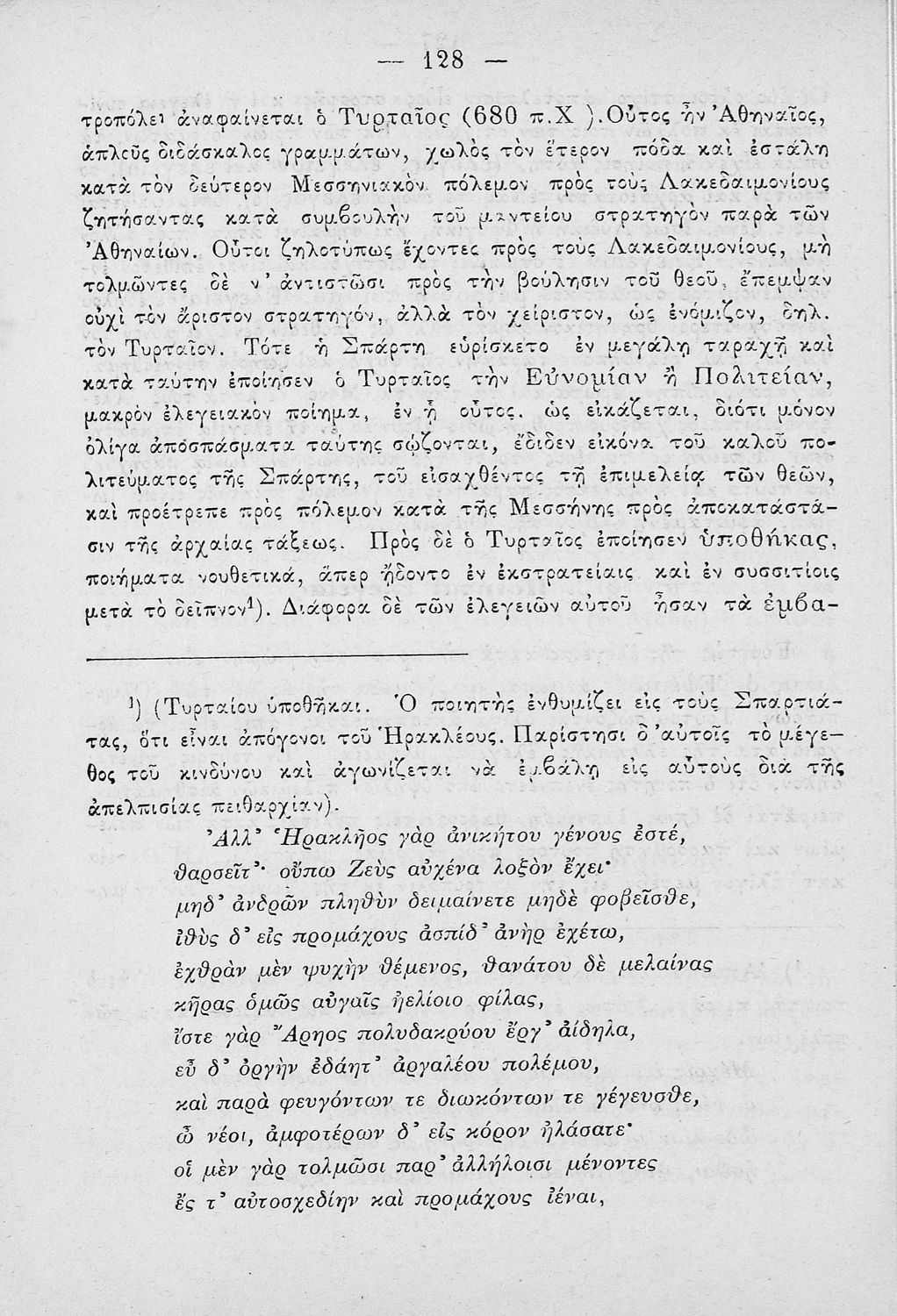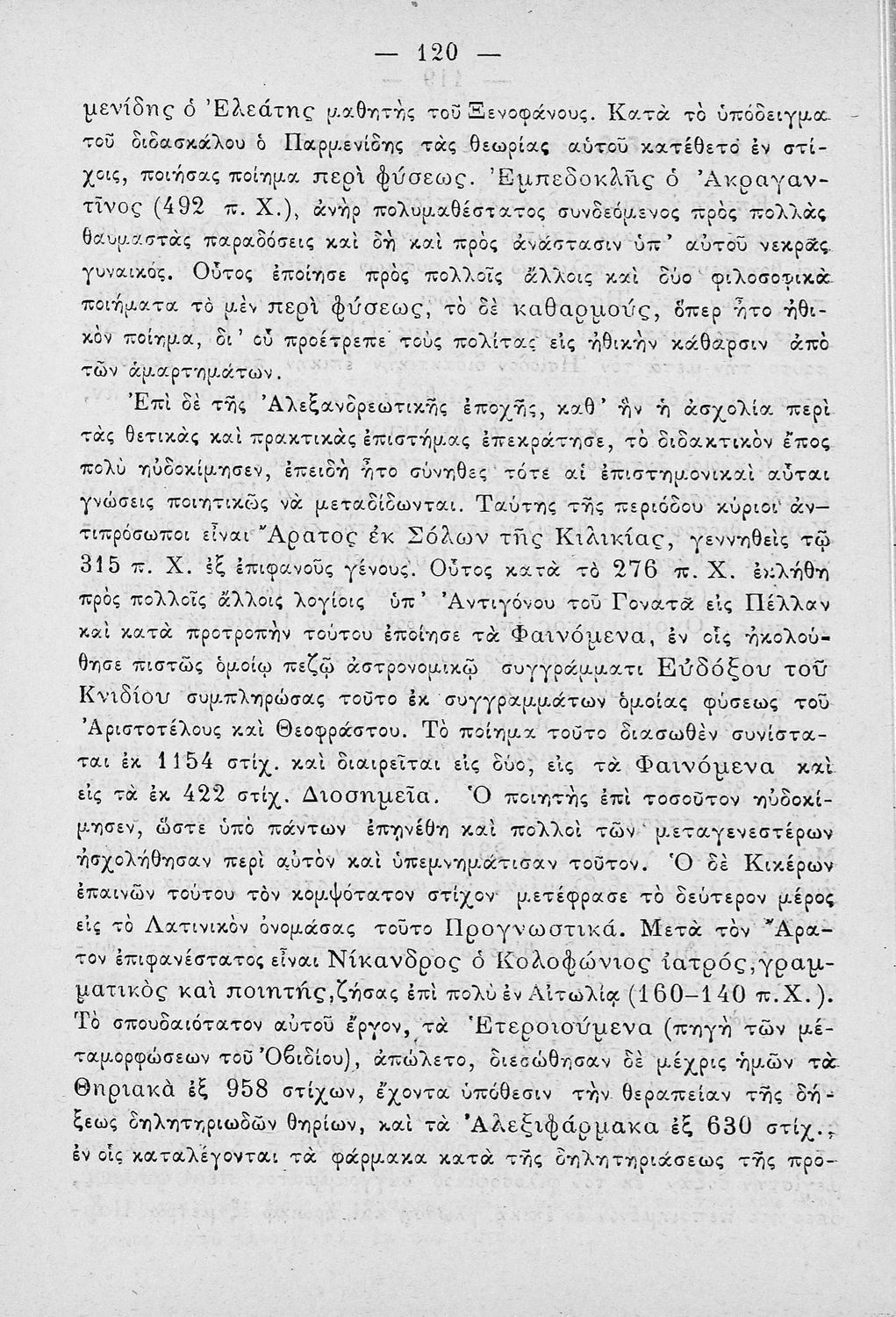 Σχολικό εγχειρίδιο για τις τάξεις του Παρθεναγωγείου και του Γυμνασίου για το μάθημα των Αρχαίων Ελληνικών. Το εγχειρίδιο περιλαμβάνει συνοπτικά την ελληνική γραμματολογία και την εργογραφία του Ηρόδοτου, του Θουκυδίδη, των λογογράφων της Ιωνίας, του Ξενοφώντα, των Αττικών ρητόρων, του Ησίοδου, του Ομήρου, του Σοφοκλή, της Αριστοτελικής, της Ελεατικής φιλοσοφίας κ.α.