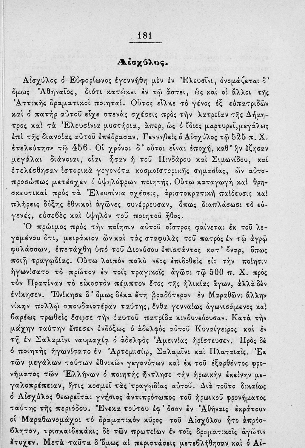 Σχολικό εγχειρίδιο για τις τάξεις του Παρθεναγωγείου και του Γυμνασίου για το μάθημα των Αρχαίων Ελληνικών. Το εγχειρίδιο περιλαμβάνει συνοπτικά την ελληνική γραμματολογία και την εργογραφία του Ηρόδοτου, του Θουκυδίδη, των λογογράφων της Ιωνίας, του Ξενοφώντα, των Αττικών ρητόρων, του Ησίοδου, του Ομήρου, του Σοφοκλή, της Αριστοτελικής, της Ελεατικής φιλοσοφίας κ.α.