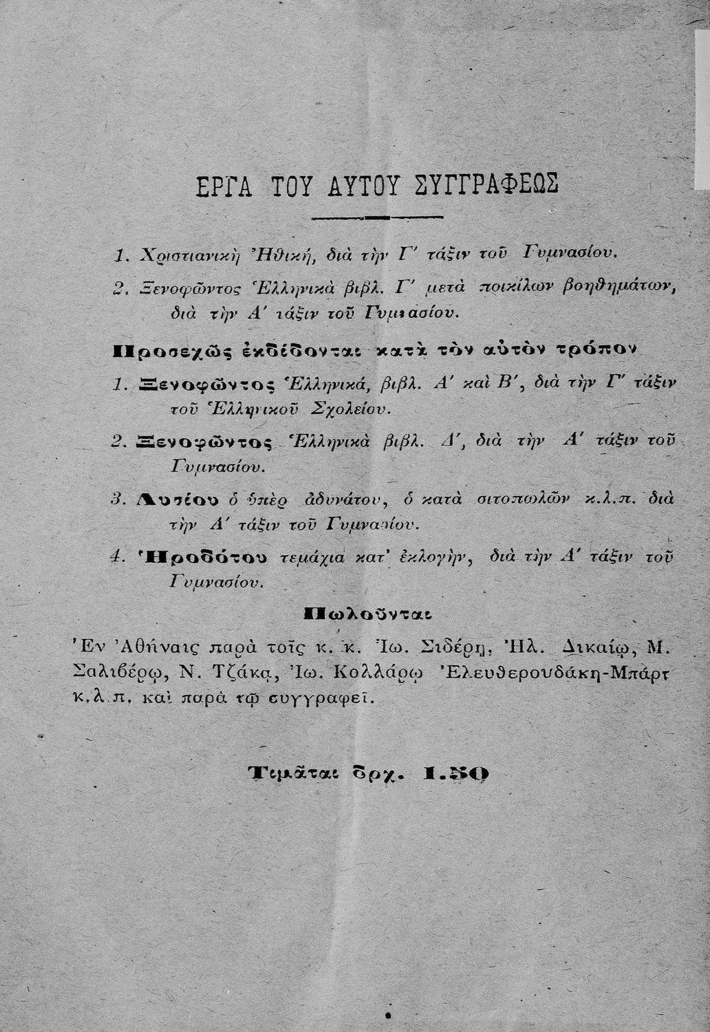 Τίτλος: Λυσίου κατ' εκλογήν ο υπέρ Μαντιθέου και ο περί δημοσίων αδικημάτων μετά ποικίλων βοηθημάτων προς χρήσιν των μαθητών της Α΄ τάξεως του Γυμνασίου κ.λ.π.