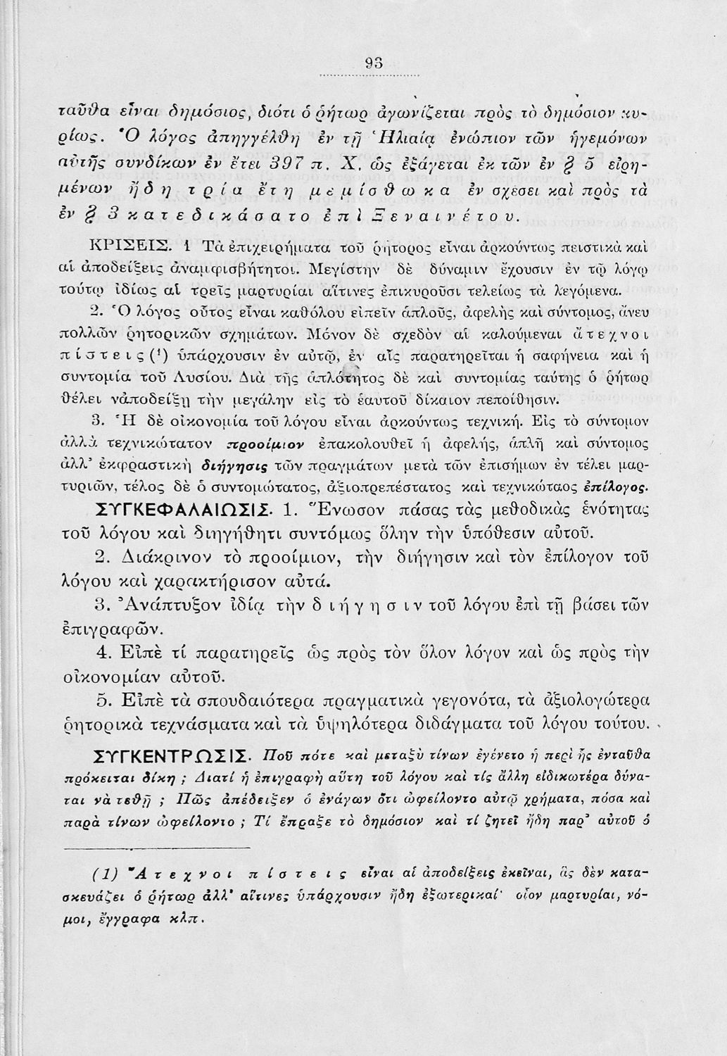 Σχολικό εγχειρίδιο Αρχαίων Ελληνικών Α΄ Γυμνασίου που περιλαμβάνει εισαγωγή στα είδη του ρητορικού λόγου, τους Λόγους του Λυσία Υπέρ Μαντιθέου και Περί δημοσίων αδικημάτων και ερμηνευτικές και πραγματολογικές σημειώσεις.