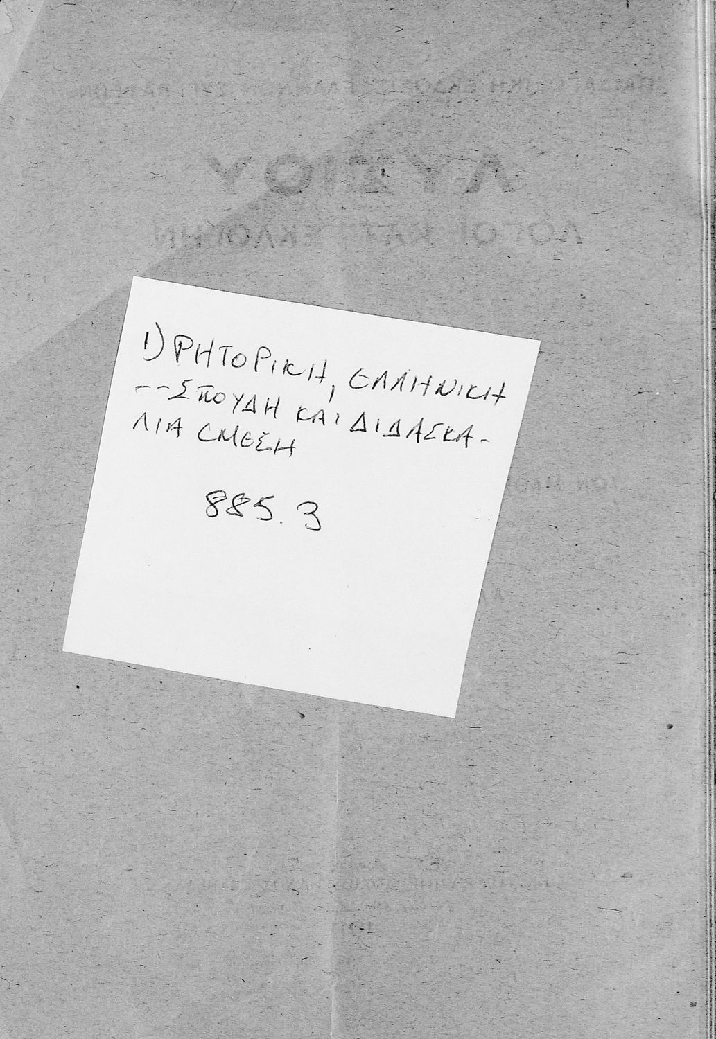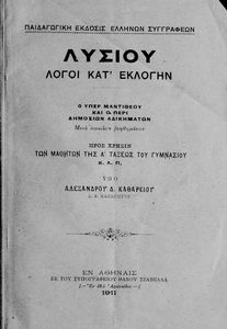 Βαθμίδα εκπαίδευσης: Δευτεροβάθμια Τάξη: Α' Γυμνασίου Μάθημα: Αρχαία Ελληνικά Γλώσσα: Καθαρεύουσα Παρουσίαση περιεχομένου: Σχολικό εγχειρίδιο Αρχαίων Ελληνικών Α΄ Γυμνασίου που περιλαμβάνει εισαγωγή στα είδη του ρητορικού λόγου, τους Λόγους του Λυσία Υπέρ Μαντιθέου και Περί δημοσίων αδικημάτων και ερμηνευτικές και πραγματολογικές σημειώσεις. |