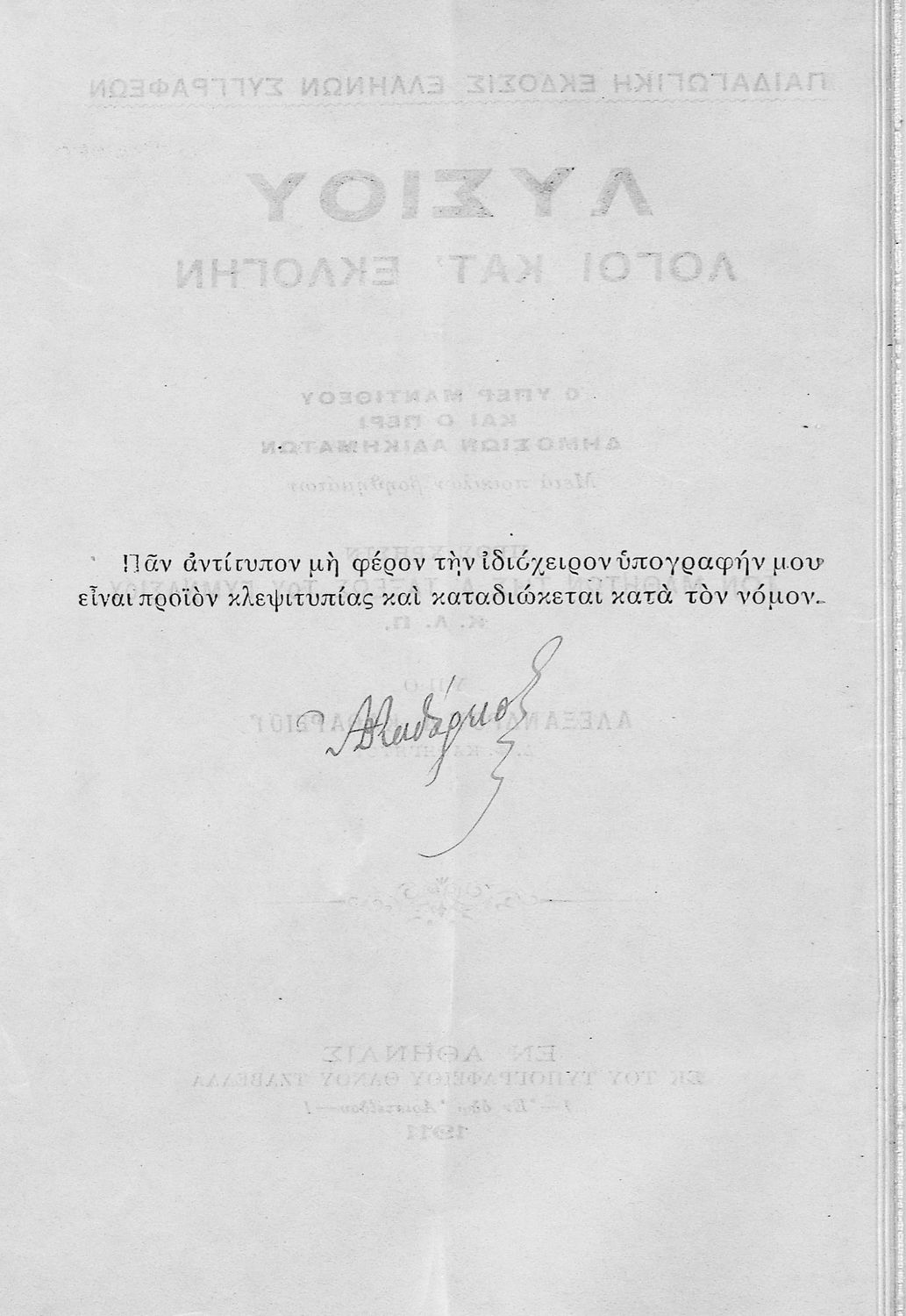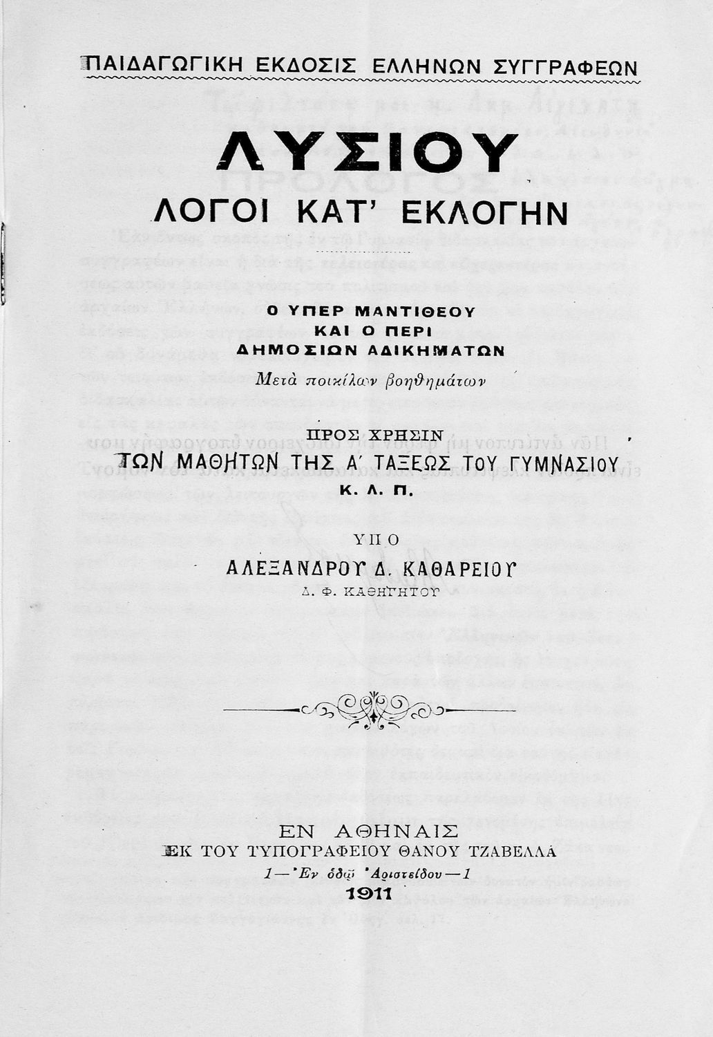 Εκδότης: Θάνος Τζαβέλλας Έτος έκδοσης: 1911 Τόπος έκδοσης: Αθήνα |