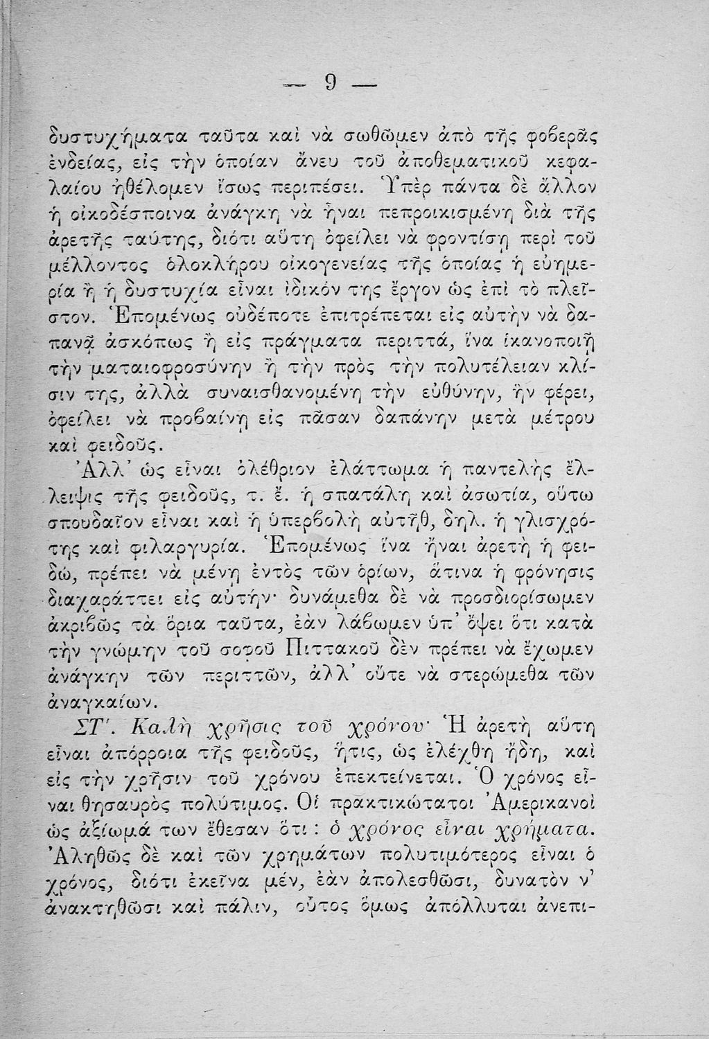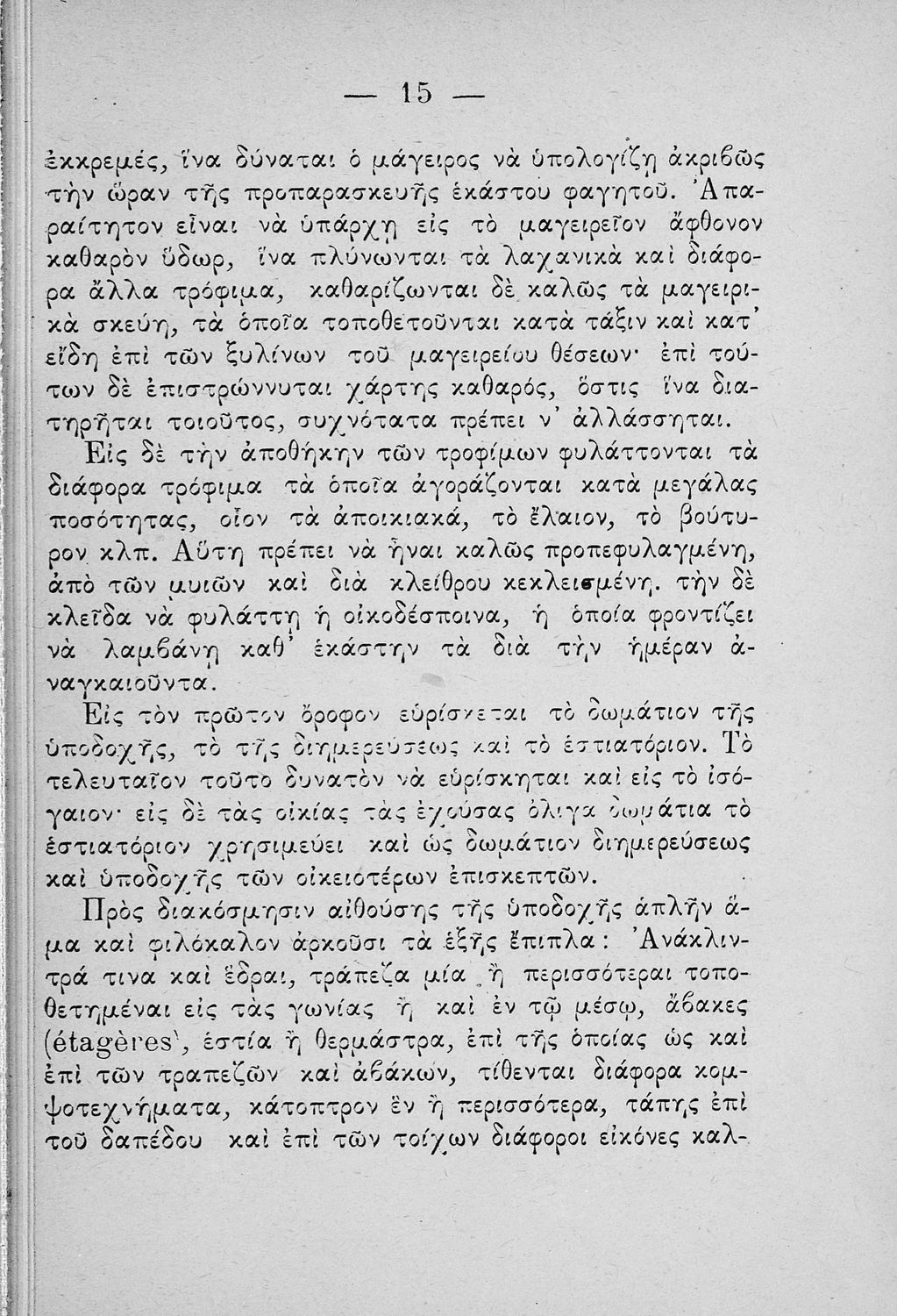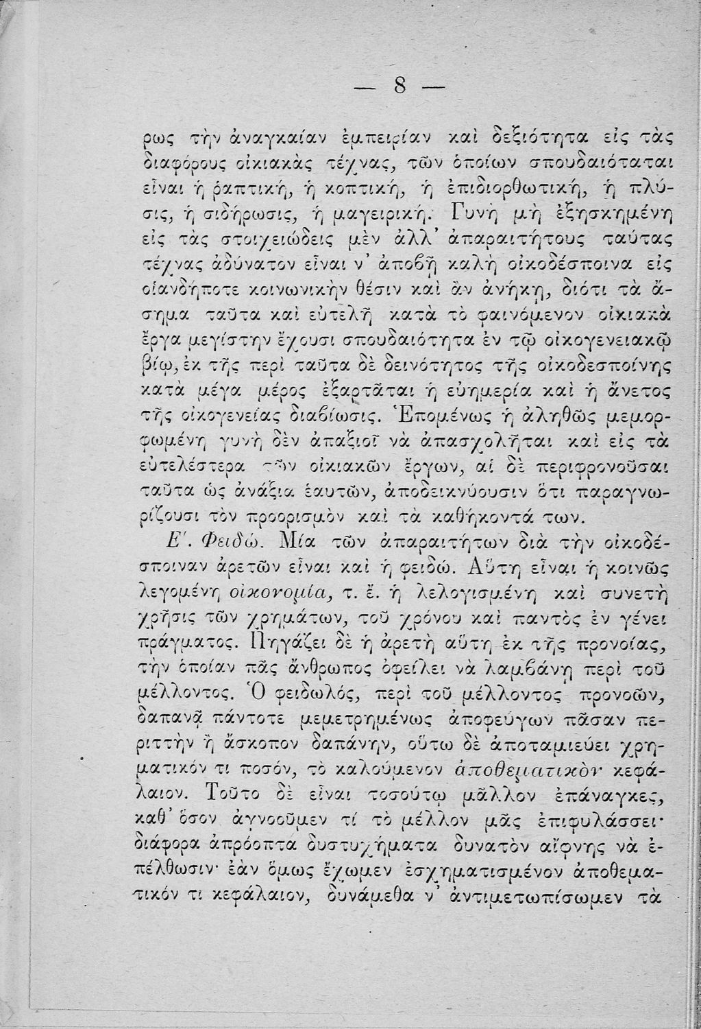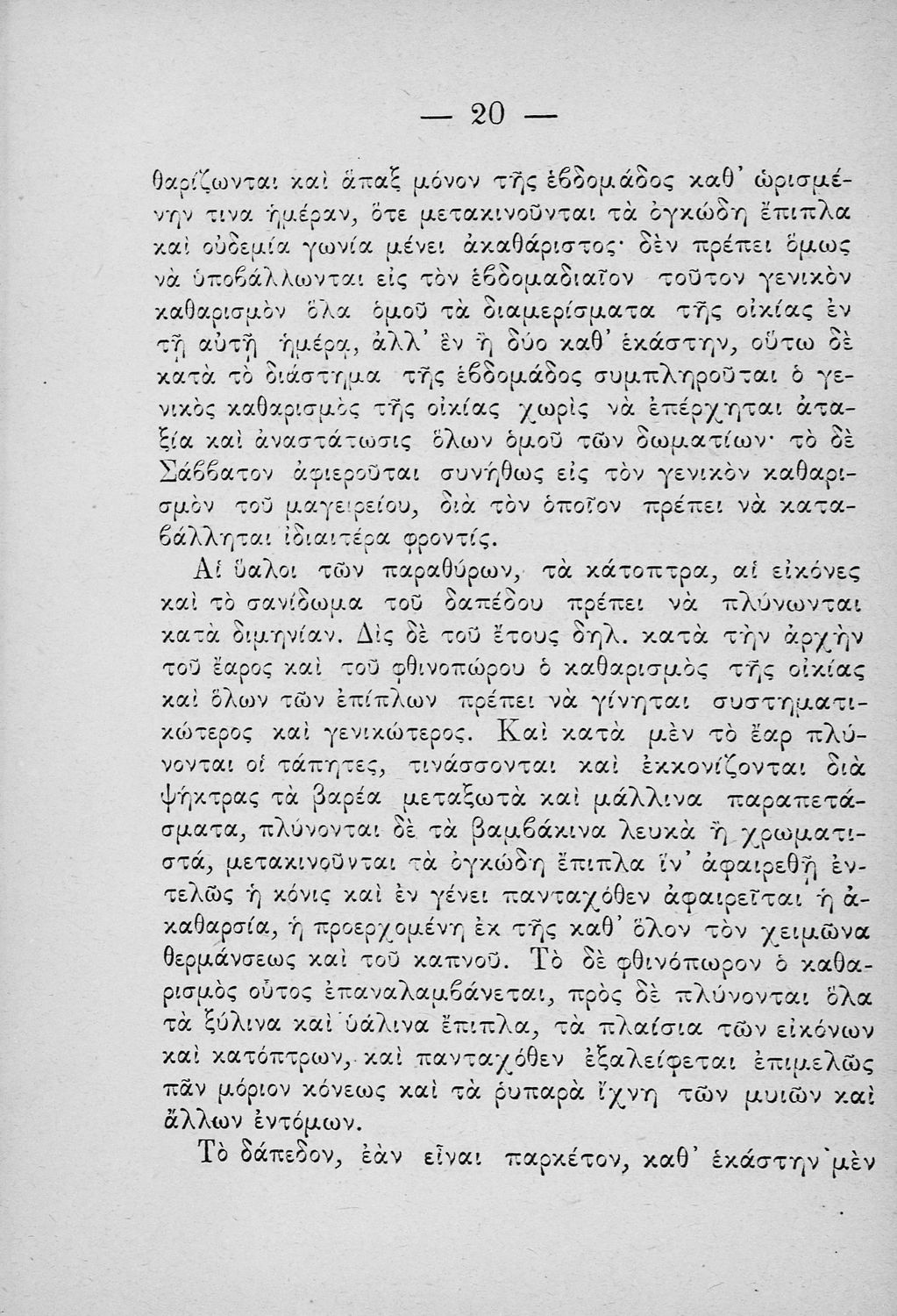 Σχολικό εγχειρίδιο για τις τάξεις του Παρθεναγωγείου για το μάθημα της Οικιακής Οικονομίας. Το εγχειρίδιο περιλαμβάνει τις βασικές γνώσεις οργάνωσης και διοίκησης της κατοικίας, του κανονισμού χρόνου εργασίας των μελών της οικογενείας, της σωστής διατροφής, τους κανόνες καλής συμπεριφοράς και ενδυμασίας, της σωστής υγιεινής, τους καλούς τρόπους συμπεριφοράς της οικοδέσποινας, του προγραμματισμού του σωστού οικογενειακού προϋπολογισμού.