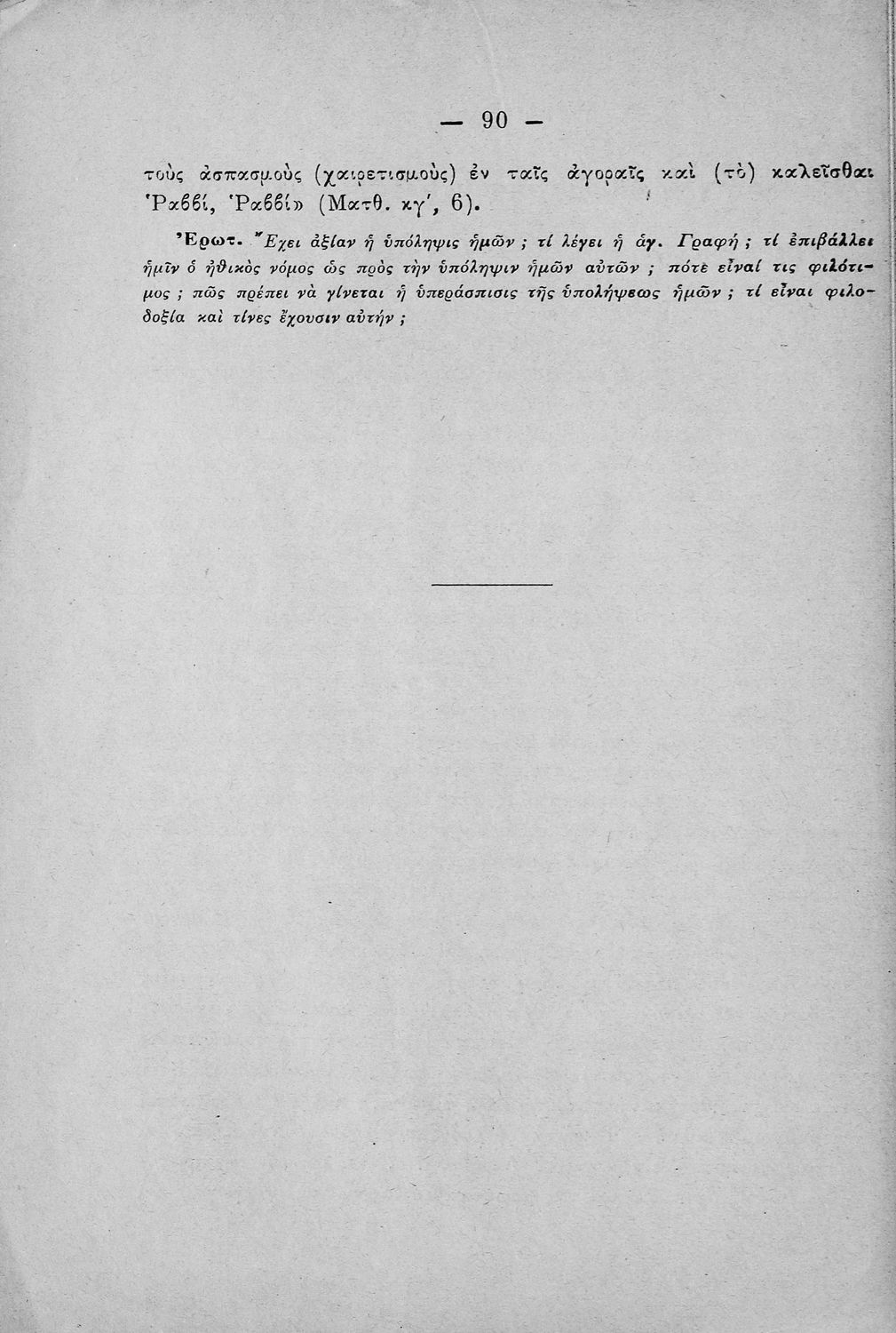 Βαθμίδα εκπαίδευσης: Δευτεροβάθμια Τάξη: Γυμνάσιο / Διδασκαλείο Μάθημα: Θρησκευτικά Γλώσσα: Καθαρεύουσα Παρουσίαση περιεχομένου: Σχολικό εγχειρίδιο Θρησκευτικών για τα Γυμνάσια και τα Διδασκαλεία που εστιάζει στη χριστιανική ηθική και αναλύει τα καθήκοντα του ανθρώπου προς τον Θεό, τους άλλους ανθρώπους και τον εαυτό του. |