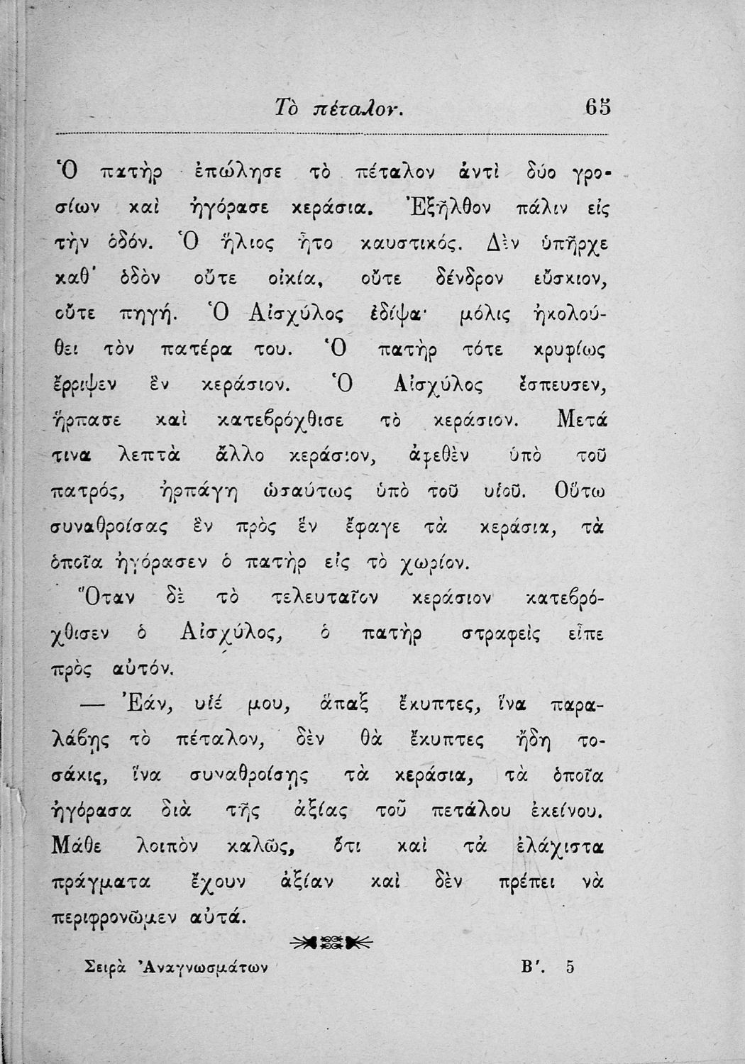Σειρά αναγνωσμάτων έτη σχολικά Α΄, Β΄, Γ΄, Δ΄, Ε΄ μετά προλεγομένων και διδακτικών οδηγιών προς χρήσιν των δημοτικών και αστικών σχολών αμφοτέρων των φύλων μετά εικονογραφιών, έτος σχολικόν δεύτερον