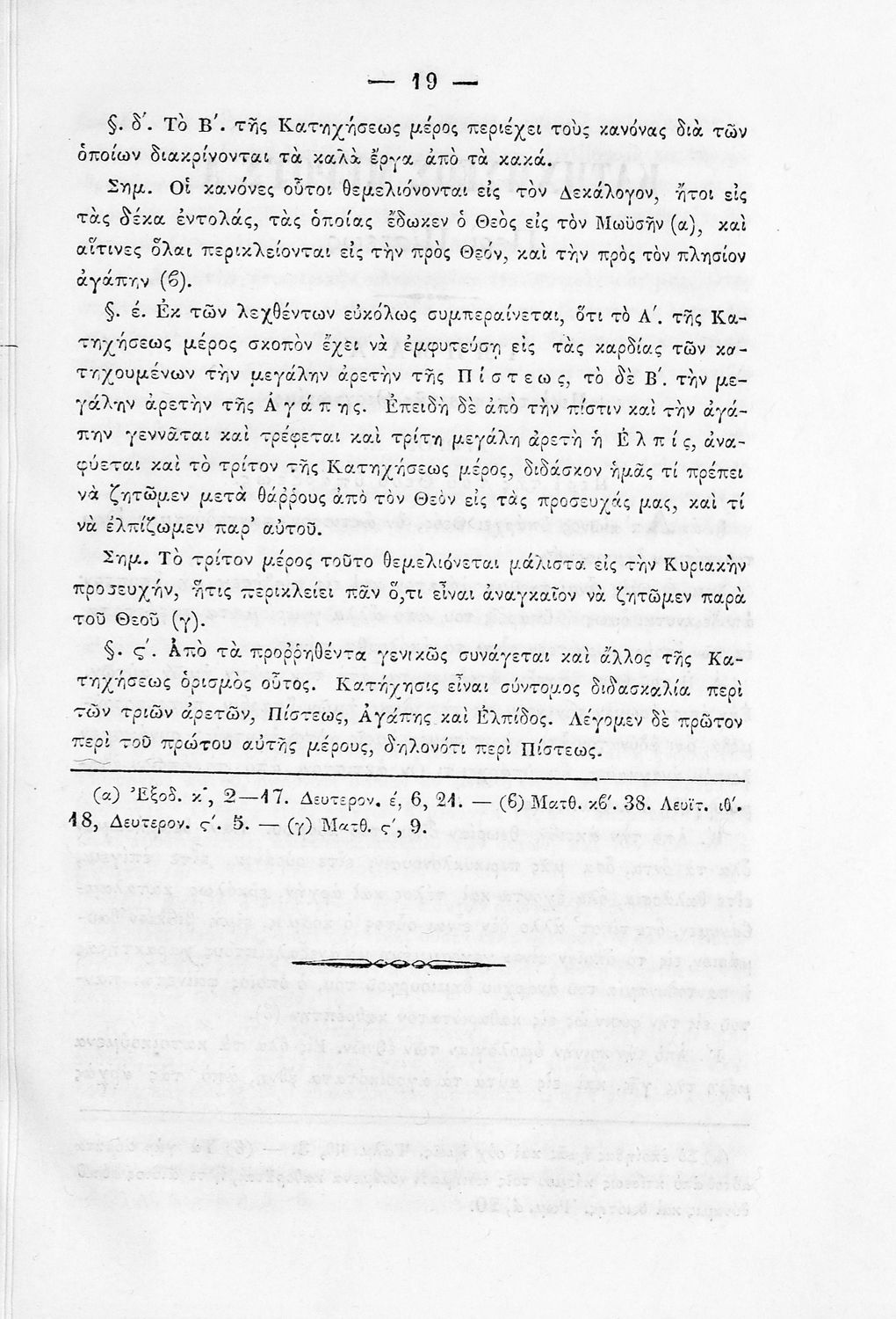 Σχολικό εγχειρίδιο για τις τάξεις του Ελληνικού για το μάθημα των Θρησκευτικών. Το εγχειρίδιο περιλαμβάνει εισαγωγικά τους ορισμούς της κατήχησης, τα ιερά βιβλία της χριστιανικής εκκλησίας, τις δέκα εντολές. Ο