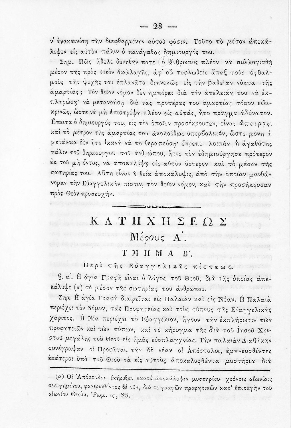 Κατήχησις η ορθόδοξος εκκλησία της χριστιανικής πίστεως εις χρήσιν του της Σμύρνης φιλολογικού γυμνασίου τω 1813 μετατυπωθείσα δε το δεύτερον εις χρήσιν των απανταχού ορθοδόξων