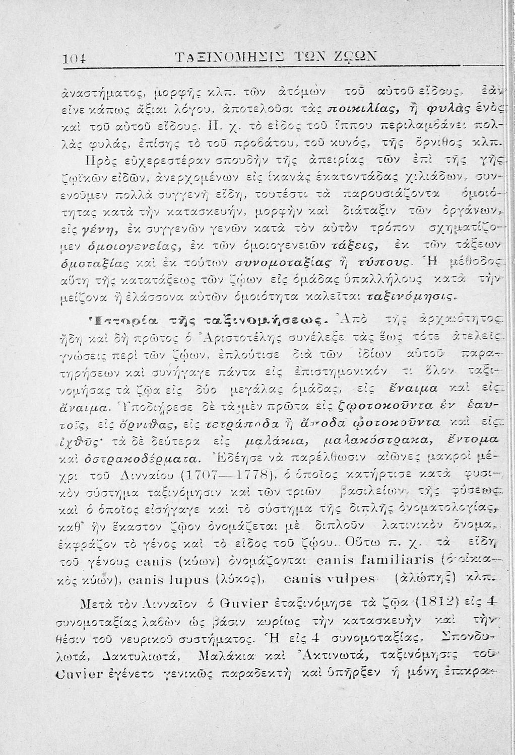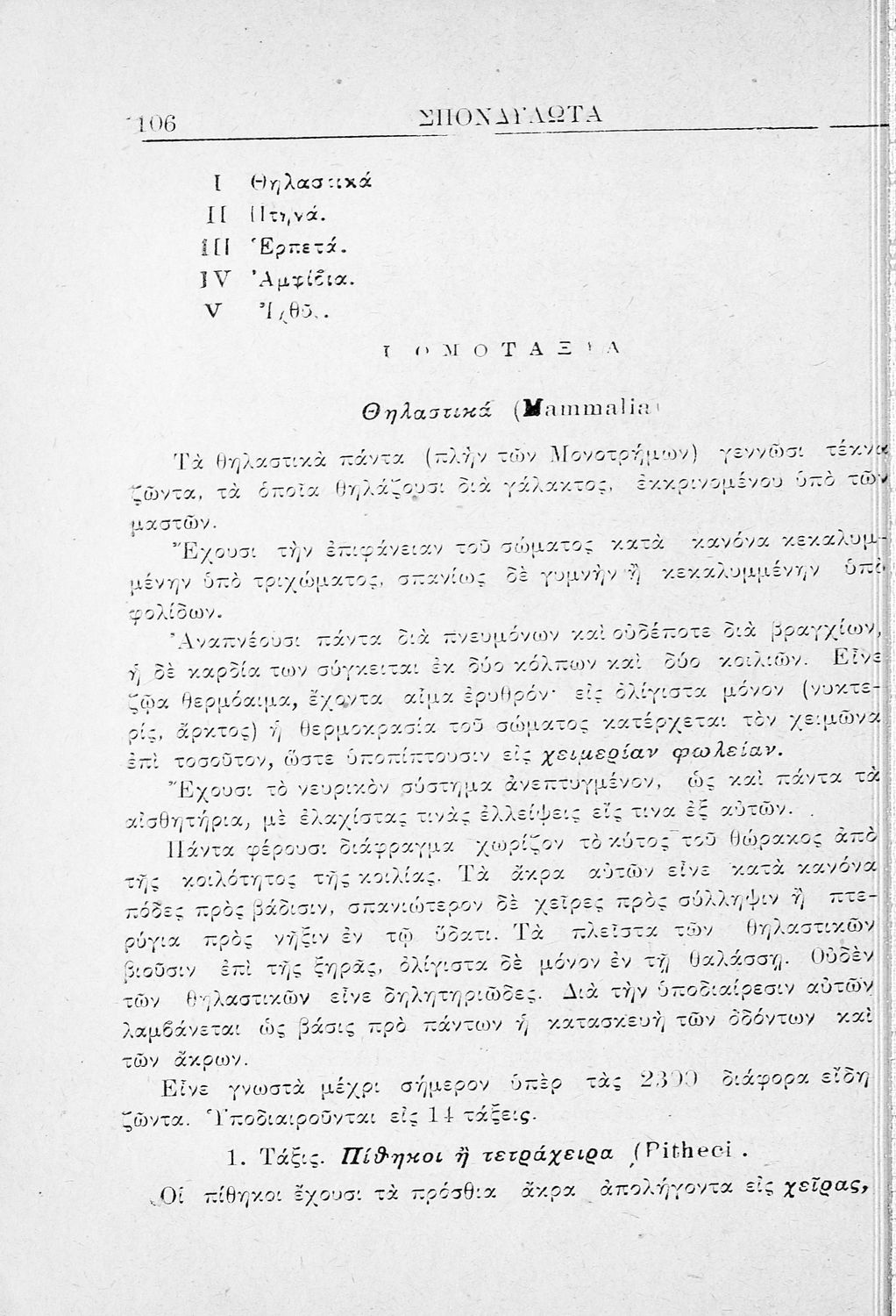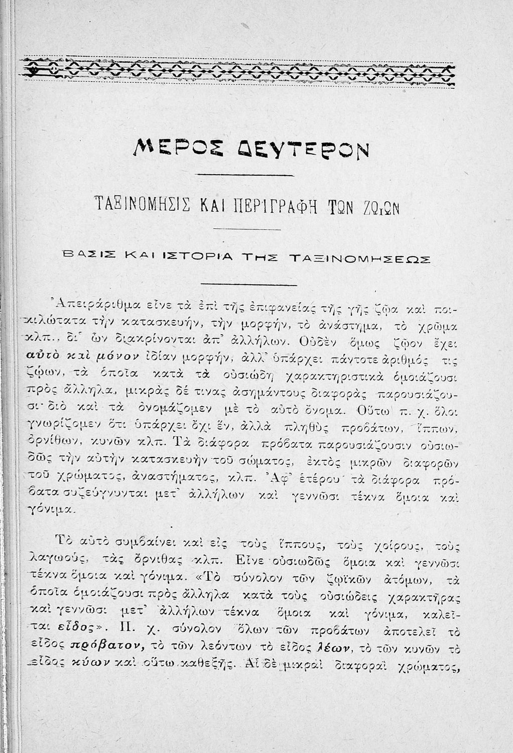 Σχολικό εγχειρίδιο Ζωολογίας για τα Γυμνάσια, τα Παρθεναγωγεία και τα Διδασκαλεία που εστιάζει στην ανθρώπινη φυσιολογία και παρουσιάζει τα διάφορα ζώα ανάλογα με την συνομοταξία στην οποία ανήκουν.