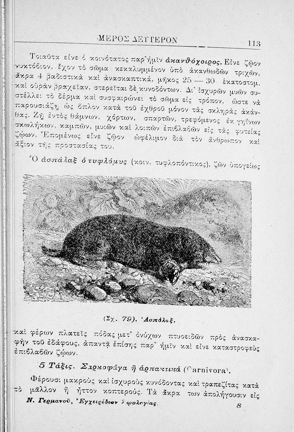 Σχολικό εγχειρίδιο Ζωολογίας των Γυμνασίων, Διδασκαλείων και Παρθεναγωγείων. Στο πρώτο μέρος του βιβλίου γίνεται μια συνοπτική παρουσίαση της δομής του ανθρώπινου σώματος και των διαφόρων συστημάτων του ...