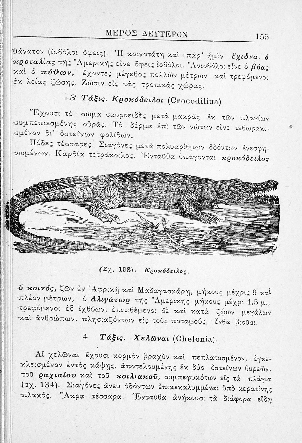 Σχολικό εγχειρίδιο Ζωολογίας για τα Γυμνάσια, τα Παρθεναγωγεία και τα Διδασκαλεία που εστιάζει στην ανθρώπινη φυσιολογία και παρουσιάζει τα διάφορα ζώα ανάλογα με την συνομοταξία στην οποία ανήκουν.