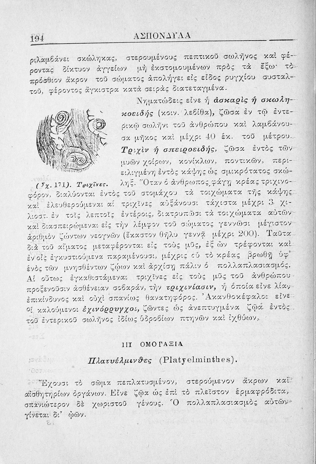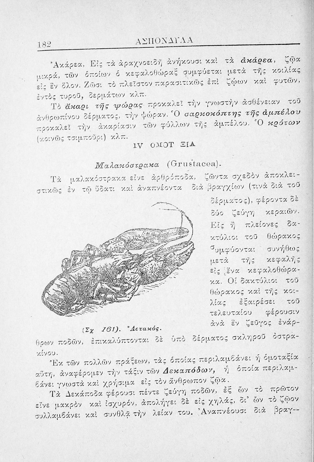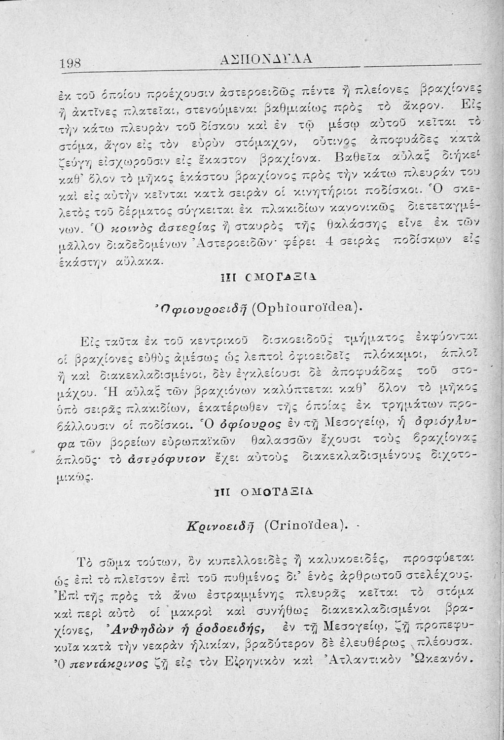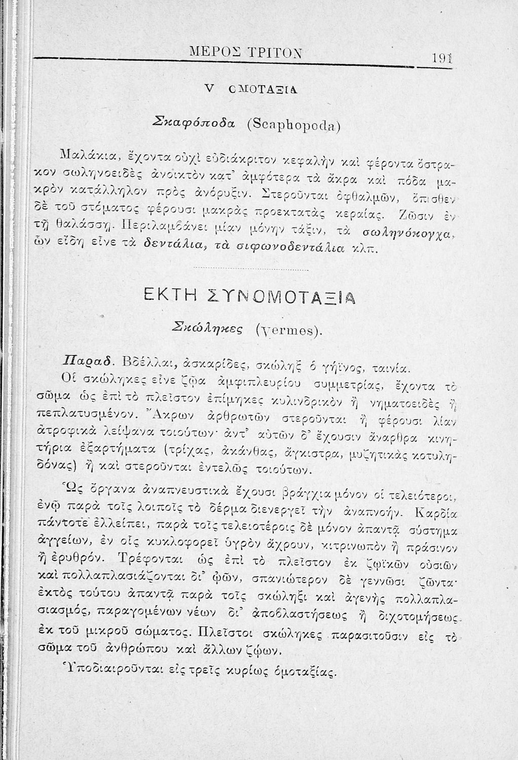 Σχολικό εγχειρίδιο Ζωολογίας για τα Γυμνάσια, τα Παρθεναγωγεία και τα Διδασκαλεία που εστιάζει στην ανθρώπινη φυσιολογία και παρουσιάζει τα διάφορα ζώα ανάλογα με την συνομοταξία στην οποία ανήκουν.