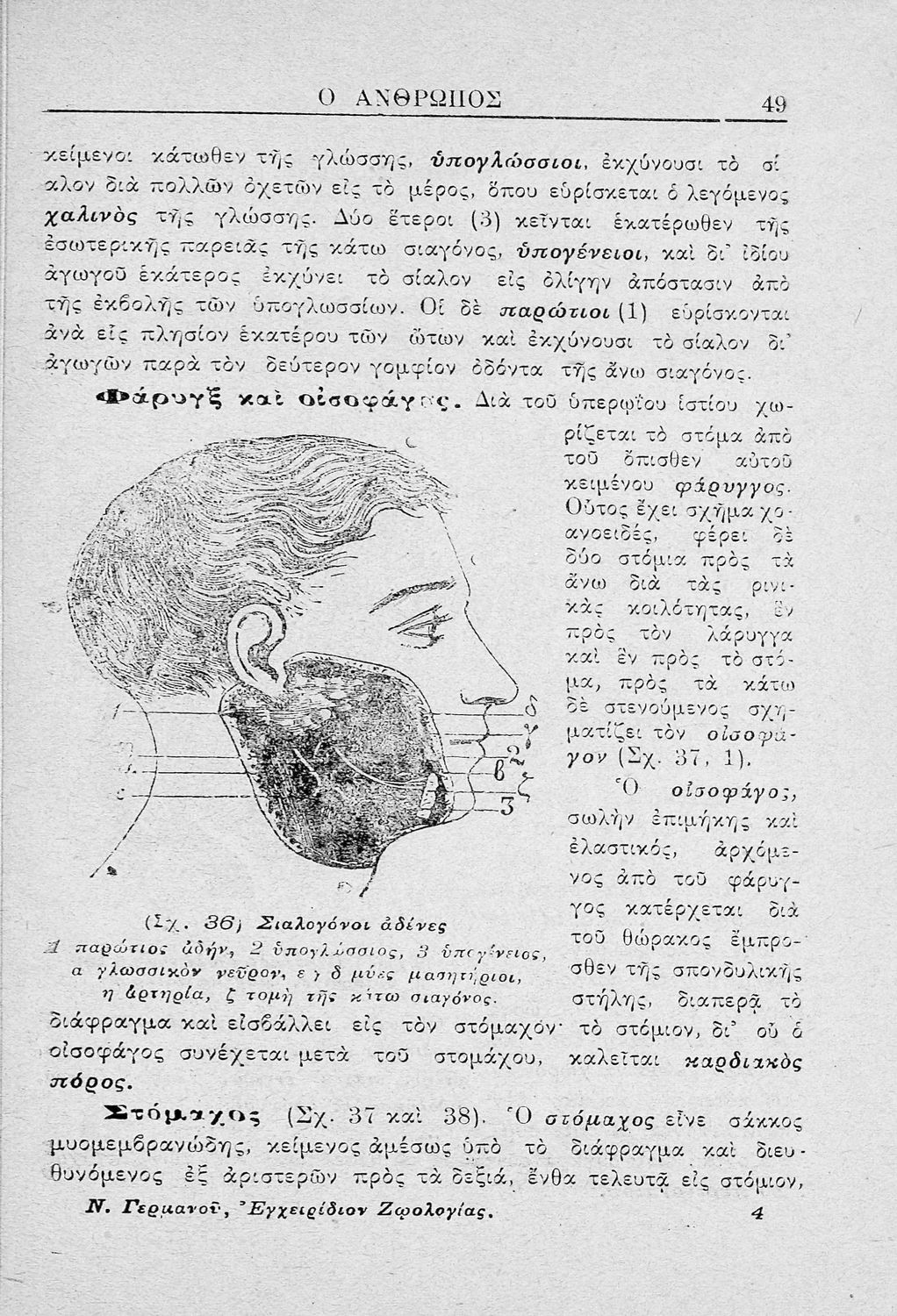 Σχολικό εγχειρίδιο Ζωολογίας των Γυμνασίων, Διδασκαλείων και Παρθεναγωγείων. Στο πρώτο μέρος του βιβλίου γίνεται μια συνοπτική παρουσίαση της δομής του ανθρώπινου σώματος και των διαφόρων συστημάτων του ...