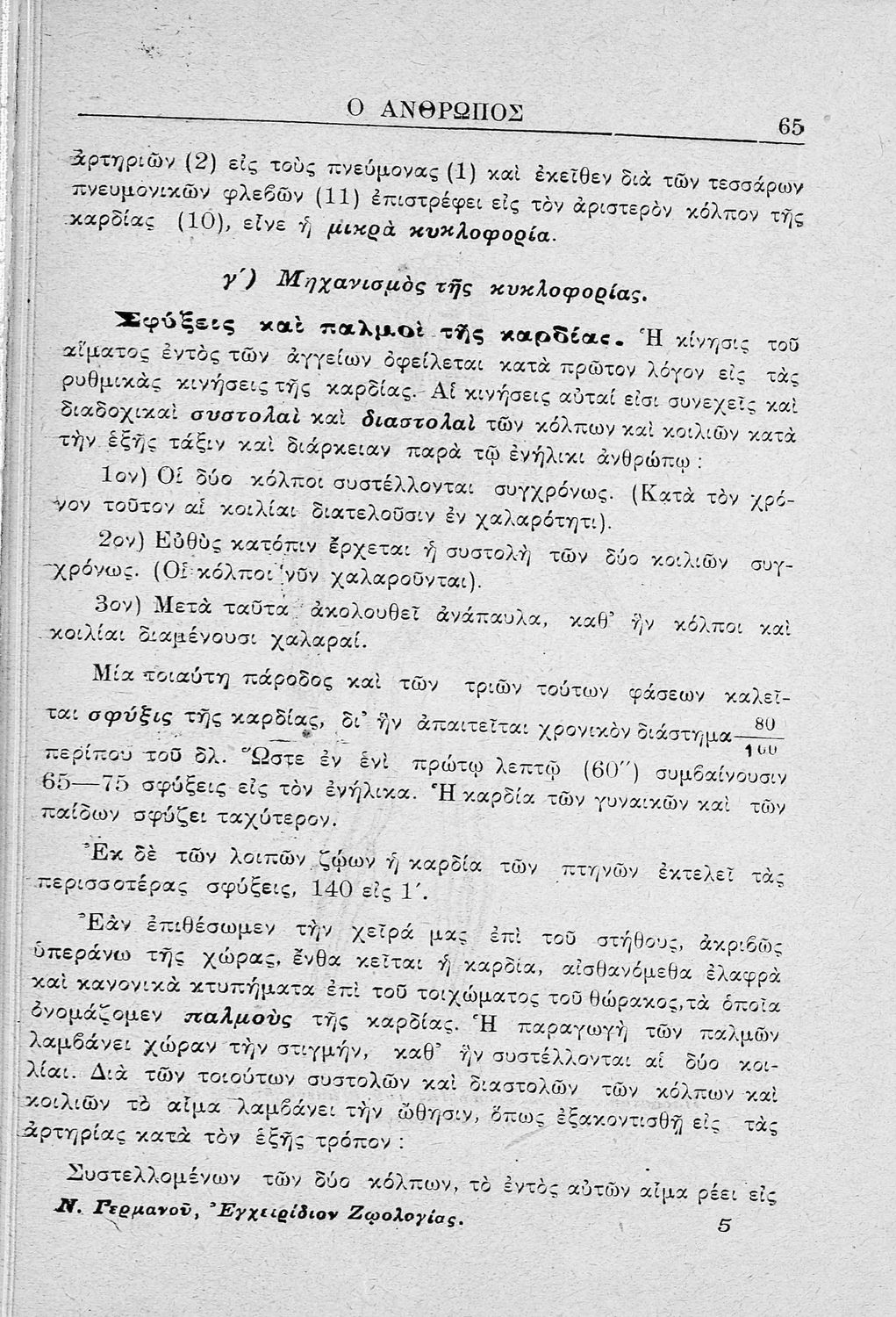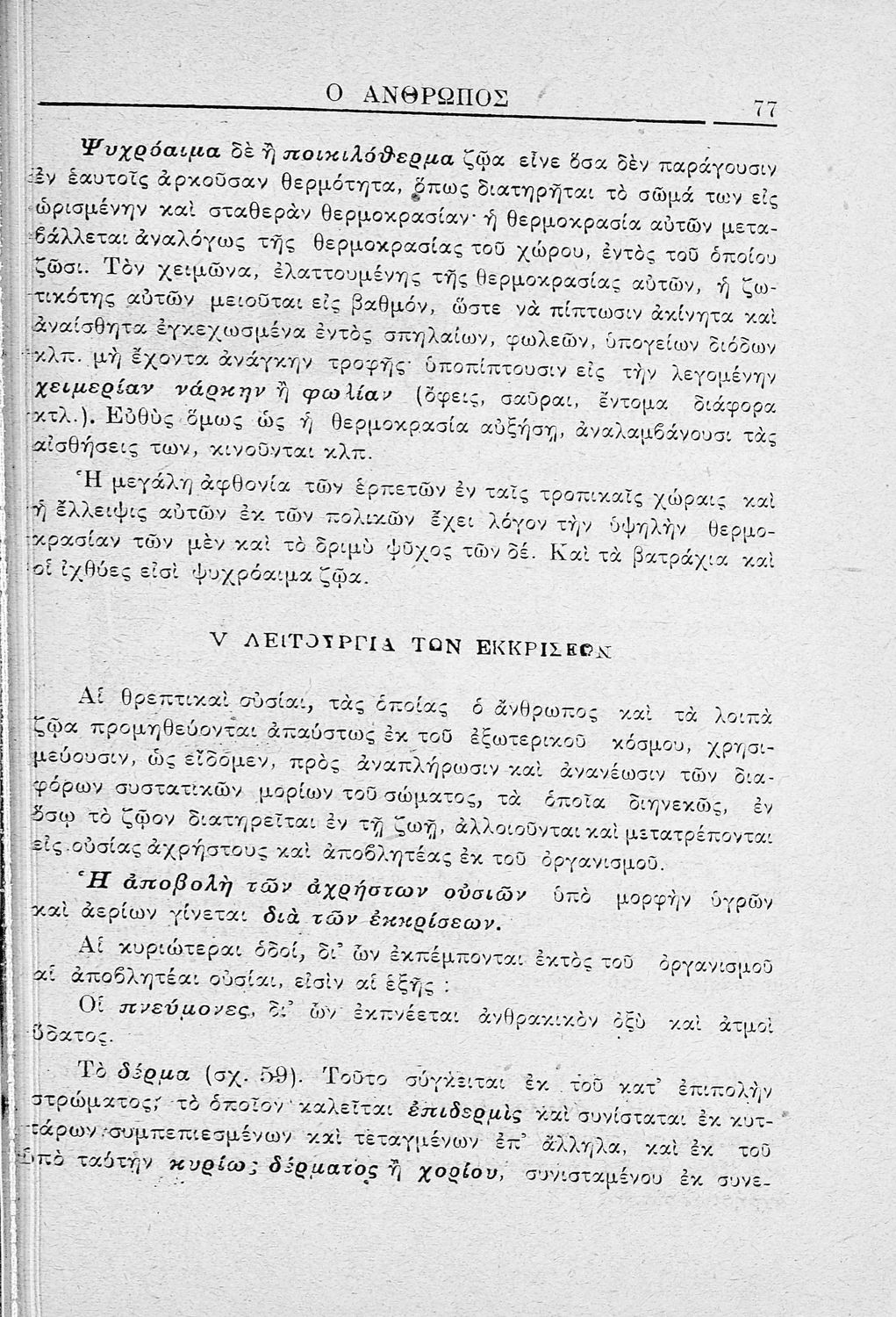 Σχολικό εγχειρίδιο Ζωολογίας των Γυμνασίων, Διδασκαλείων και Παρθεναγωγείων. Στο πρώτο μέρος του βιβλίου γίνεται μια συνοπτική παρουσίαση της δομής του ανθρώπινου σώματος και των διαφόρων συστημάτων του ...