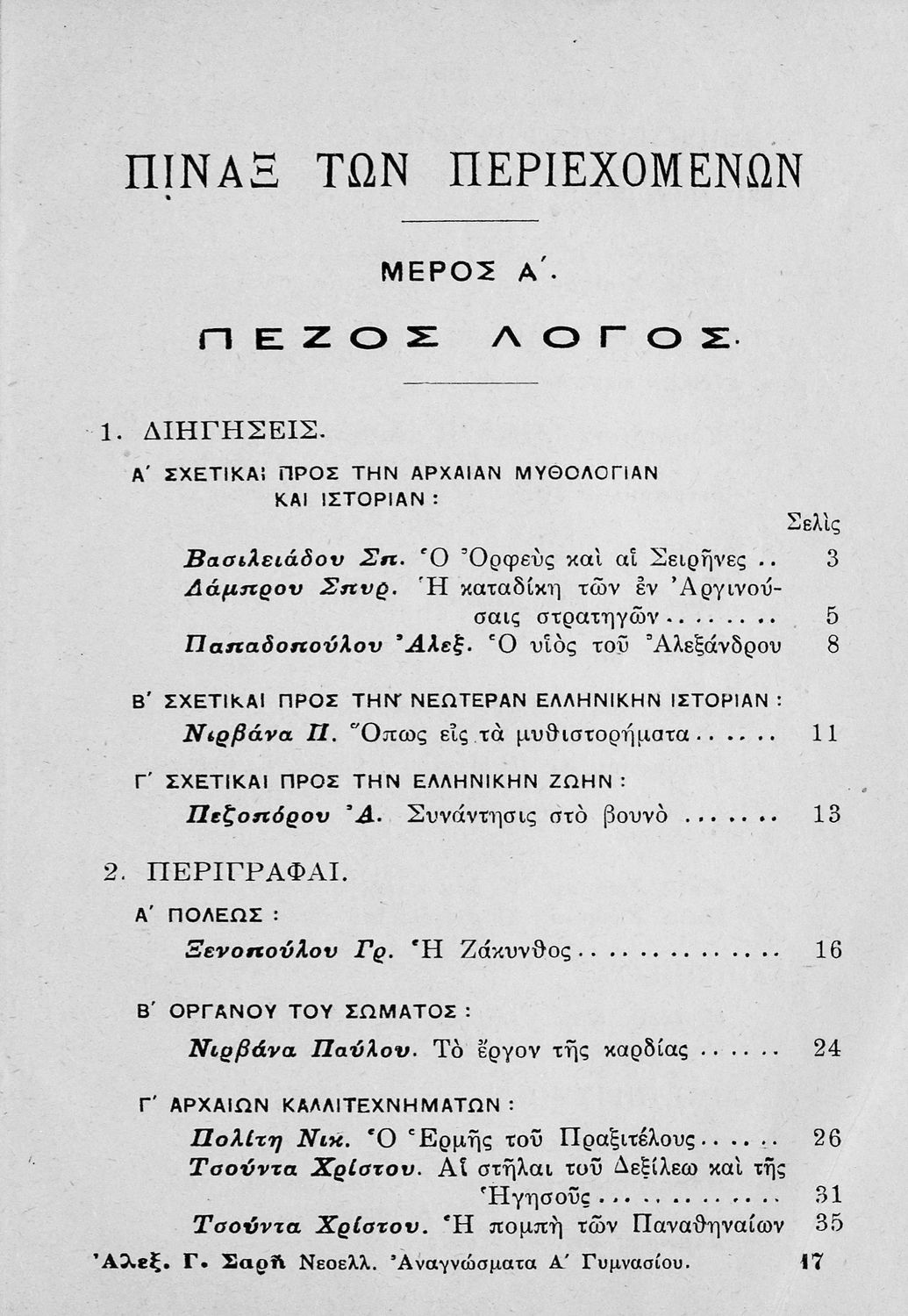Νεοελληνικά αναγνώσματα διά τους μαθητάς της Α΄ τάξεως των Τετραταξίων Γυμνασίων και της αντιστοίχου τάξεως των λοιπών σχολείων της Μέσης Εκπαιδεύσεως μετ' εικόνων και των προσωπογραφίων των συγγραφέων