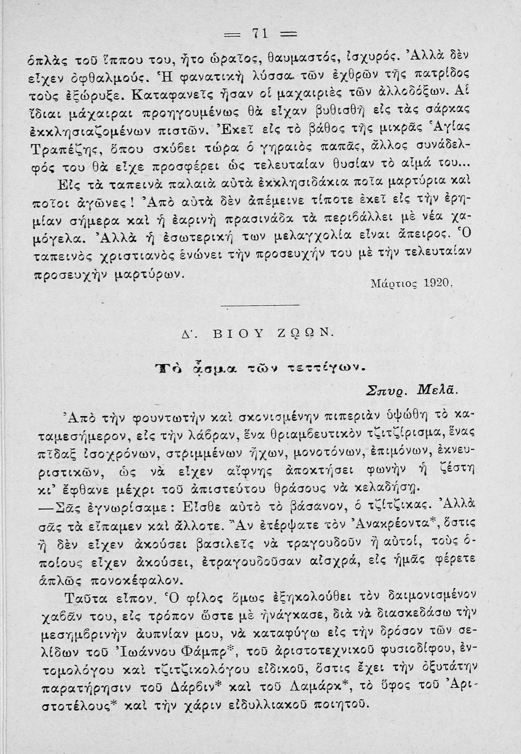 Σχολικό εγχειρίδιο για την Β΄ Γυμνασίου και την Γ΄ Αστικού Θηλέων για το μάθημα των Νέων Ελληνικών. Το εγχειρίδιο αποτελείται από κείμενα πεζού λόγου, επικολυρικά ποιήματα, ωδές, ηθογραφικά διηγήματα, ρητορικά