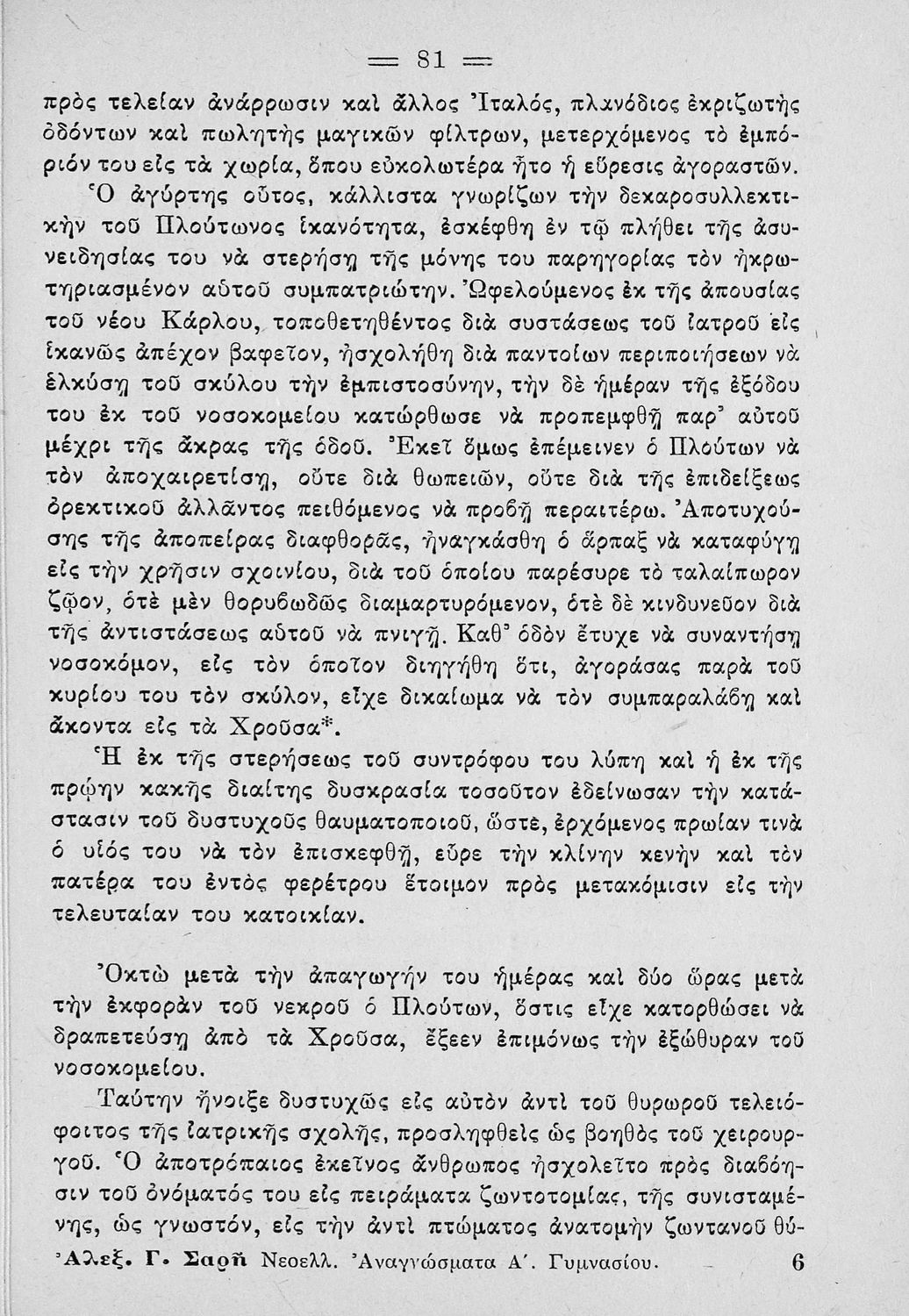 Νεοελληνικά αναγνώσματα διά τους μαθητάς της Α΄ τάξεως των Τετραταξίων Γυμνασίων και της αντιστοίχου τάξεως των λοιπών σχολείων της Μέσης Εκπαιδεύσεως μετ' εικόνων και των προσωπογραφίων των συγγραφέων