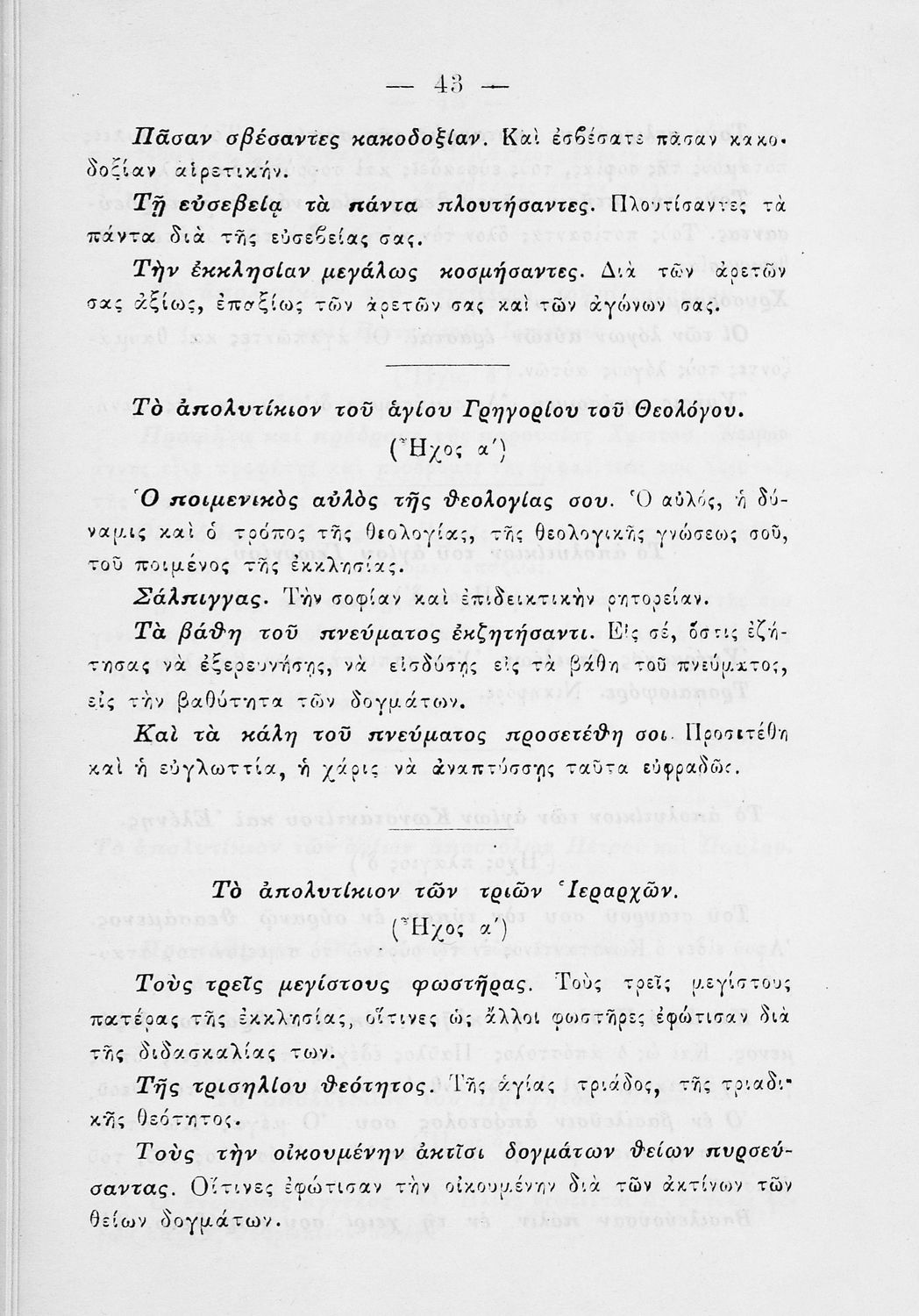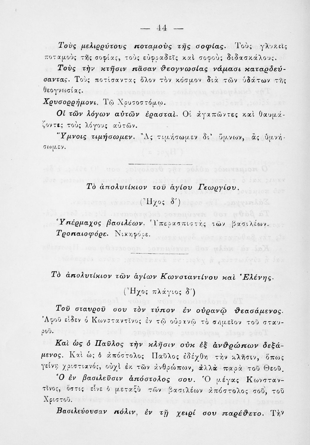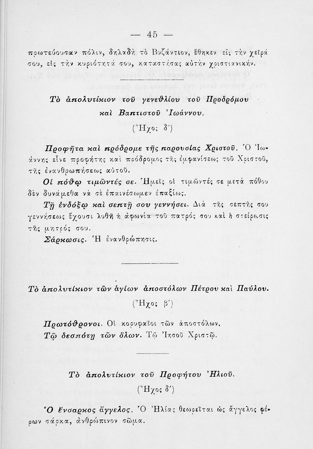 Απολυτίκια των θεομητορικών εορτών και των εορτών των Αγίων προς χρήσιν των μαθητών της πρώτης τάξεως του Ελληνικού Σχολείου κατά το νέο πρόγραμμα του υπουργείου