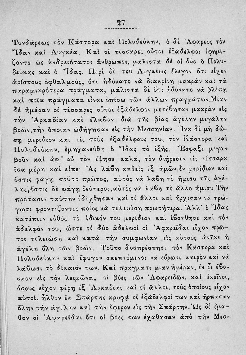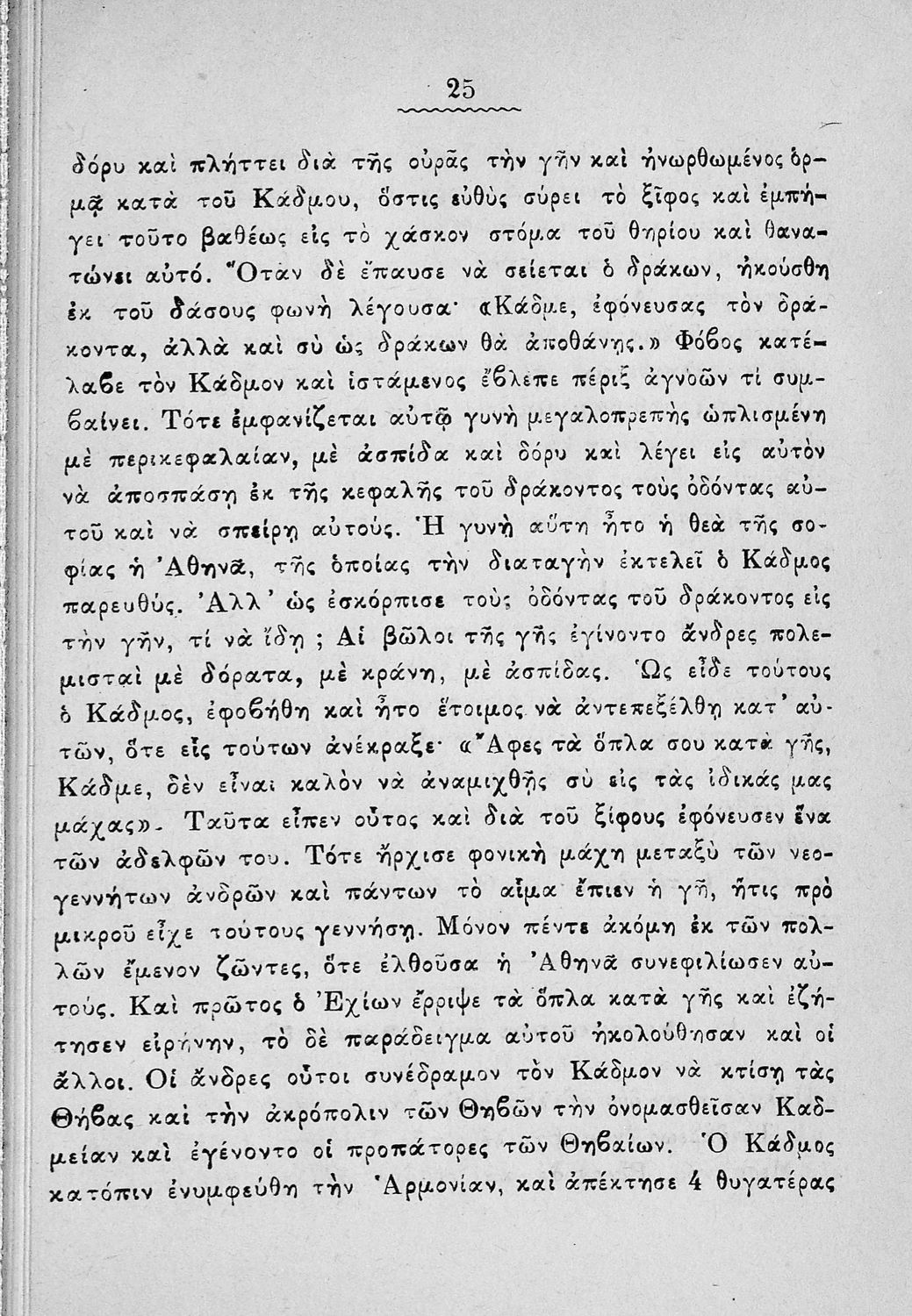 Βαθμίδα εκπαίδευσης: Πρωτοβάθμια Μάθημα: Ιστορία Γλώσσα: Καθαρεύουσα Παρουσίαση περιεχομένου: Σχολικό εγχειρίδιο Ιστορίας Δημοτικού που καλύπτει την περίοδο από τους μυθικούς χρόνους, μέχρι τους Περσικούς Πολέμους. |