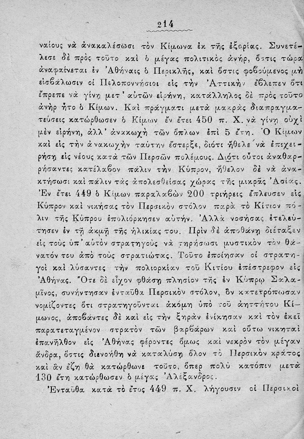 Βαθμίδα εκπαίδευσης: Πρωτοβάθμια Μάθημα: Ιστορία Γλώσσα: Καθαρεύουσα Παρουσίαση περιεχομένου: Σχολικό εγχειρίδιο Ιστορίας Δημοτικού που καλύπτει την περίοδο από τους μυθικούς χρόνους, μέχρι τους Περσικούς Πολέμους. |