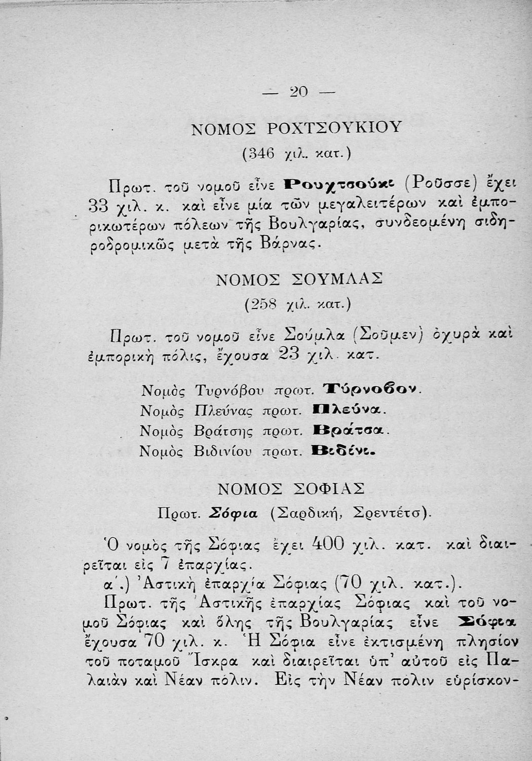 Μάθημα: Γεωγραφία Γλώσσα: Καθαρεύουσα Παρουσίαση περιεχομένου: Σχολικό εγχειρίδιο Γεωγραφίας για τα ελληνικά εκπαιδευτήρια στην Βουλγαρία που περιλαμβάνει εισαγωγή στη φυσική και πολιτική γεωγραφία και εξετάζει την Ανατολική Ρωμυλία, τη Βόρεια Βουλγαρία, τη Ρουμανία, τη Σερβία, το Μαυροβούνιο, τη Ευρωπαϊκή και Ασιατική Τουρκία και την Ελλάδα από γεωφυσική, πολιτική και οικονομική άποψη. |