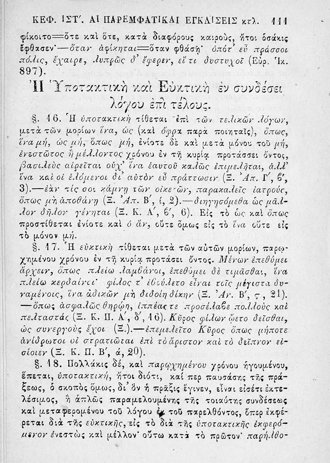 Σχολικό εγχειρίδιο για τις τάξεις του Ελληνικού και του Γυμνασίου για το μάθημα των Αρχαίων Ελληνικών και συγκεκριμένα του συντακτικού της ελληνικής γλώσσας. Το εγχειρίδιο περιλαμβάνει τους βασικούς κανόνες συντακτικού και διακρίνονται η κύρια και η υποτακτική σύνταξη, τα μέρη του λόγου και οι σύνδεσμοι, τα συντακτικά σχήματα και ιδιώματα.
