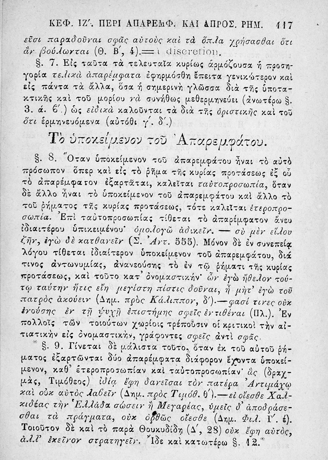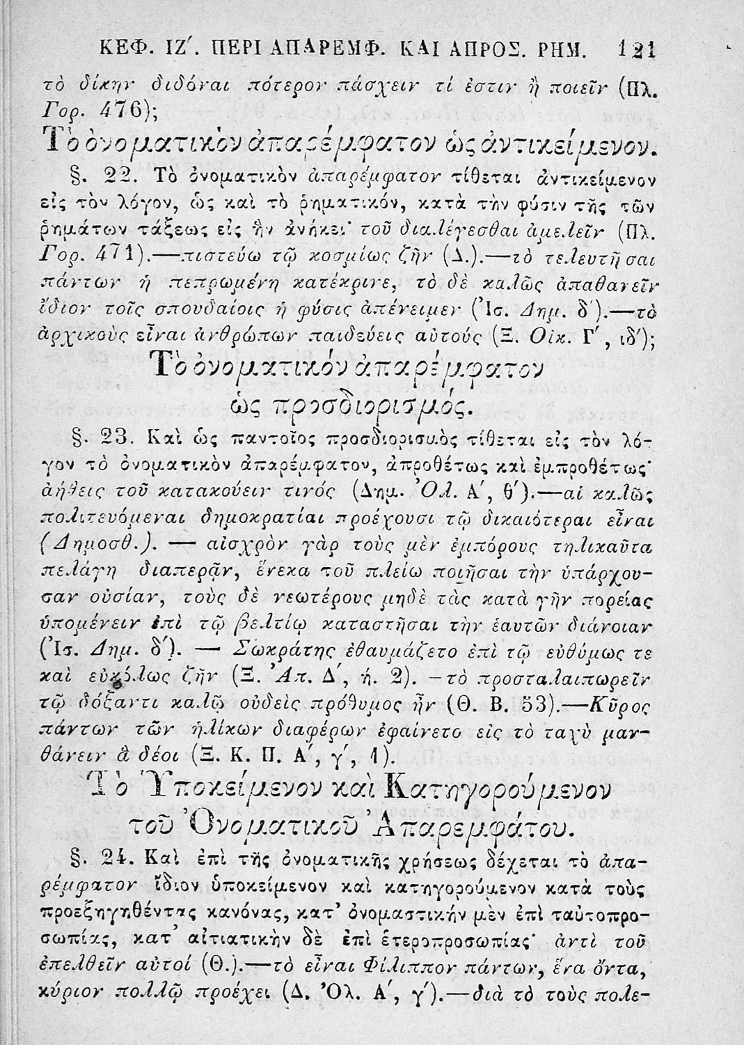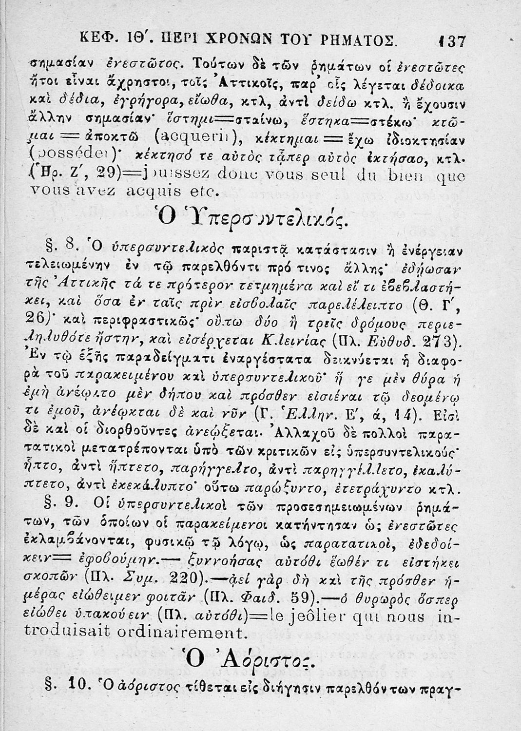 520 ## _aΣχολικό εγχειρίδιο για τις τάξεις του Ελληνικού και του Γυμνασίου για το μάθημα των Αρχαίων Ελληνικών και συγκεκριμένα του συντακτικού της ελληνικής γλώσσας. Το εγχειρίδιο περιλαμβάνει τους βασικούς κανόνες συντακτικού και διακρίνονται η κύρια και η υποτακτική σύνταξη, τα μέρη του λόγου και οι σύνδεσμοι, τα συντακτικά σχήματα και ιδιώματα.