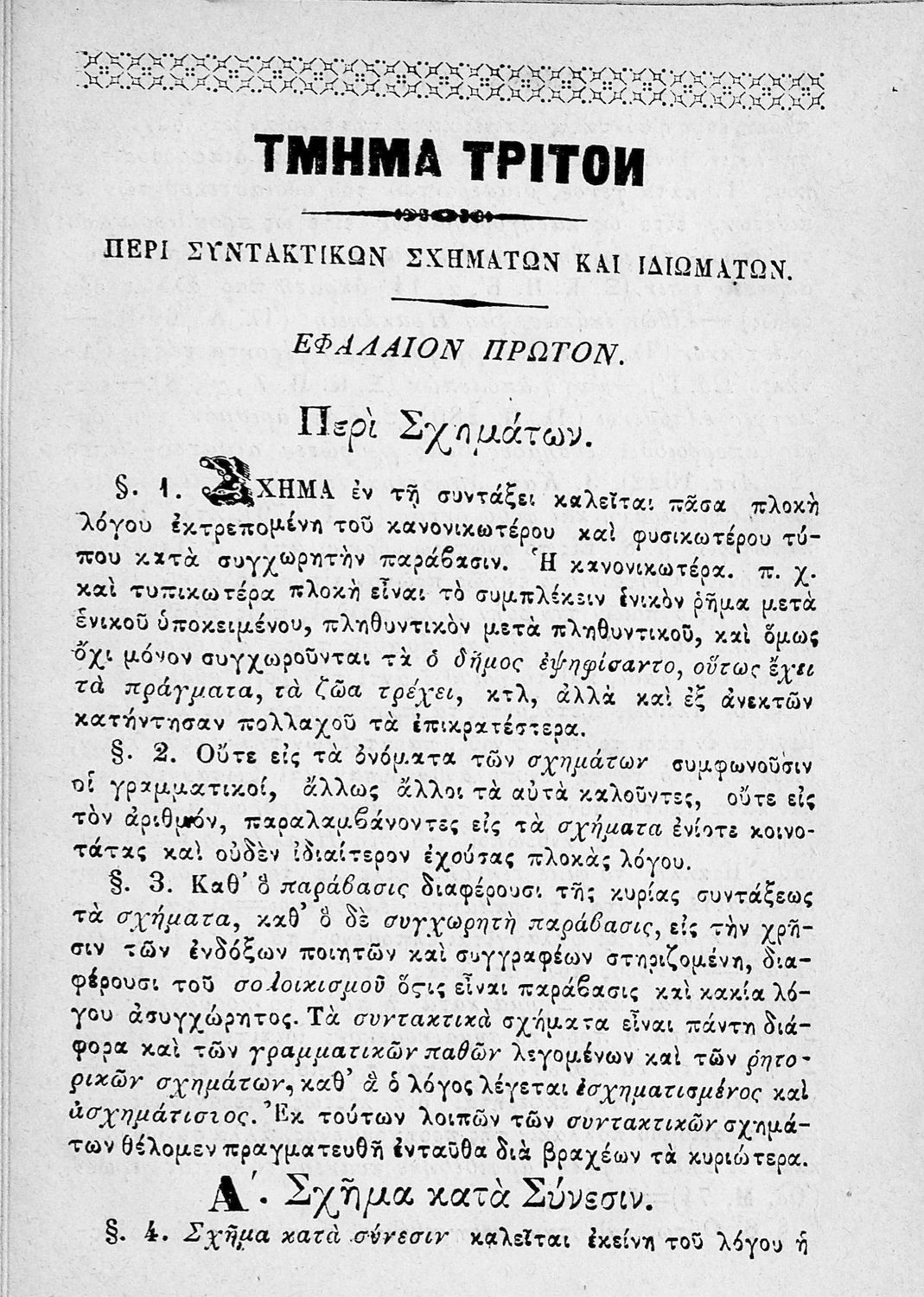 Περί ελληνικής συντάξεως προς χρήσιν των Ελληνικών Σχολείων και Γυμνασίων, περίοδος πρώτη