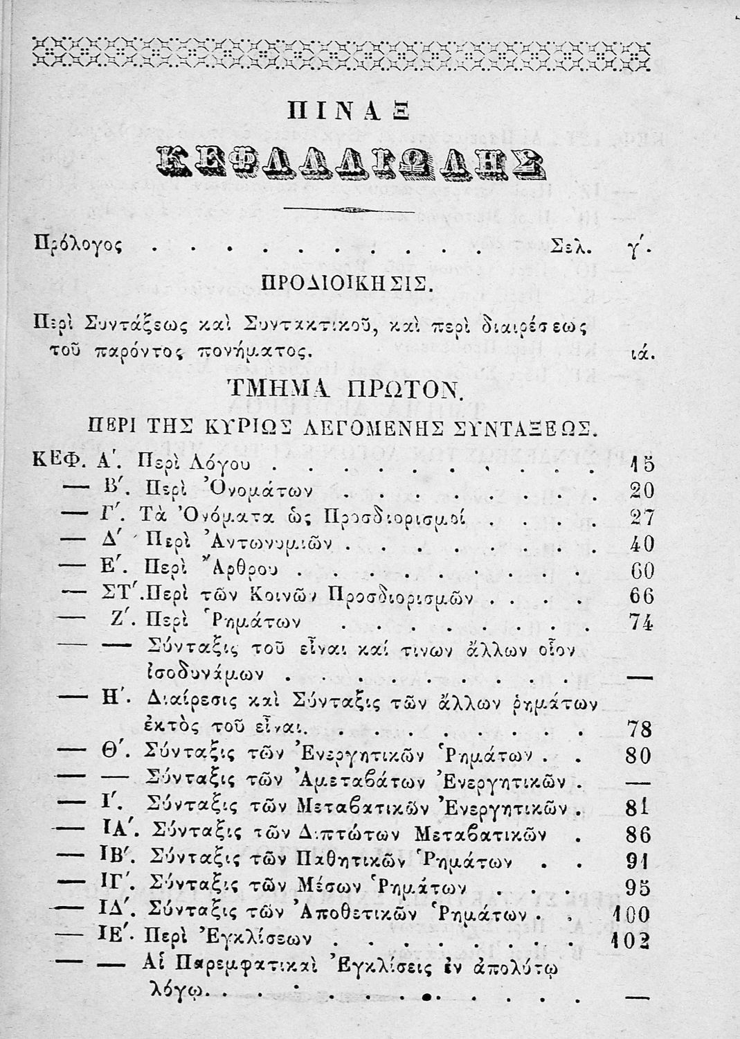 Τίτλος: Περί ελληνικής συντάξεως προς χρήσιν των Ελληνικών Σχολείων και Γυμνασίων, περίοδος πρώτη
