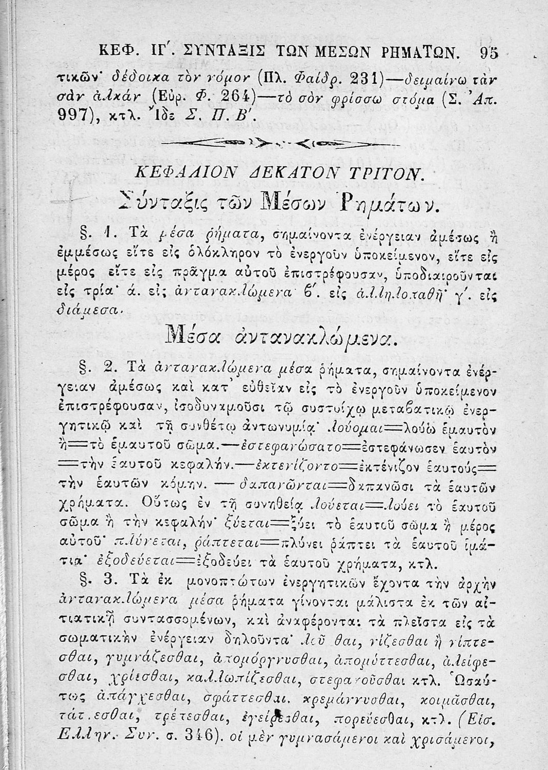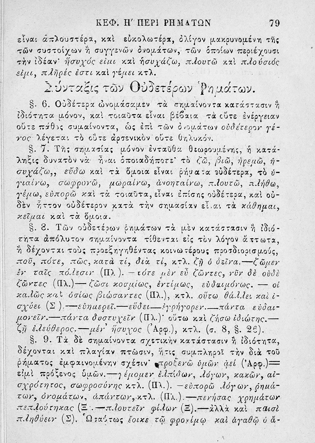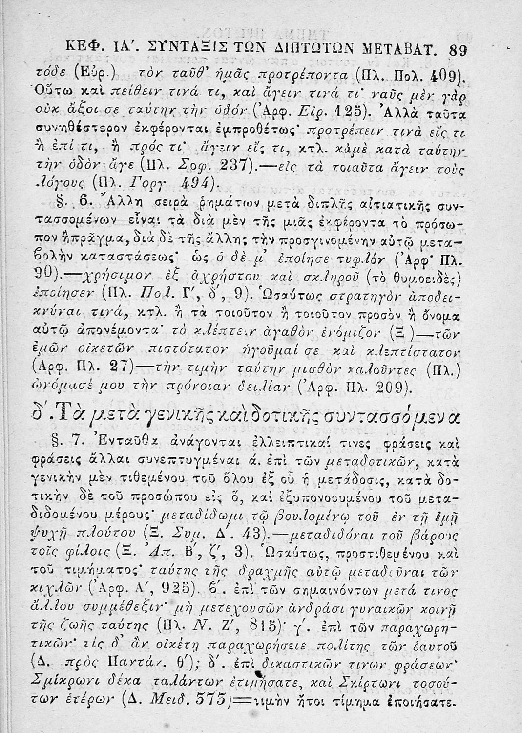 Σχολικό εγχειρίδιο για τις τάξεις του Ελληνικού και του Γυμνασίου για το μάθημα των Αρχαίων Ελληνικών και συγκεκριμένα του συντακτικού της ελληνικής γλώσσας. Το εγχειρίδιο περιλαμβάνει τους βασικούς κανόνες συντακτικού και διακρίνονται η κύρια και η υποτακτική σύνταξη, τα μέρη του λόγου και οι σύνδεσμοι, τα συντακτικά σχήματα και ιδιώματα.